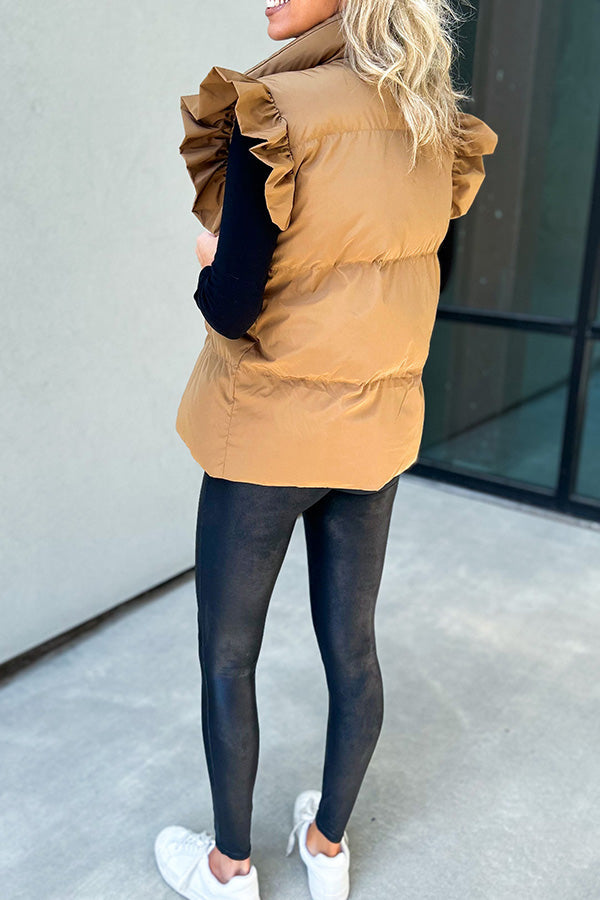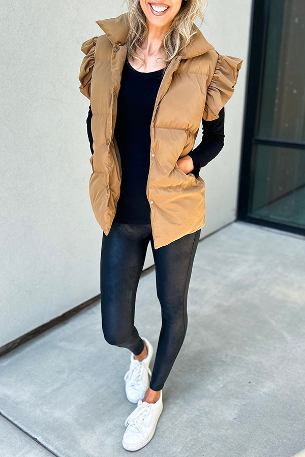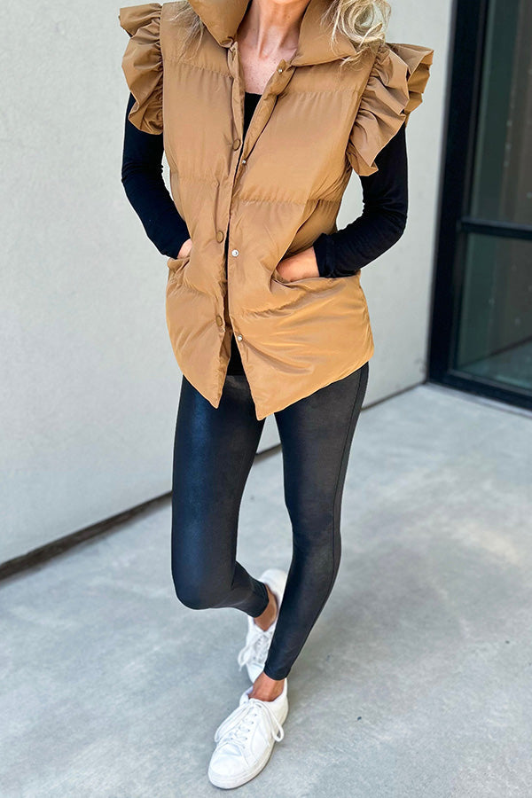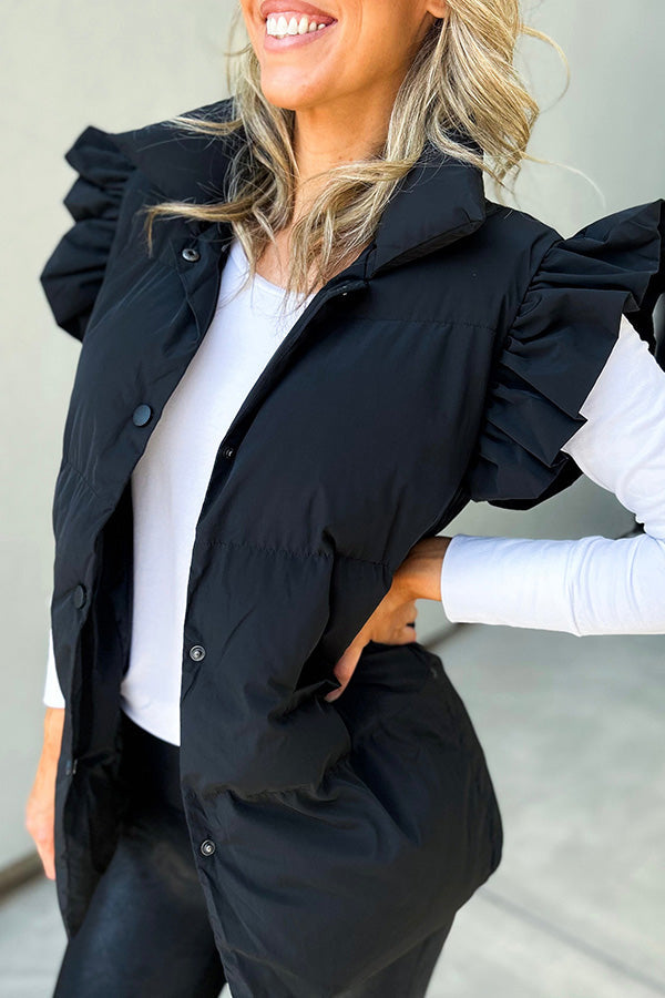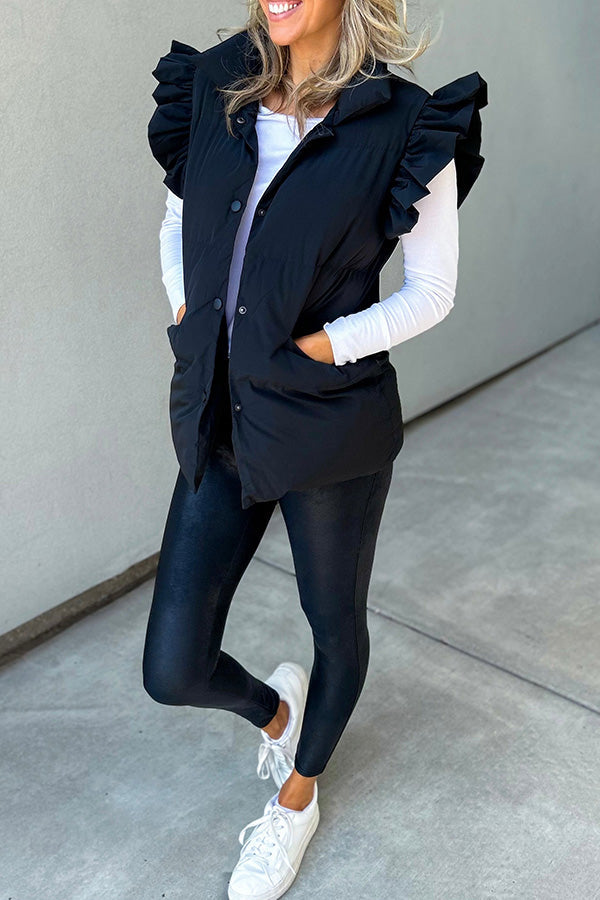Rahat Dik Yaka, Düğmeli Çift Cepli, Uçuşan Fırfırlı Kollu Yelek
