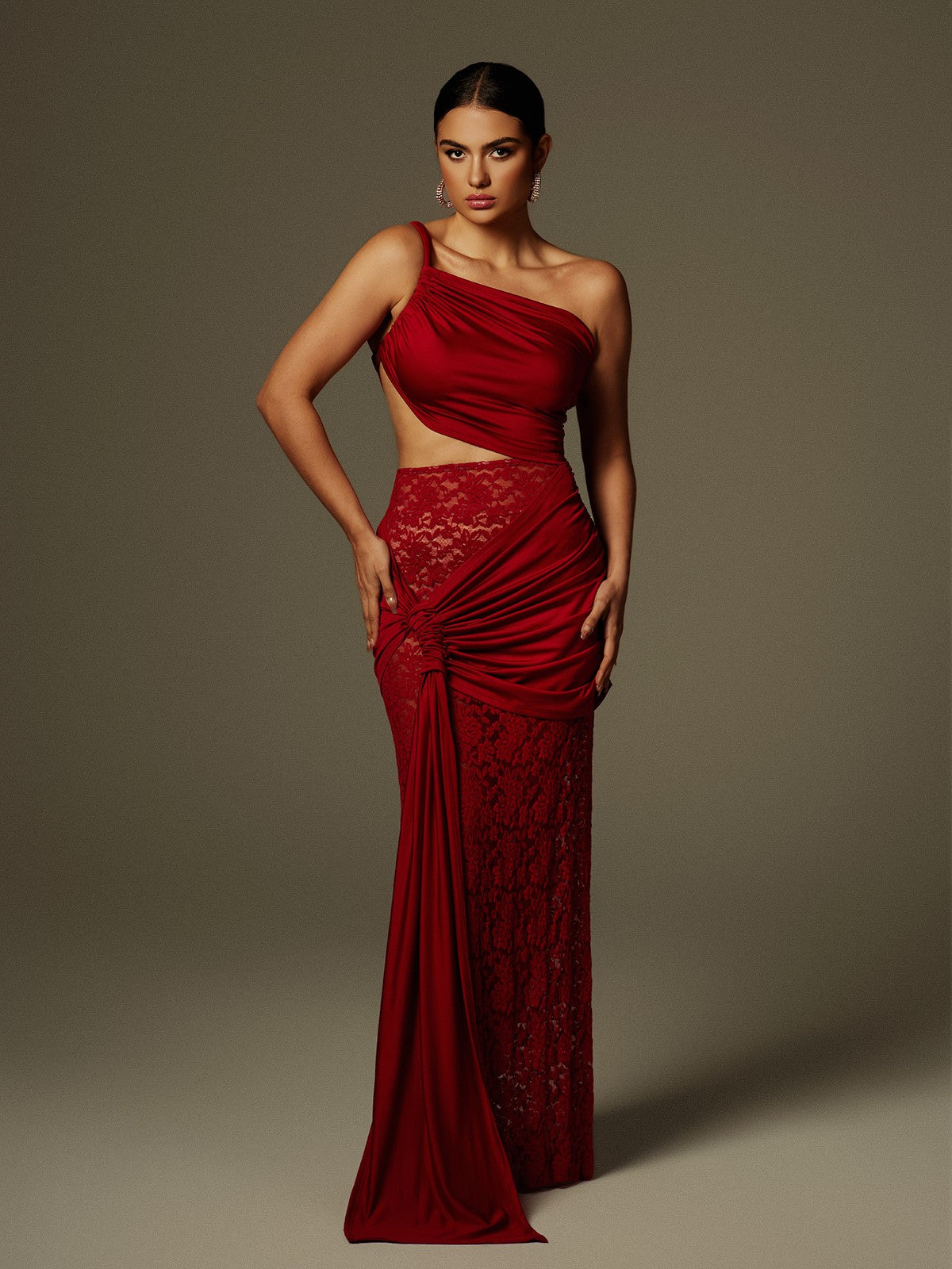 Christopher Tek Omuz Kesimli Dantel Maksi Elbise
