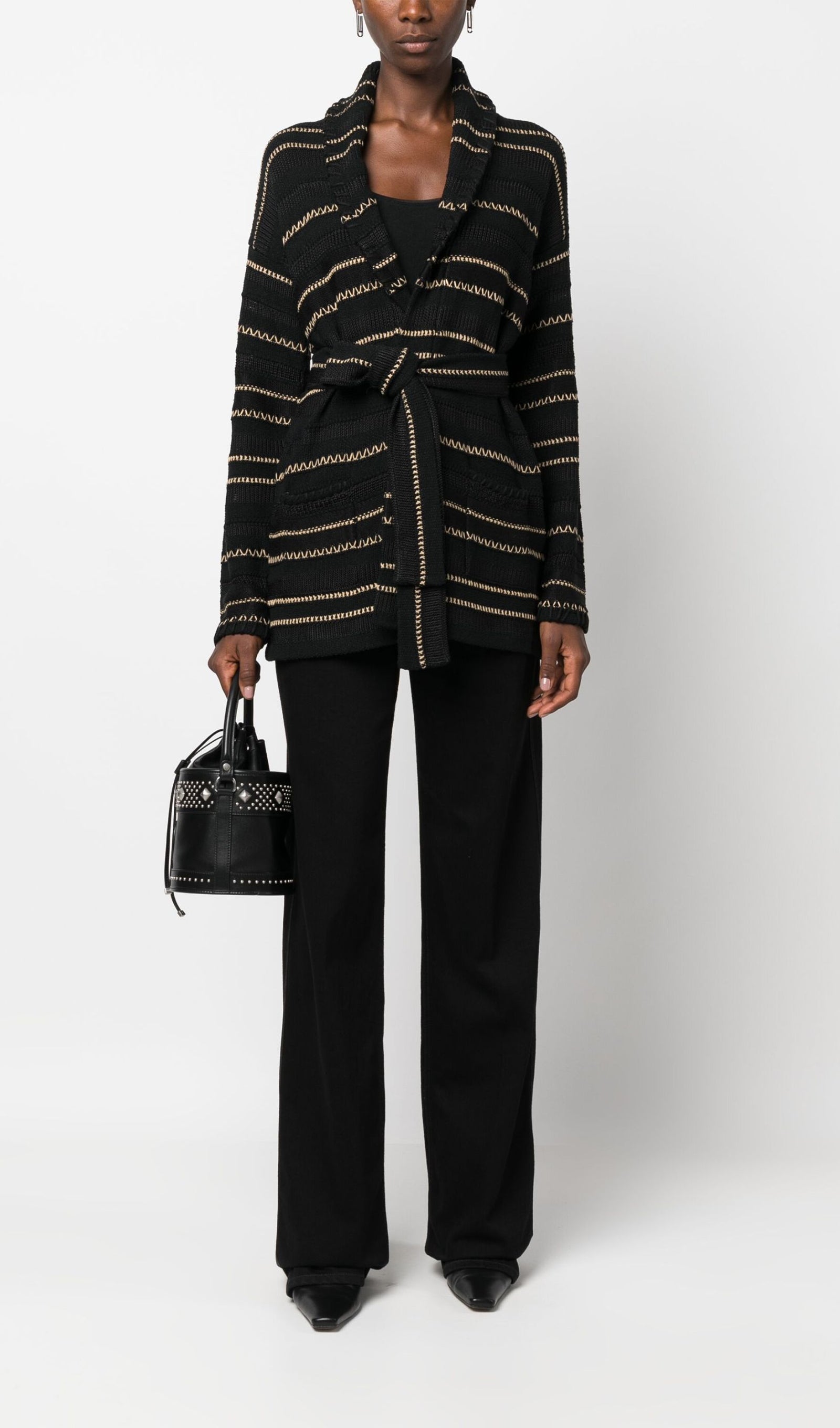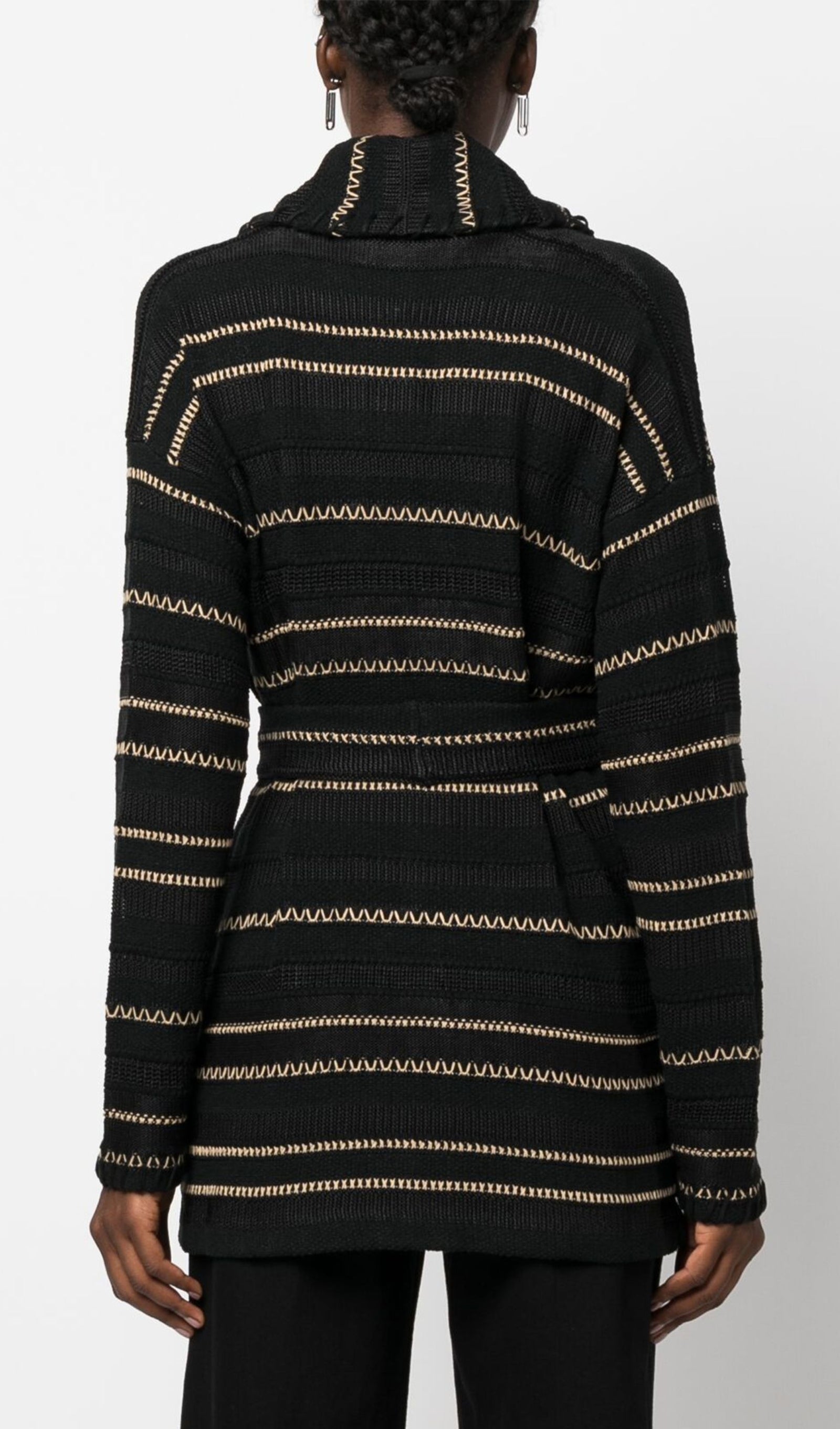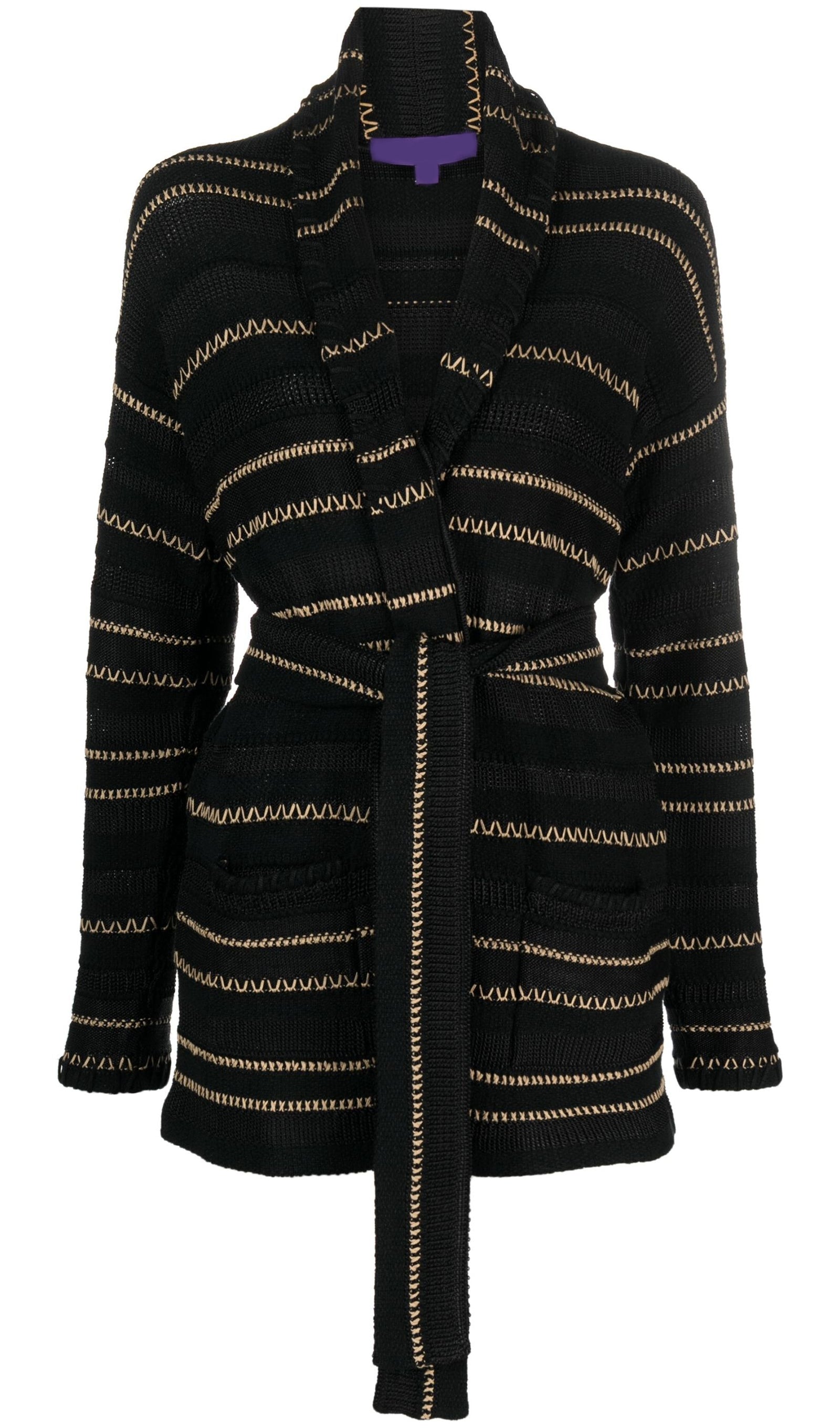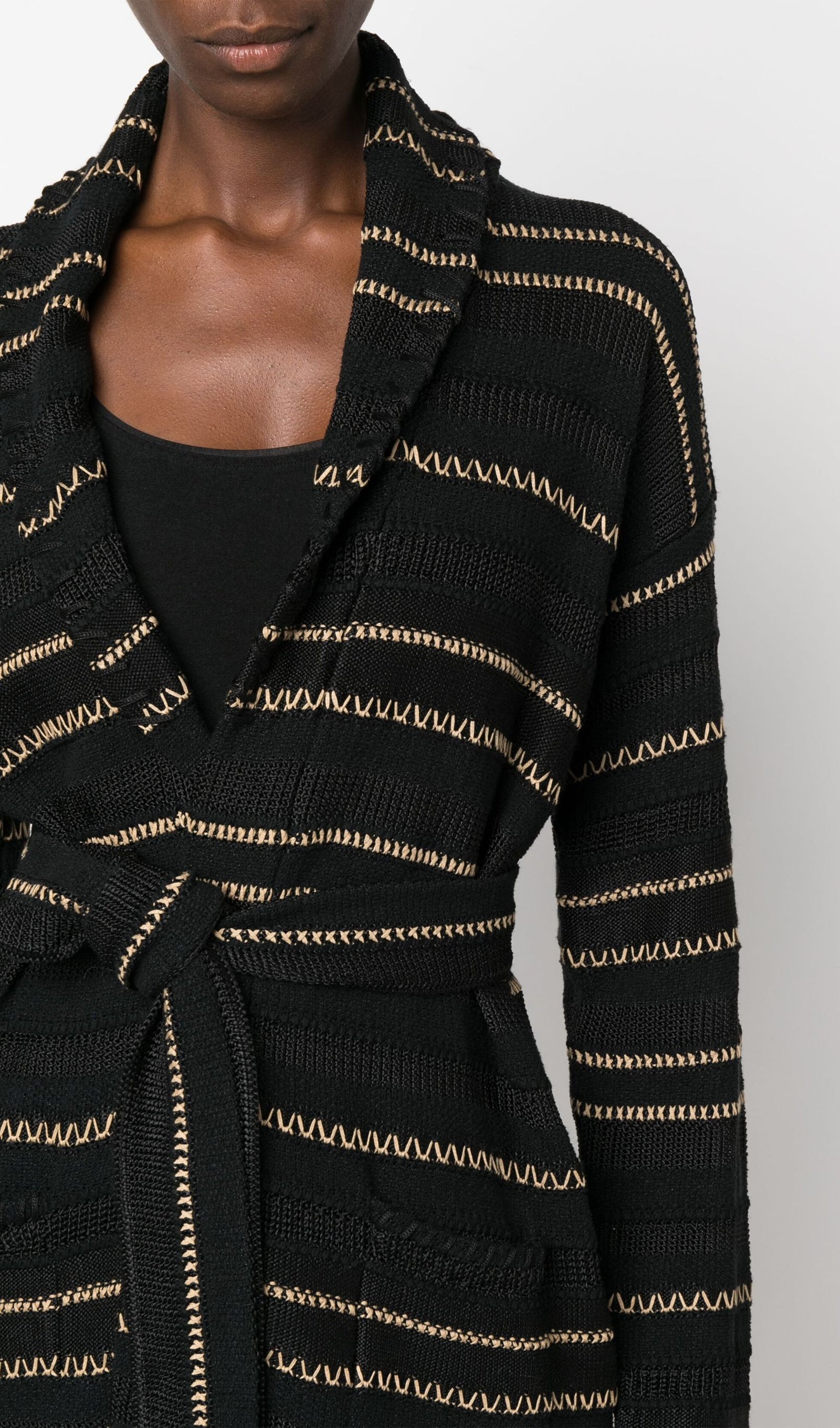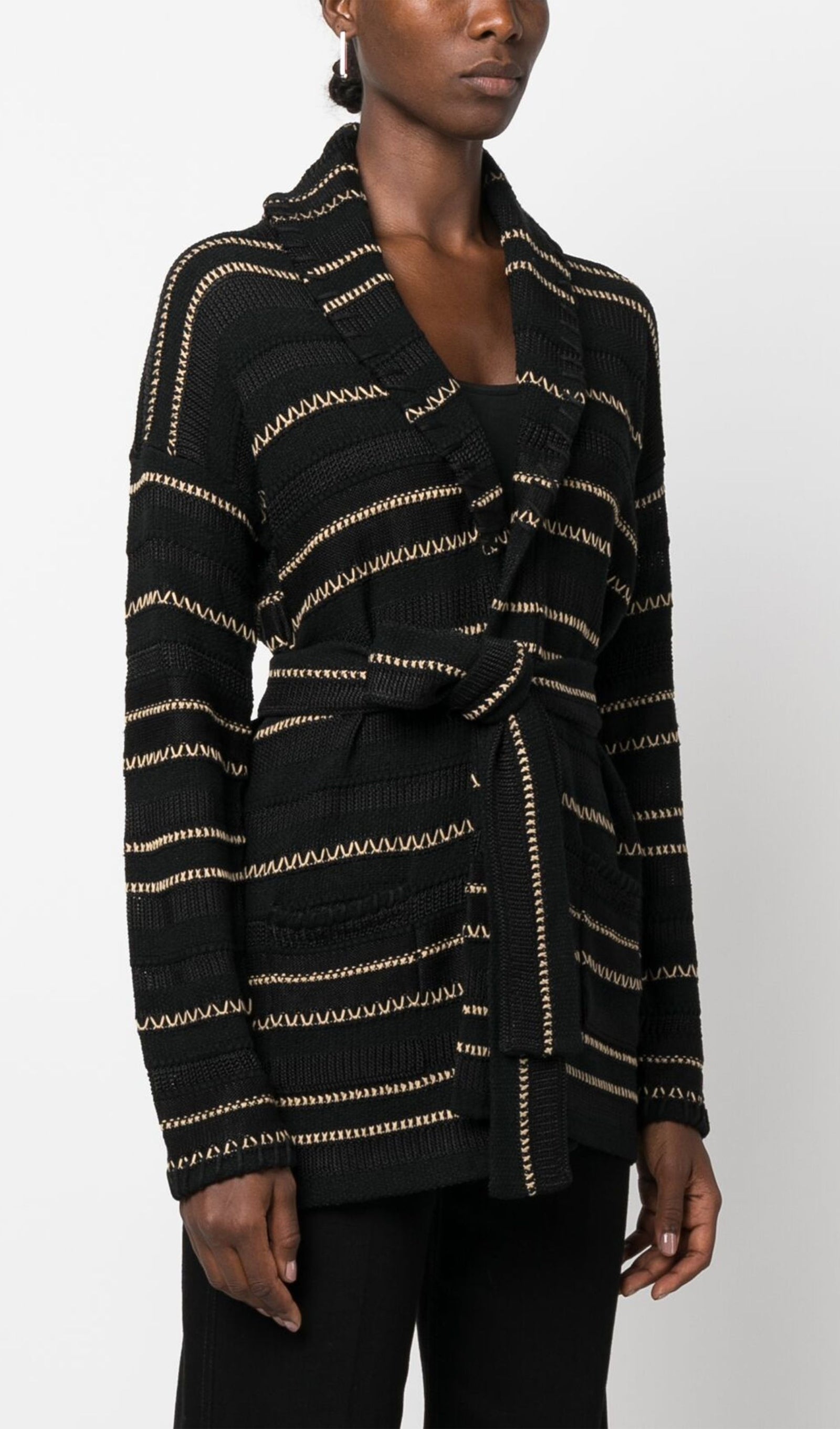 Kontrast Dikişli Kuşaklı Hırka