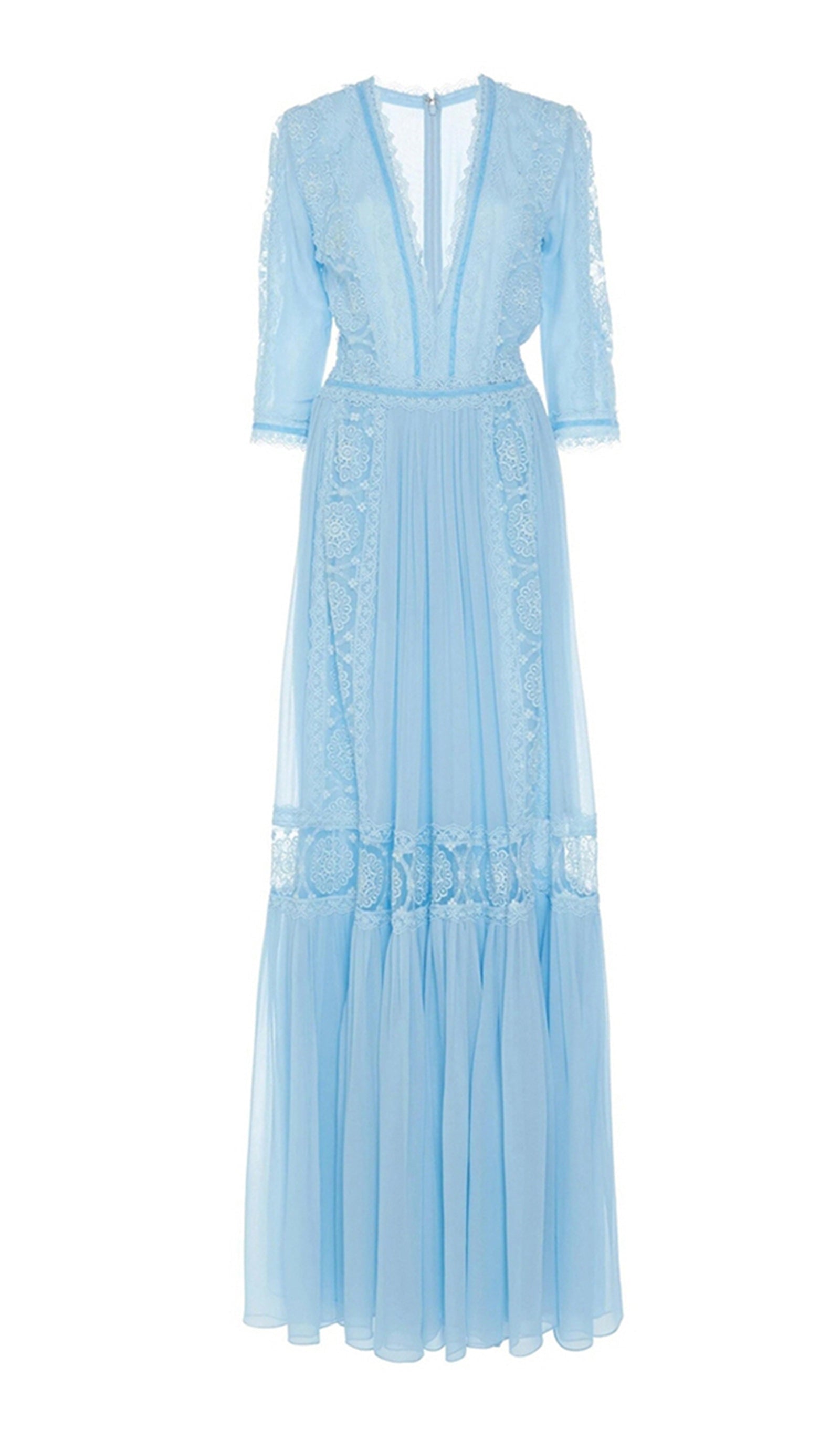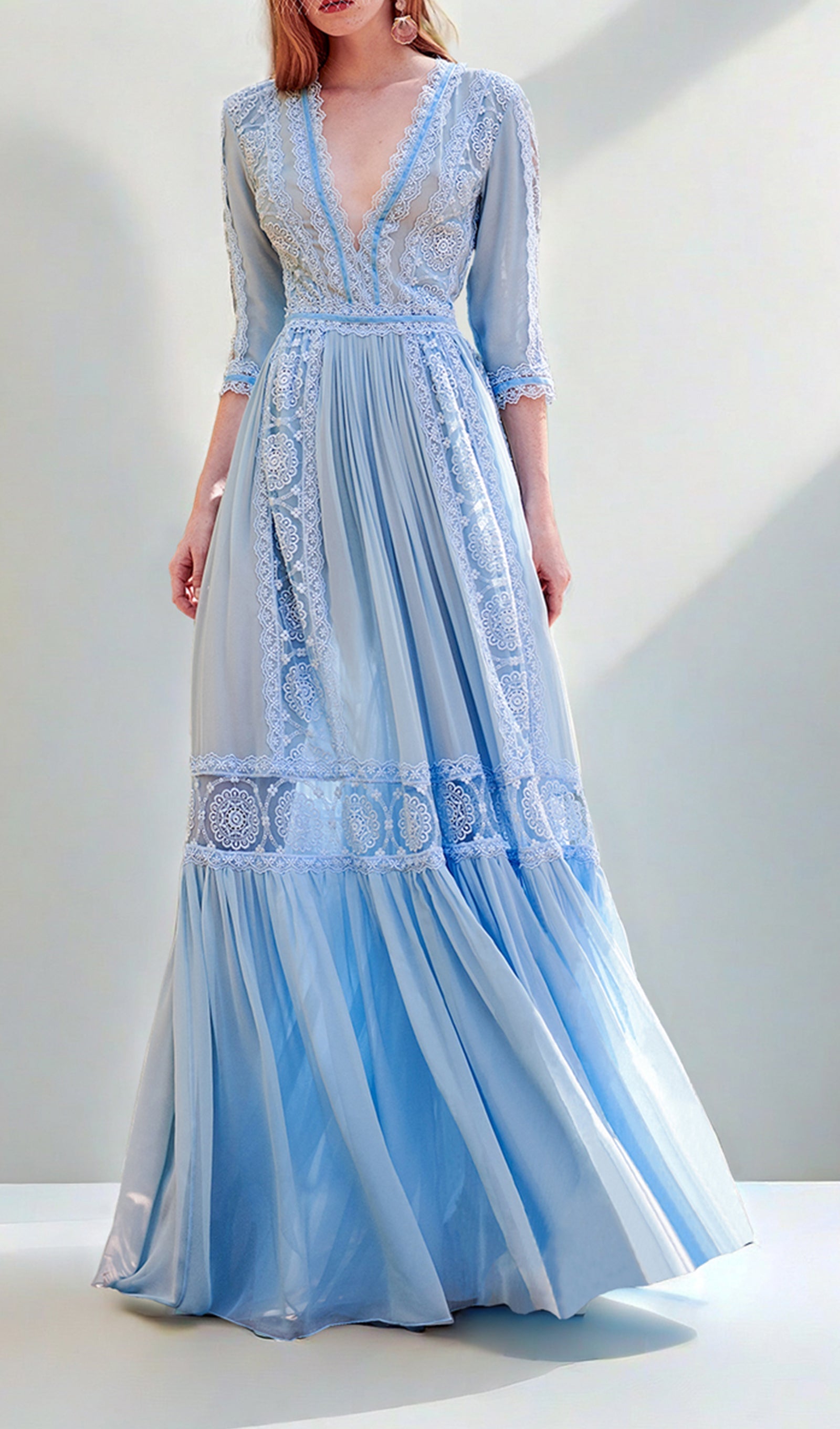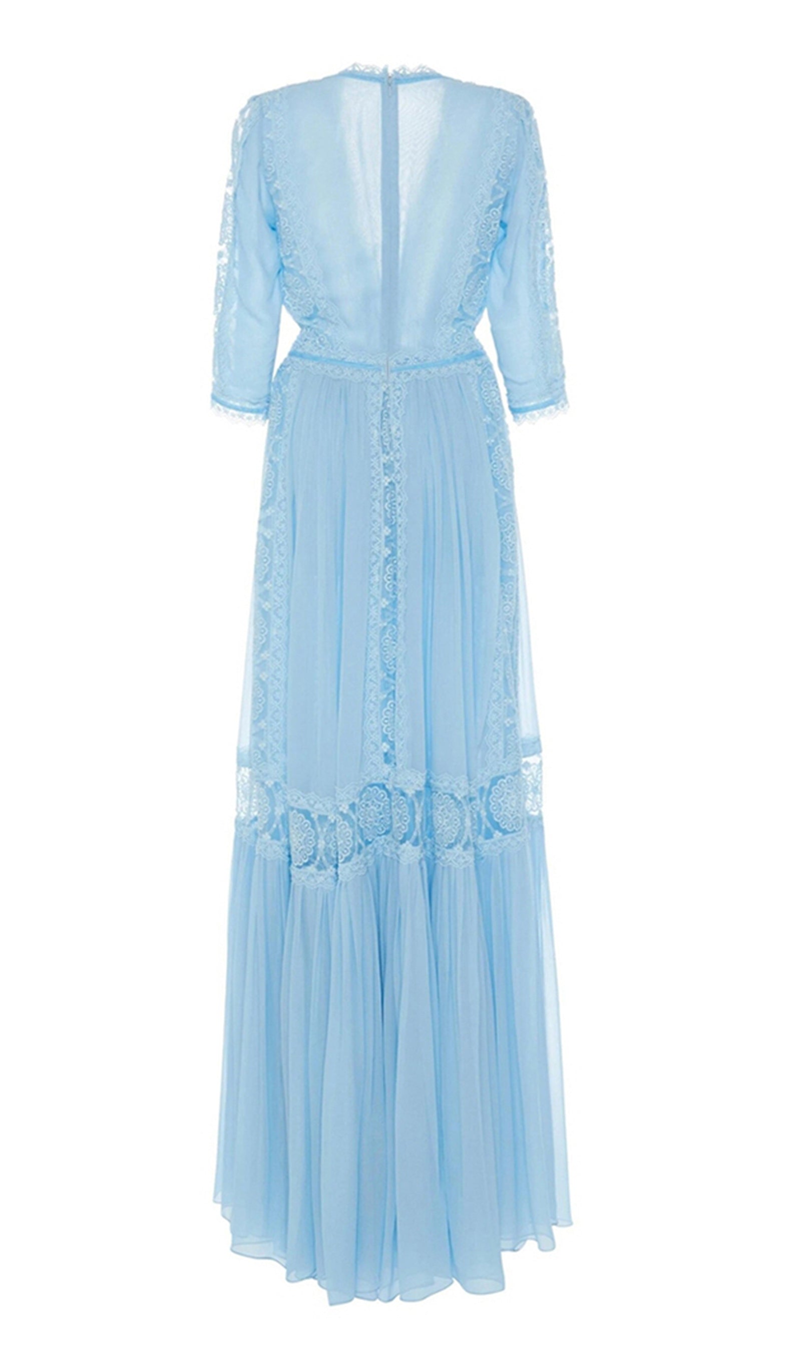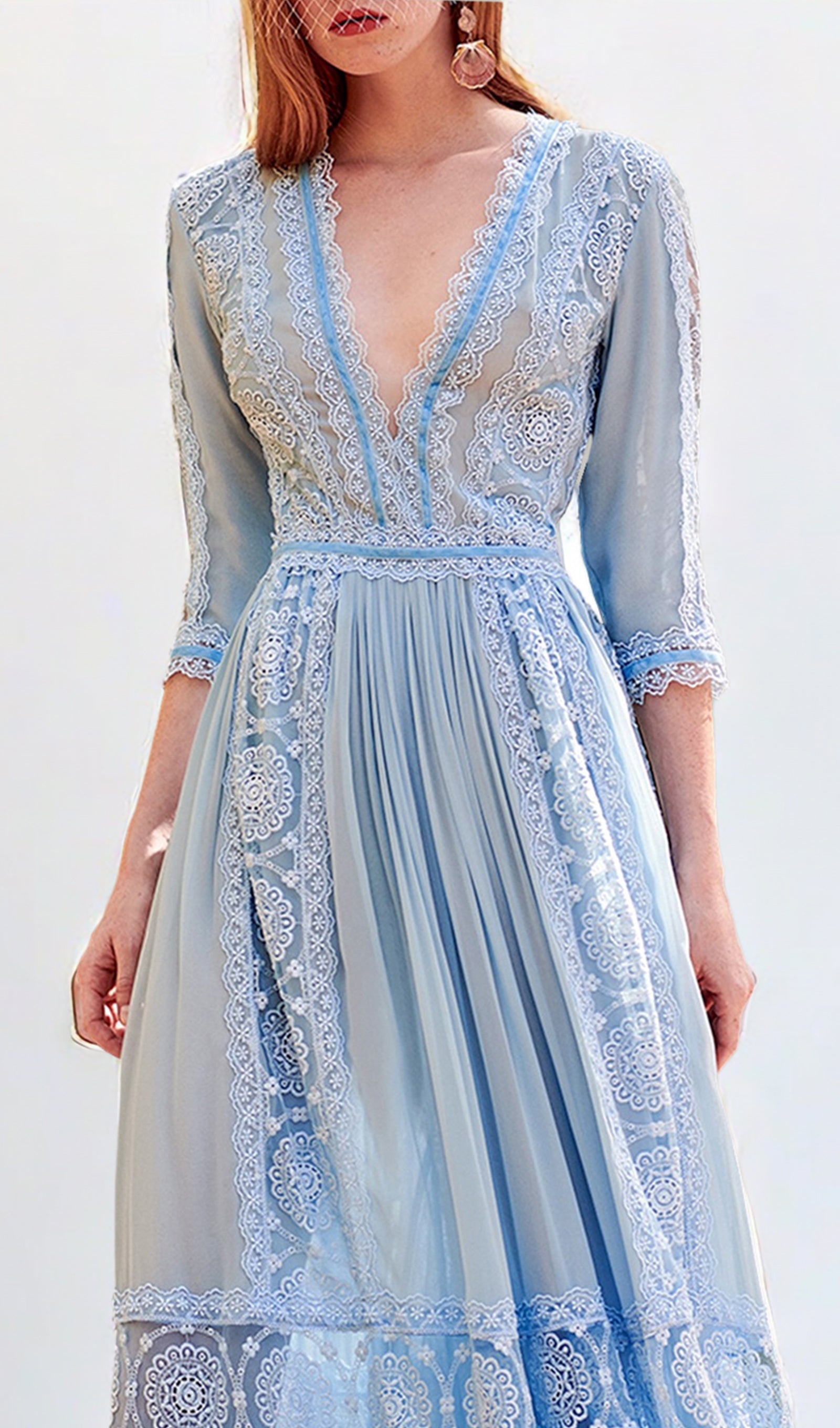 Kroşe Dantel V Yaka Maxi Salıncak Elbise