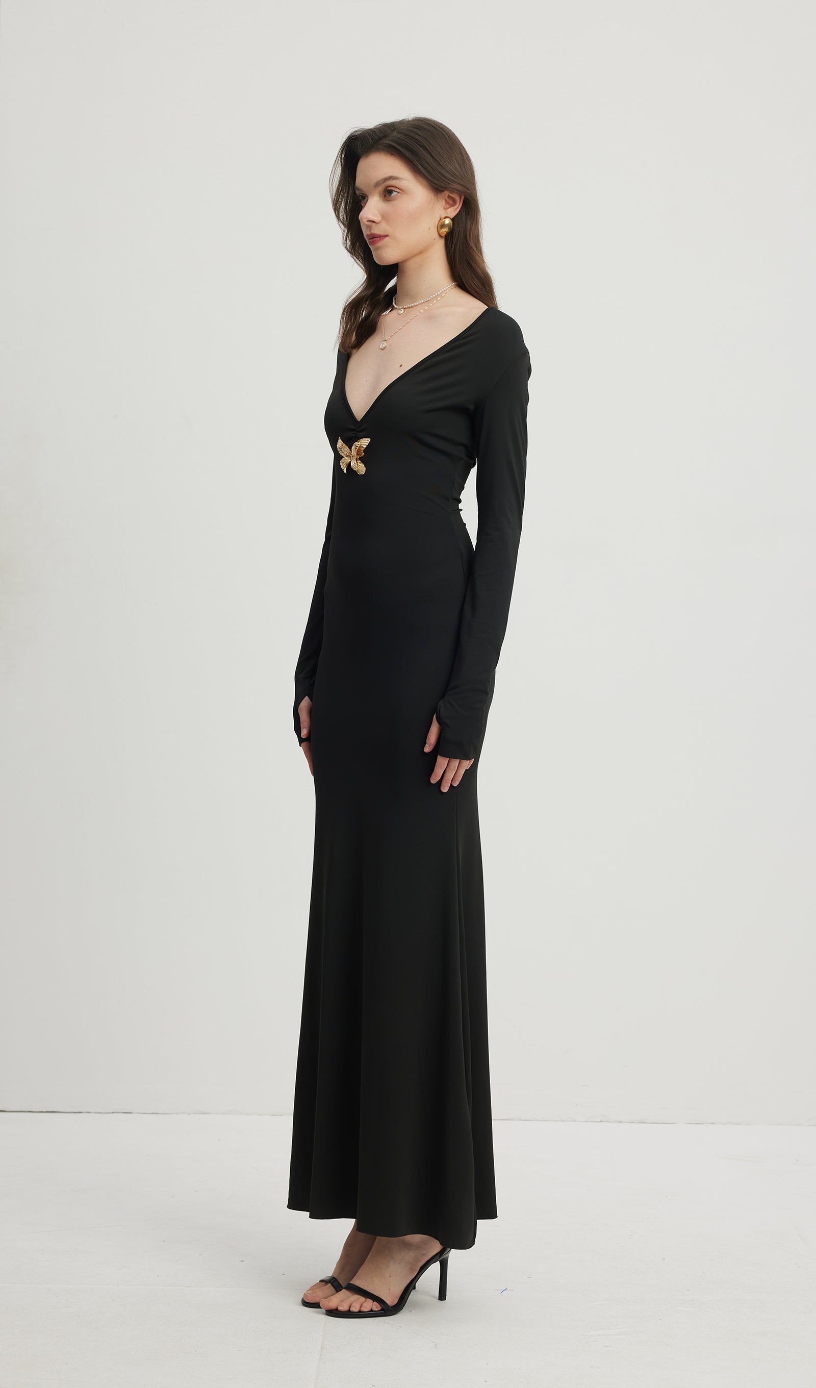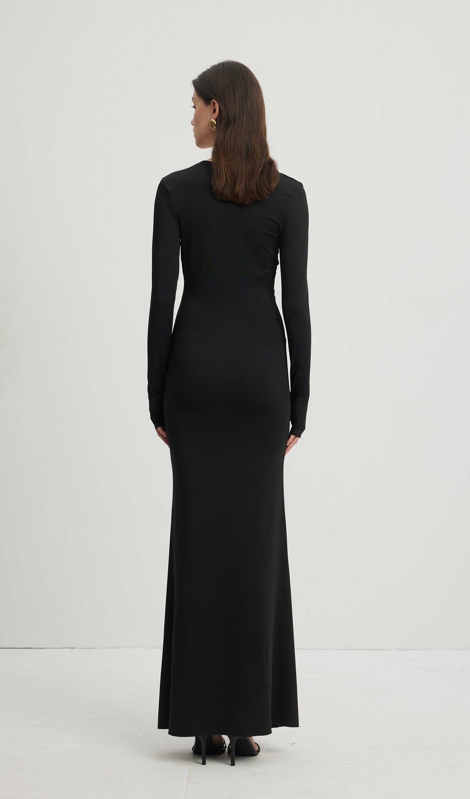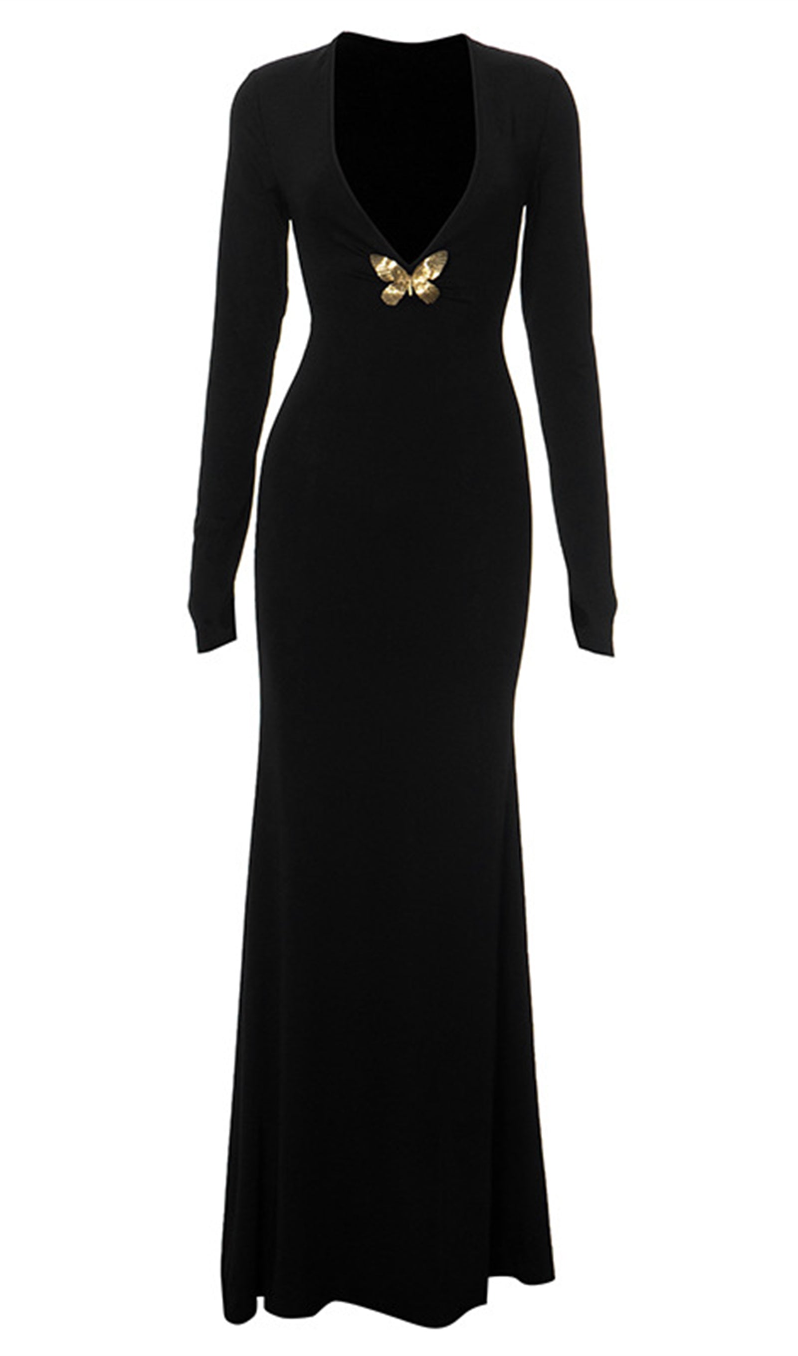 Derin V Yaka Maksi Elbise Siyah