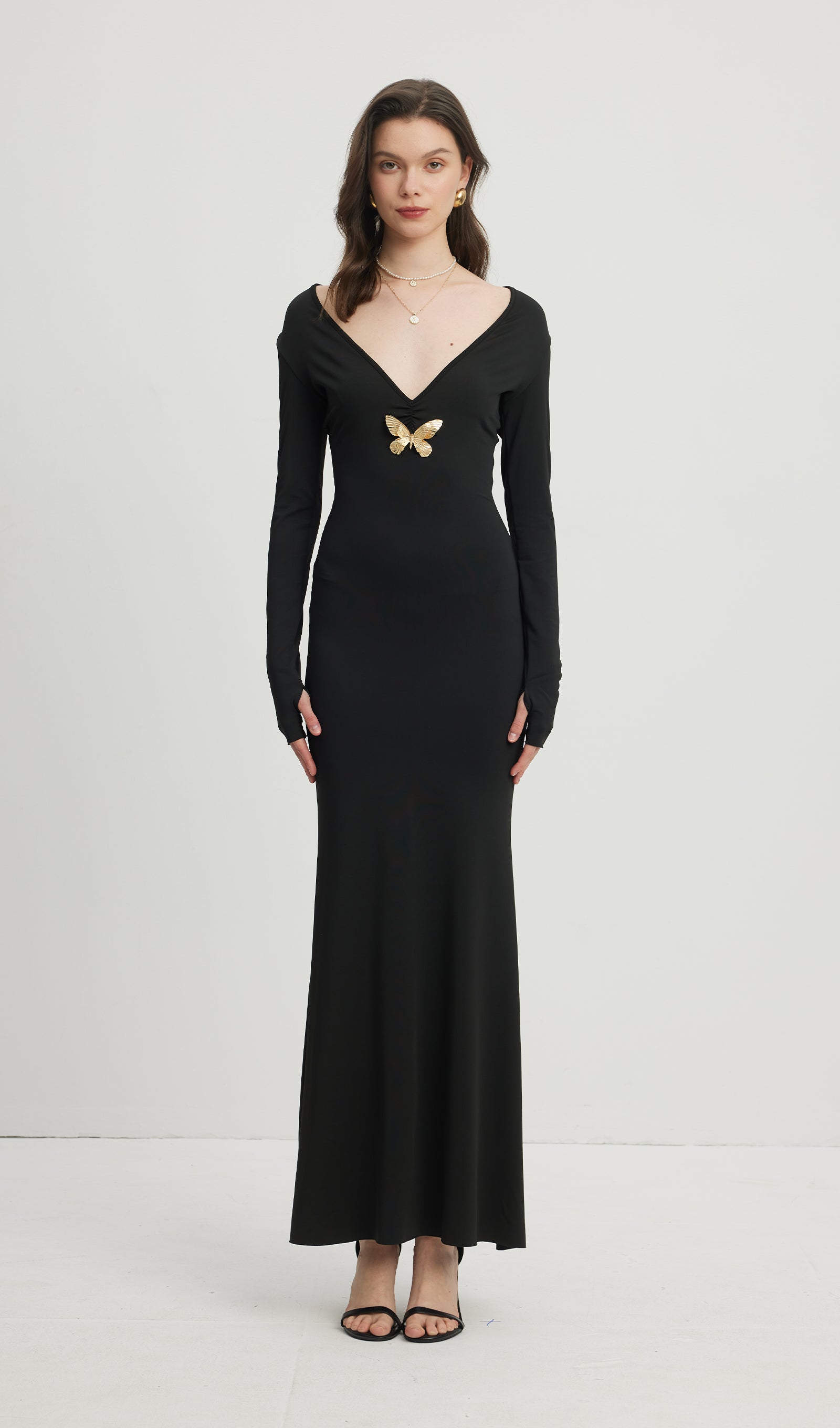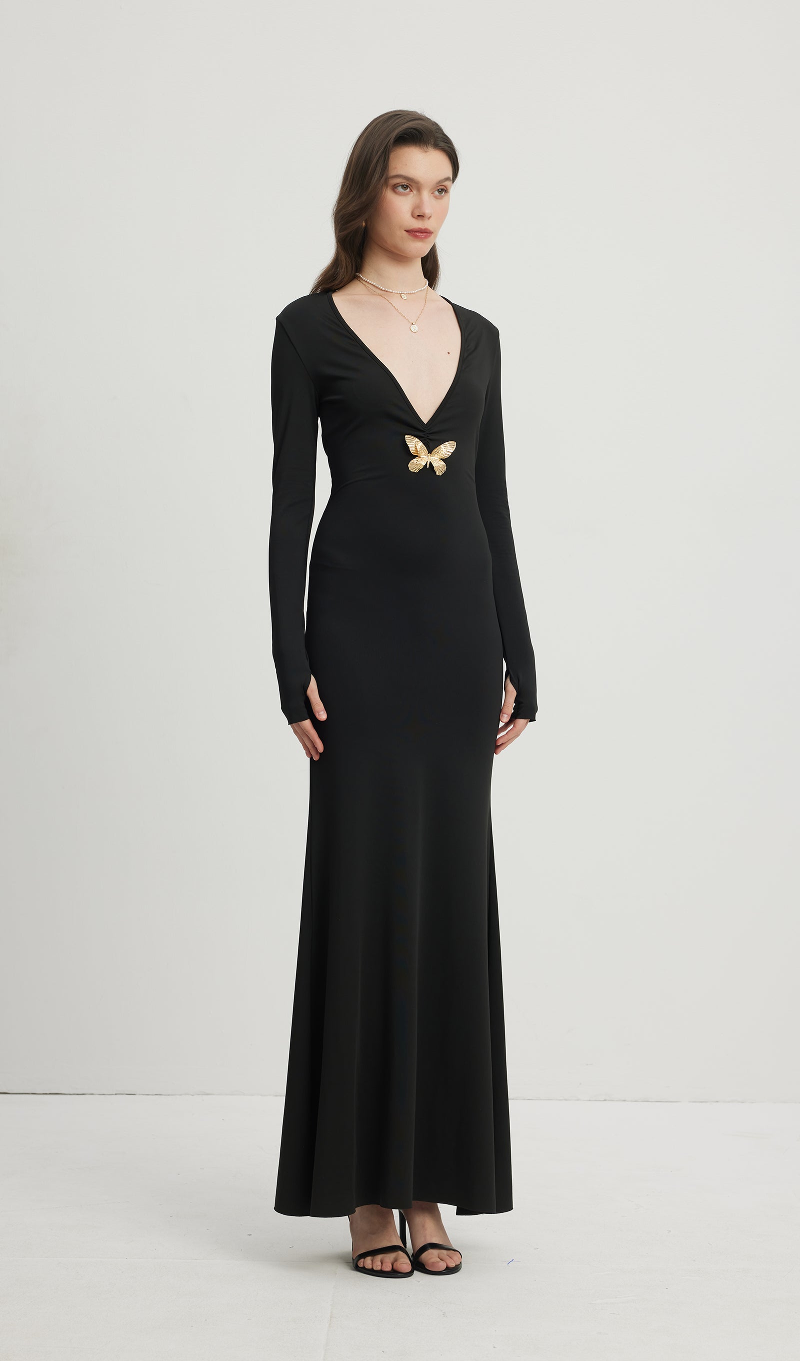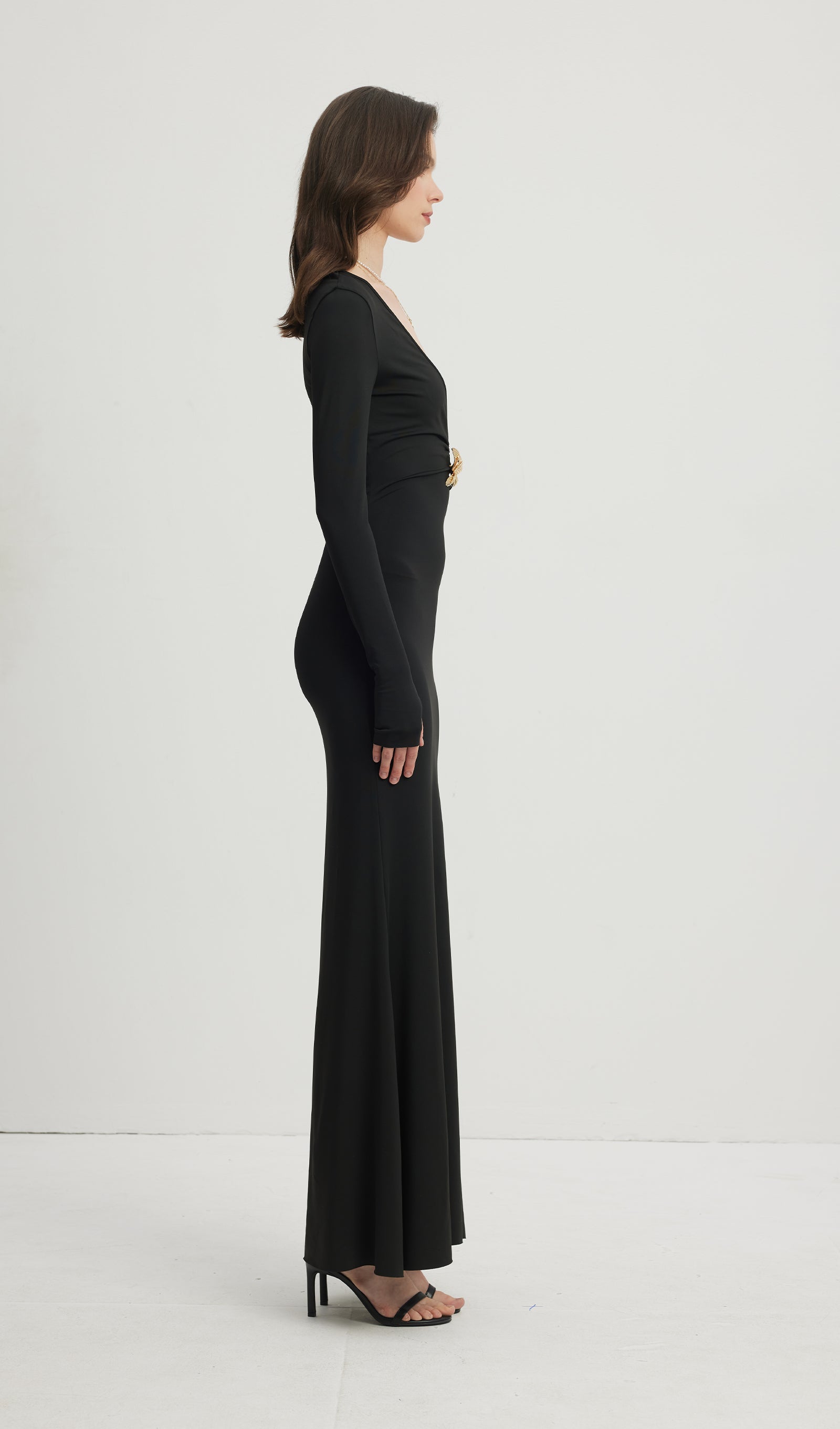 Derin V Yaka Maksi Elbise Siyah