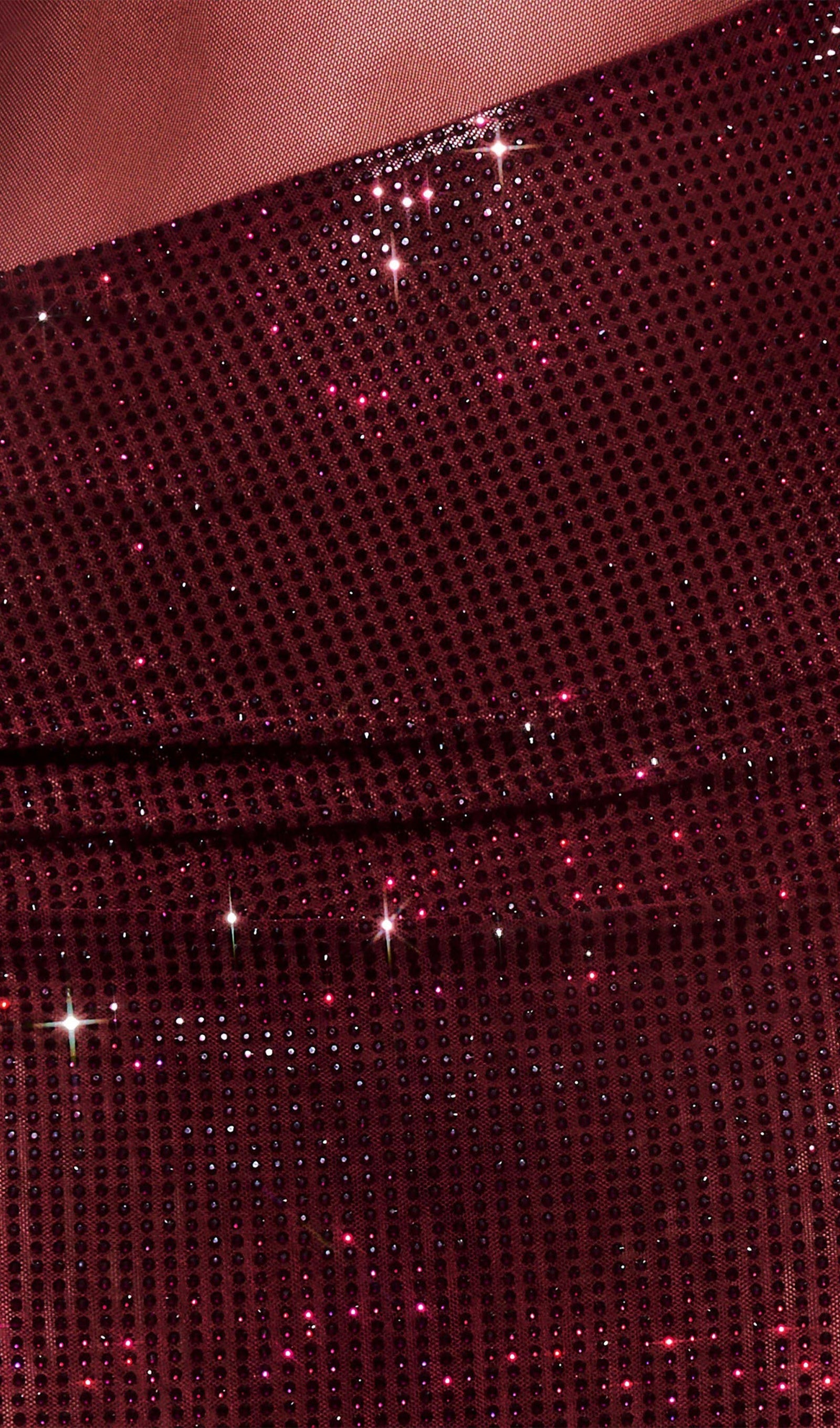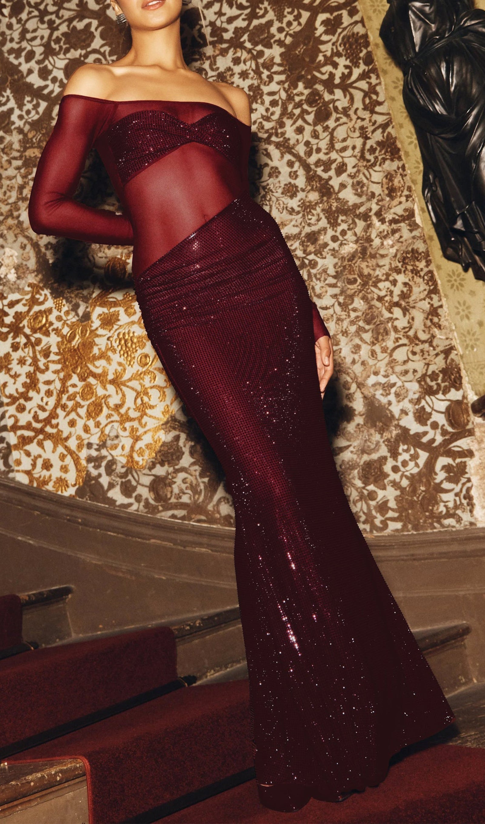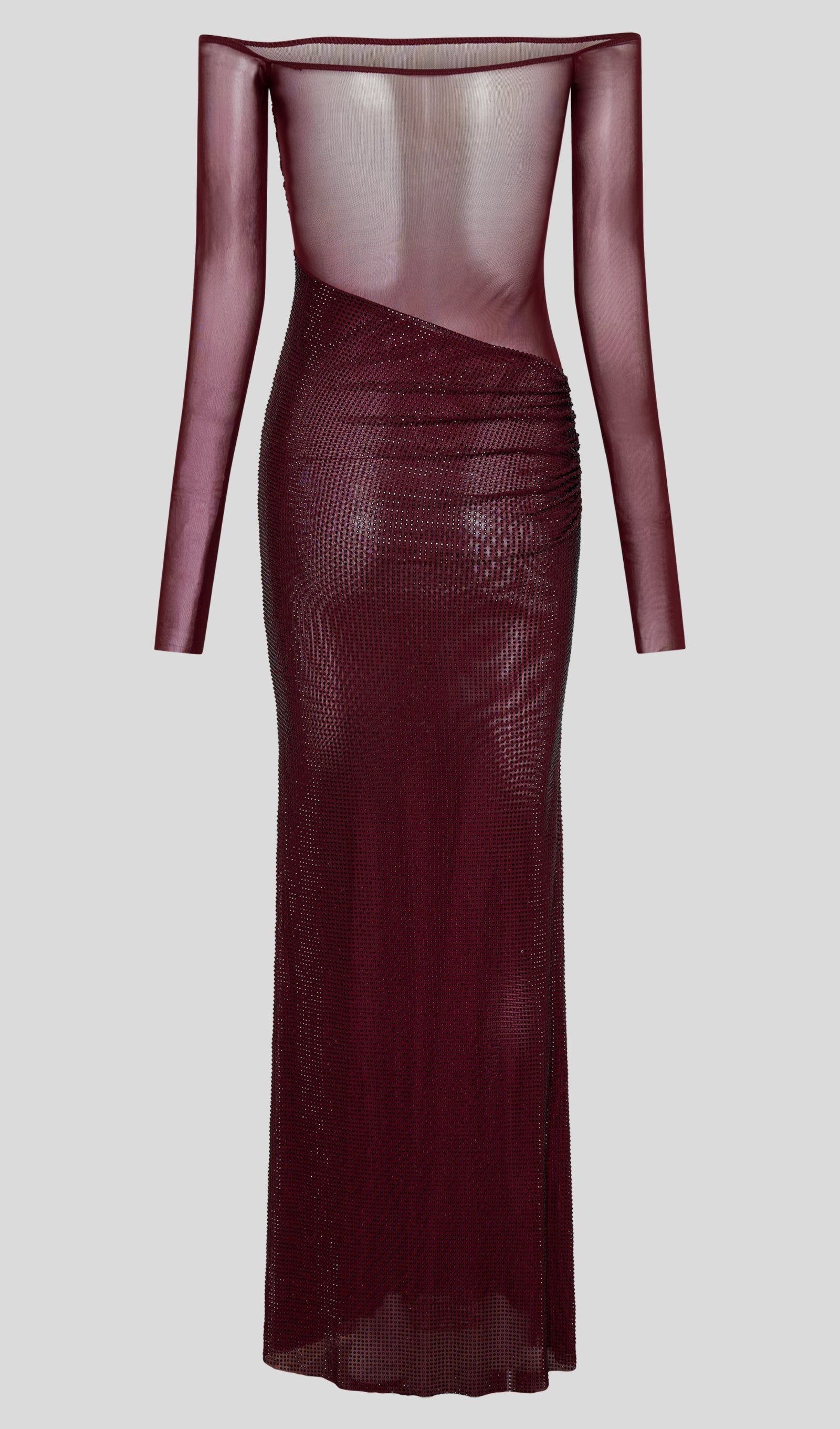 Diamante Kapalı Omuz Maksi Elbise - Kırmızı
