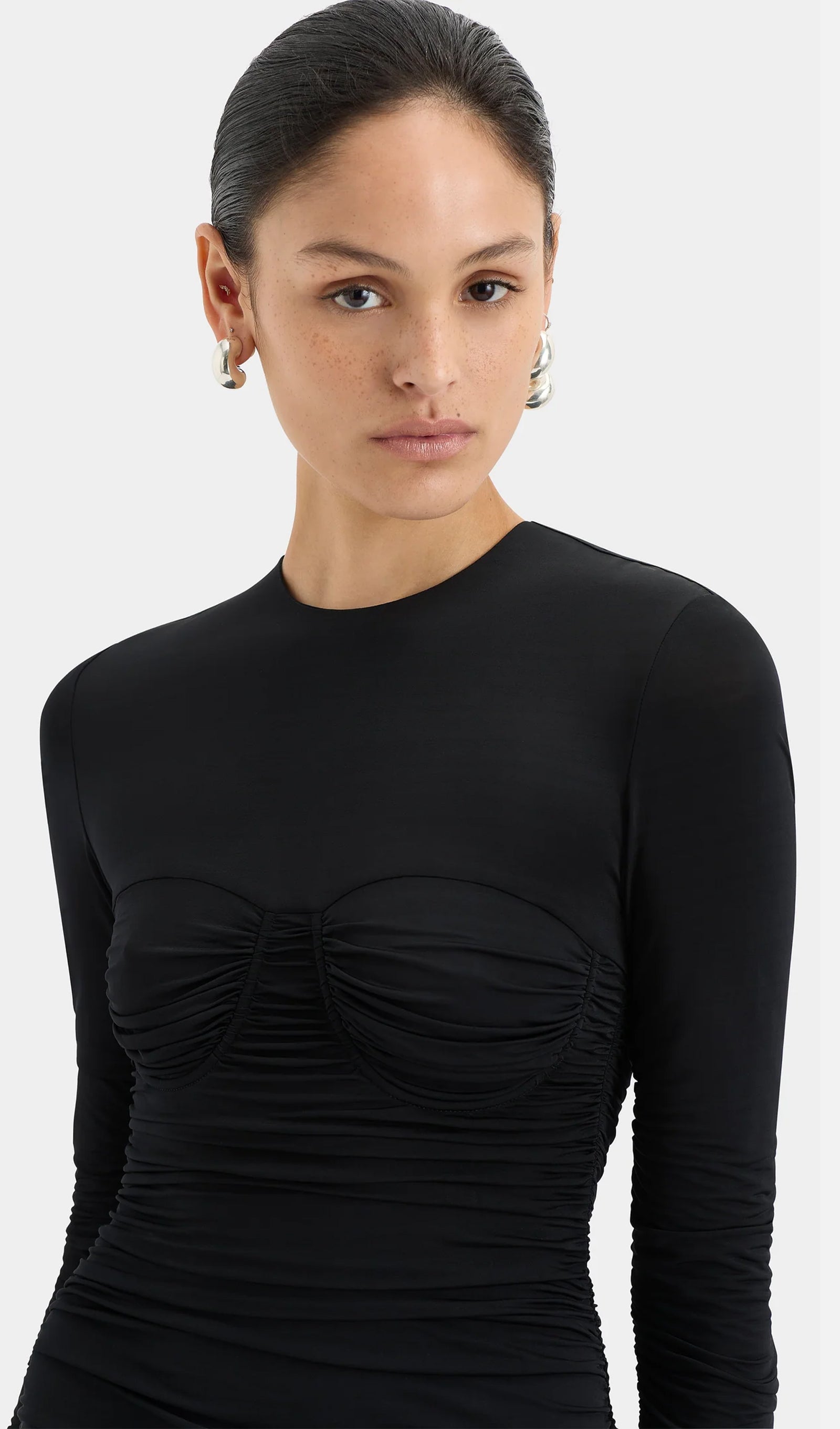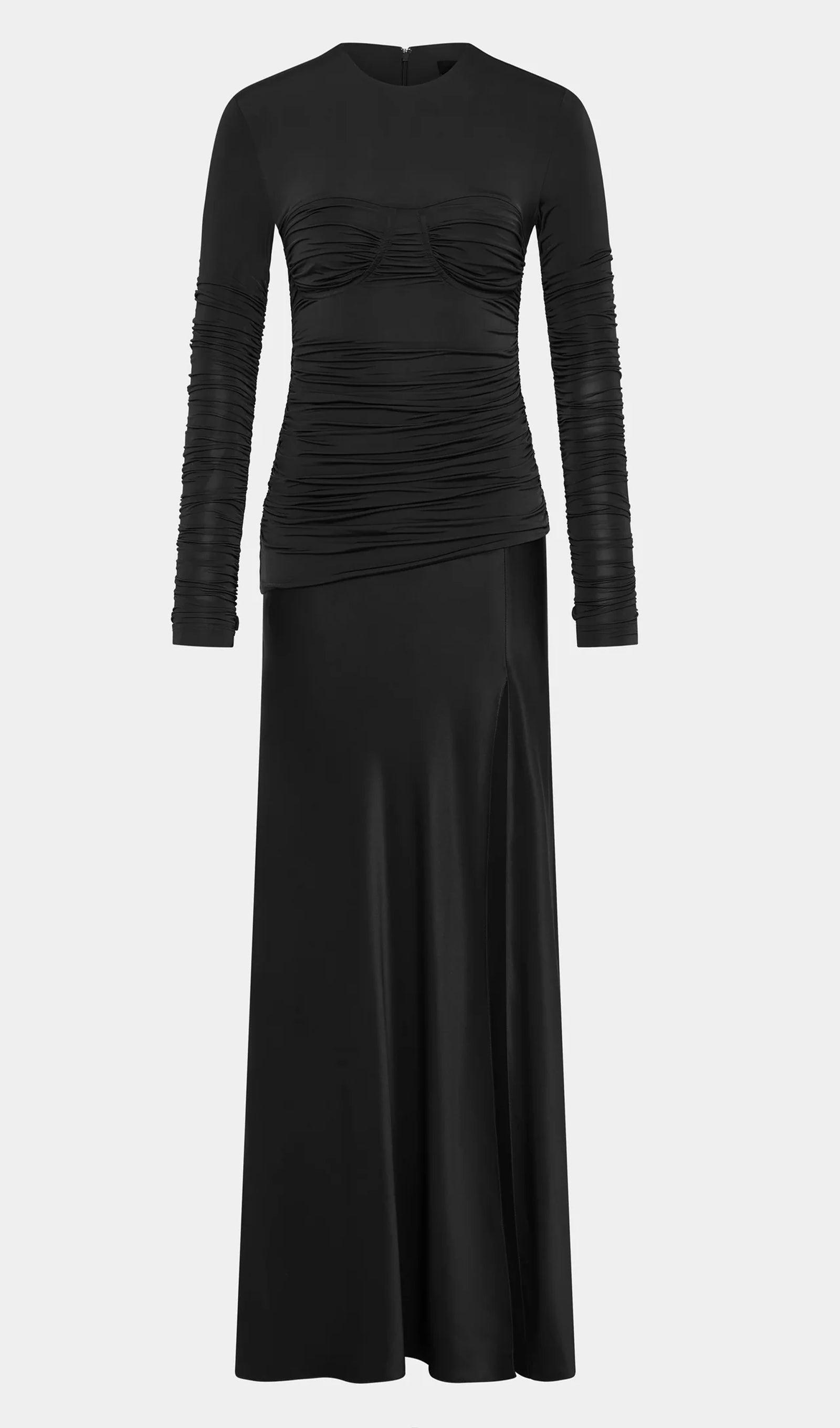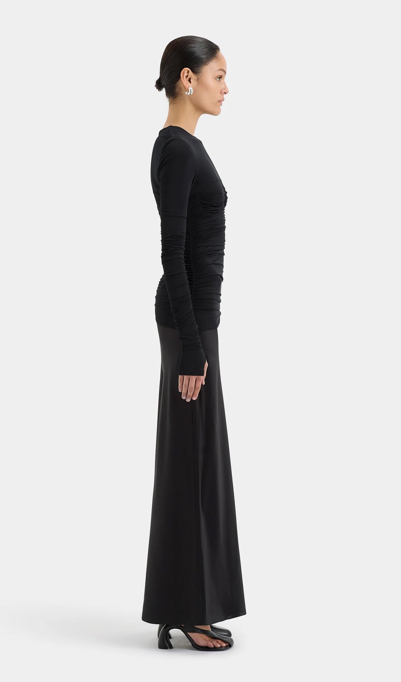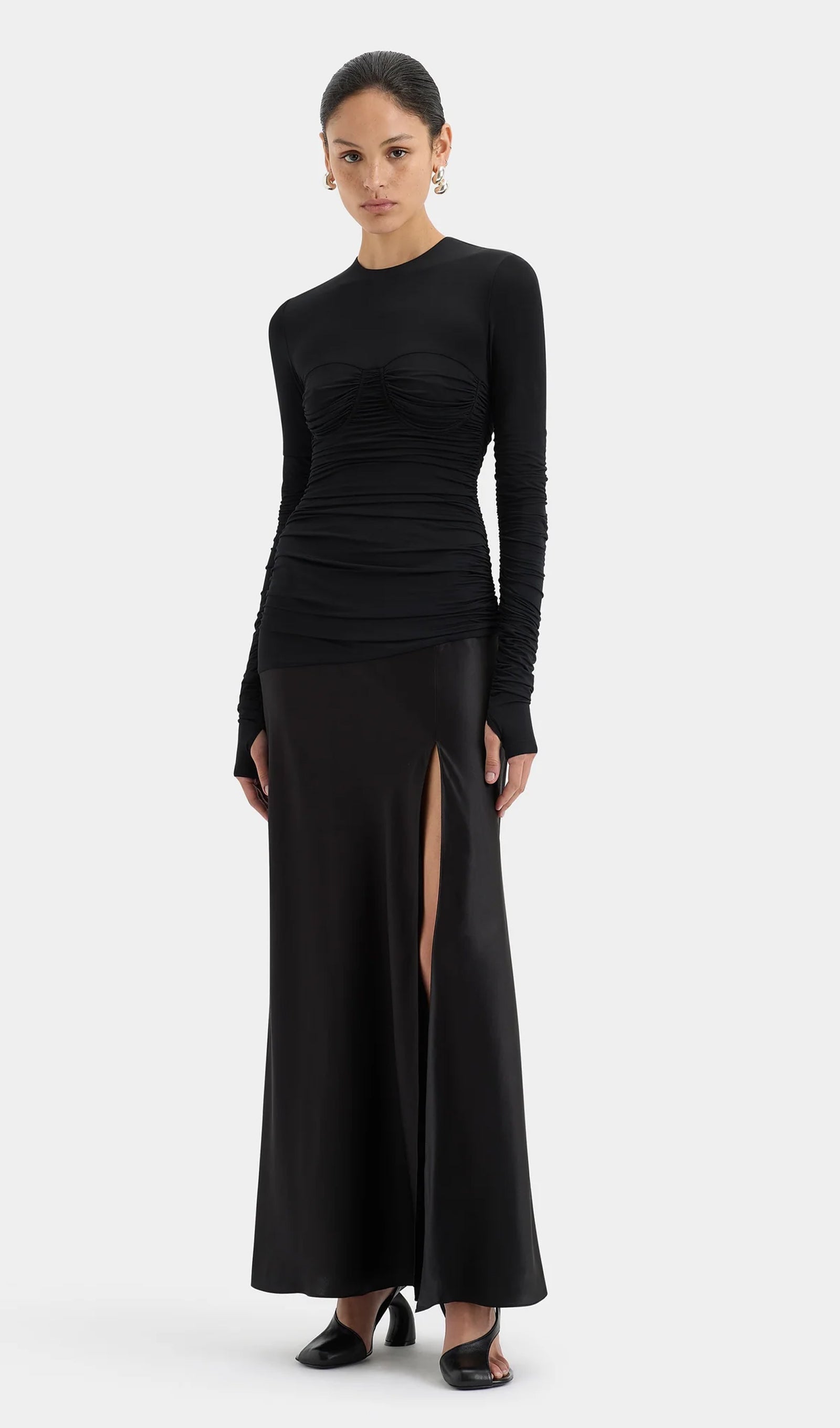 Drapeli Jersey ve Saten Maksi Elbise-Siyah