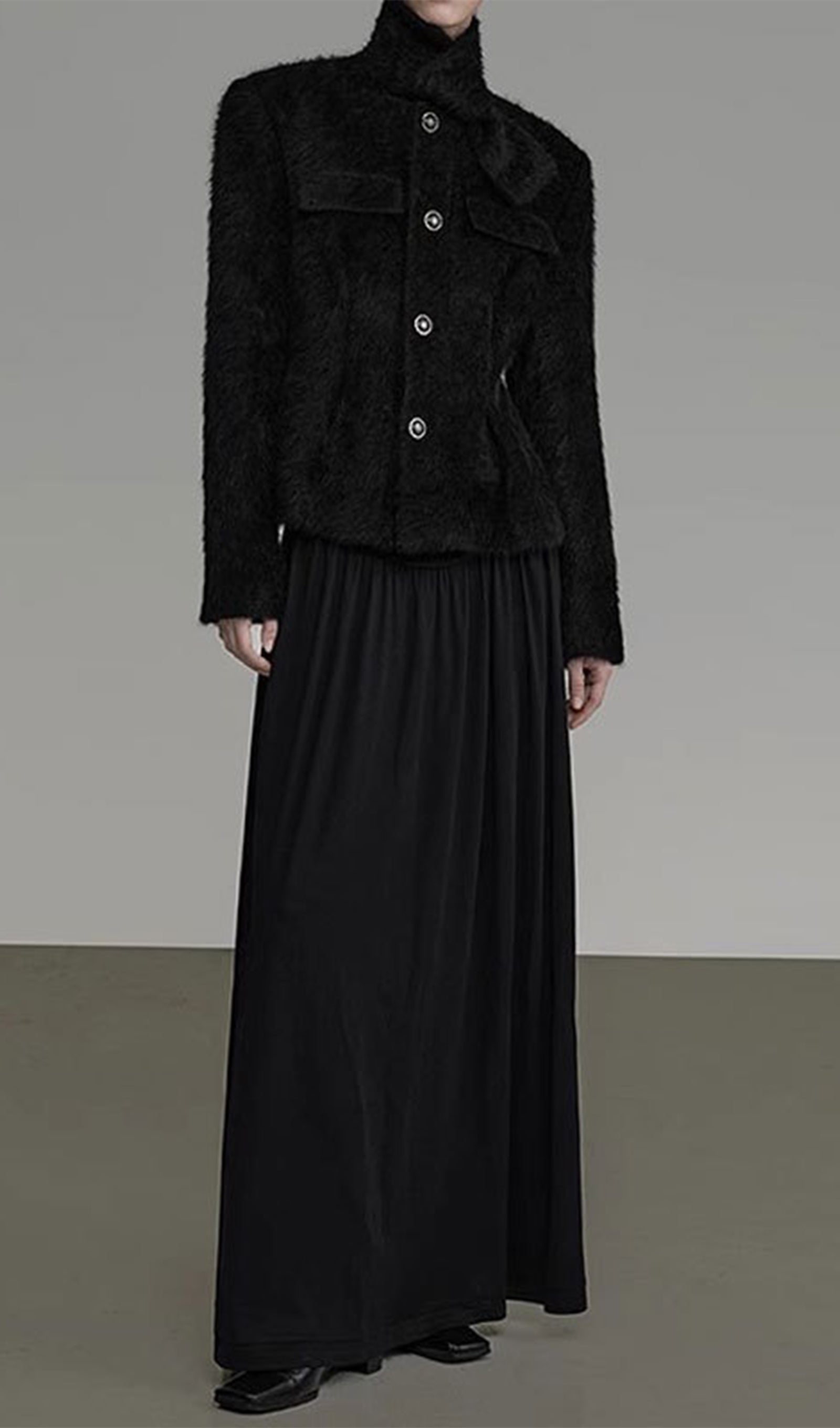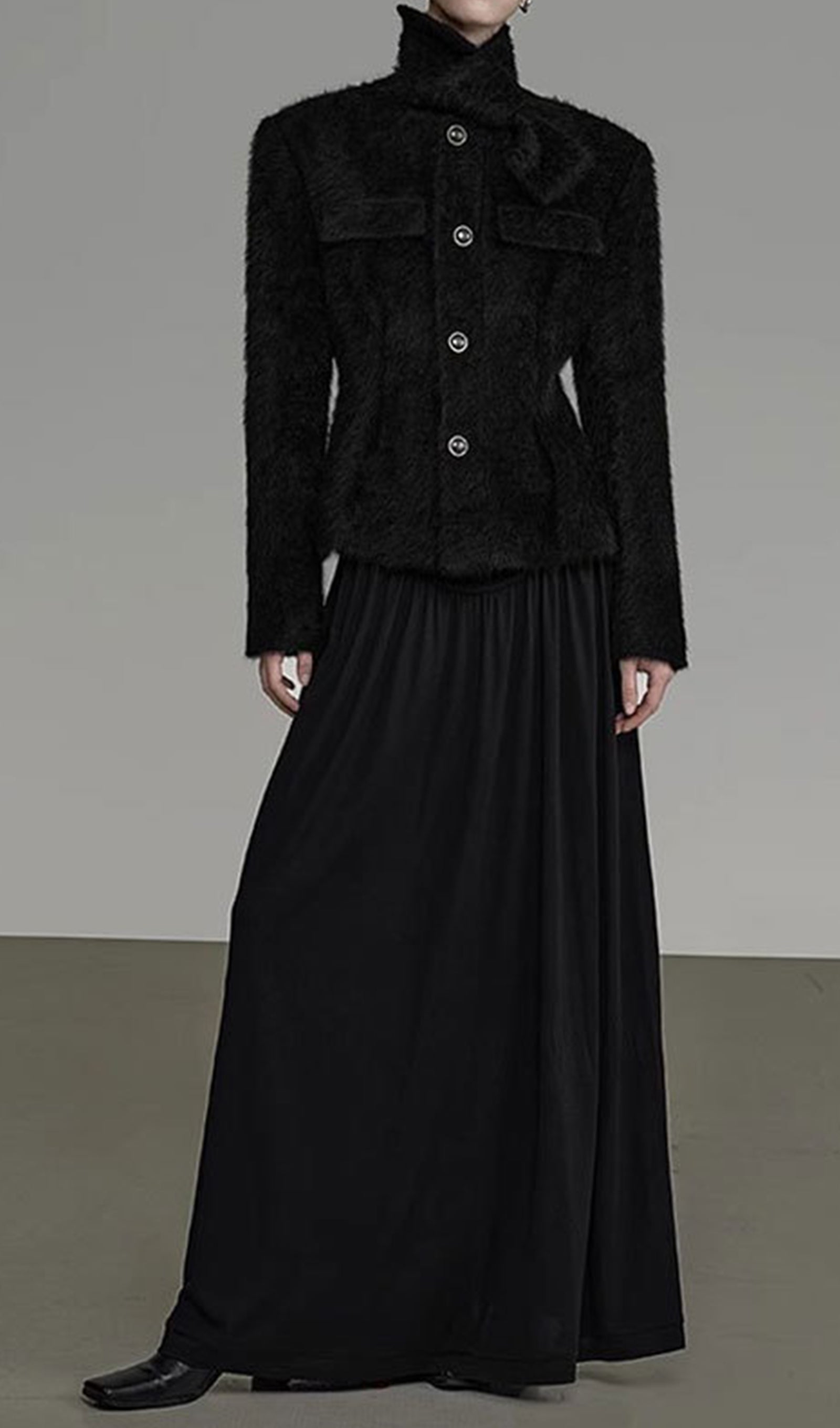 Tüy Hırkamız, sezonun aranan dokusuyla öne çıkıyor. Bu yumuşacık hırka, yuvarlak yaka ve uzun kollarla çerçevelenmiş düğmeli siluetiyle her giyişinizde sizi rahat ettirecek.