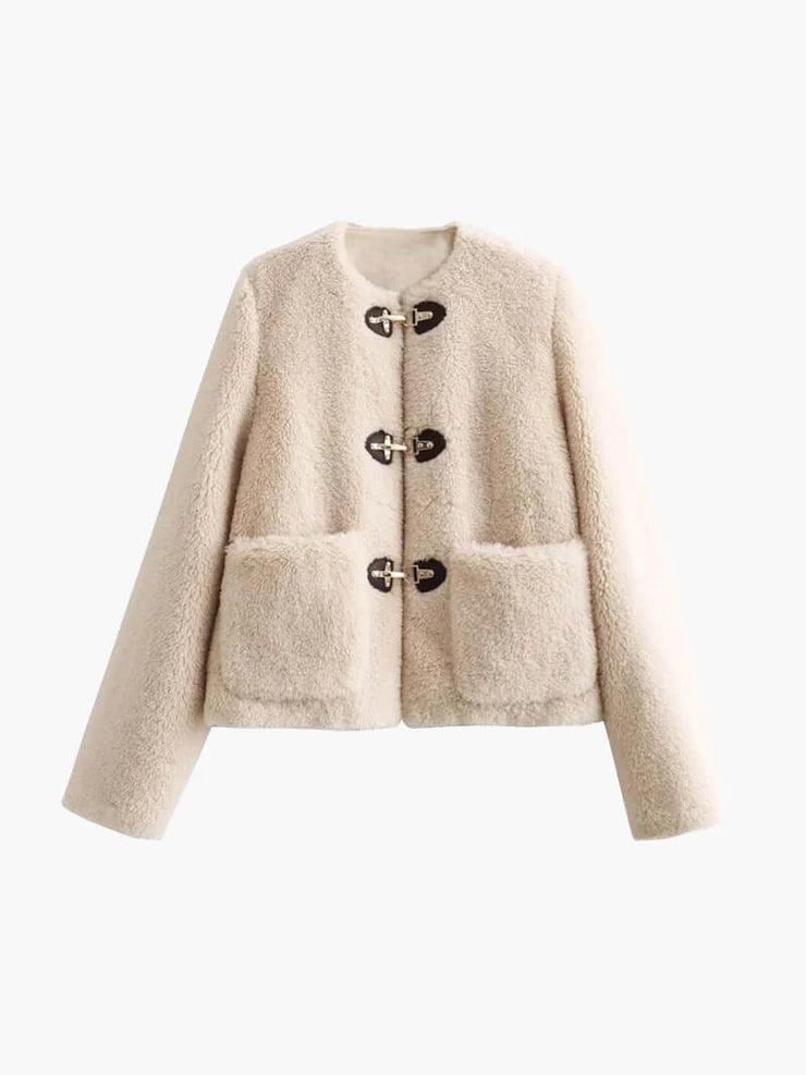 Introducing our Felyn Sheep Jacket, crafted from faux fleece for an effortless blend of style and function. This jacket features an O-neck design, making it perfect for everyday use and special occasions. With an autumn, winter, old money aesthetic, it seamlessly complements your look, whether you're enjoying a casual day out or attending a cozy evening event. Elevate your collection with this essential piece this season.