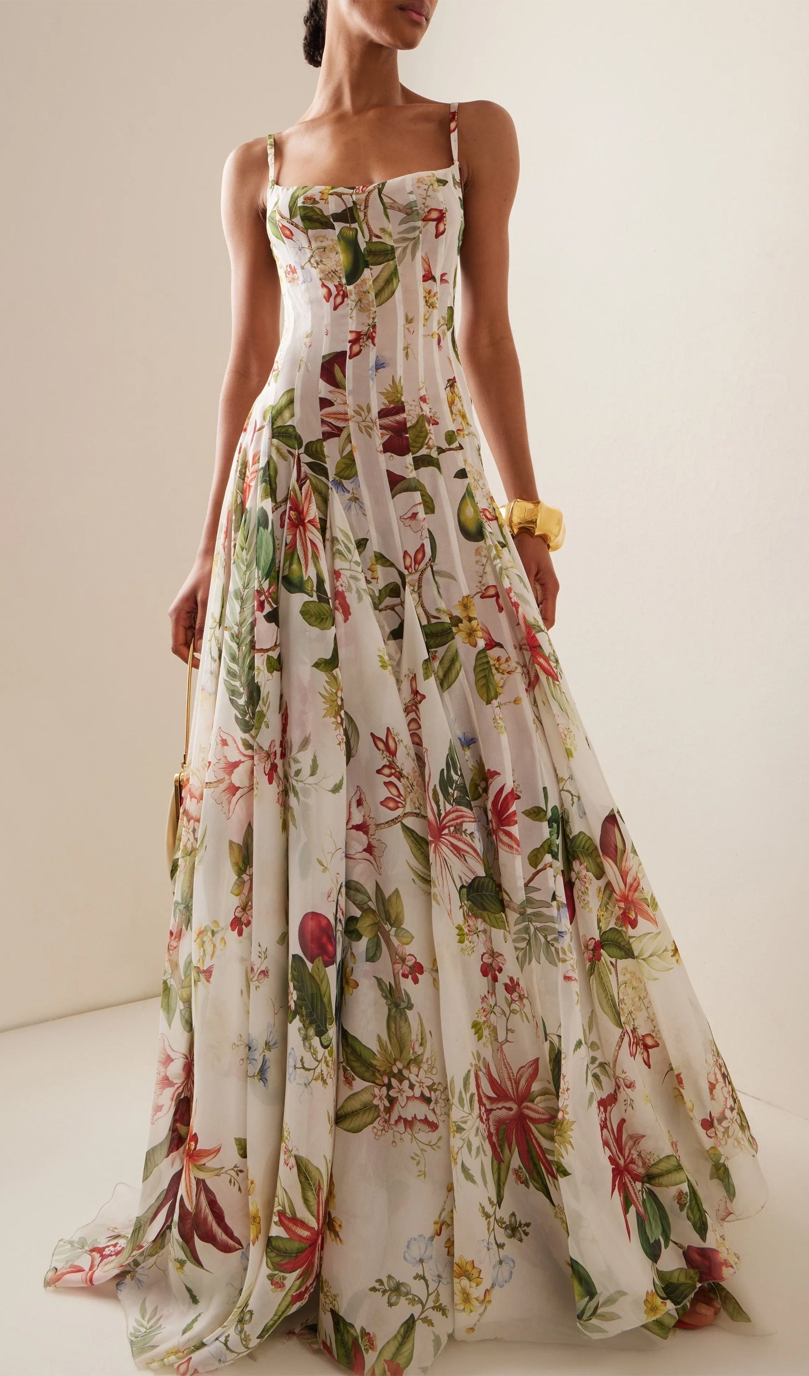 Floral Dantelli Çiçekli ve Faunalı Maksi Elbise
