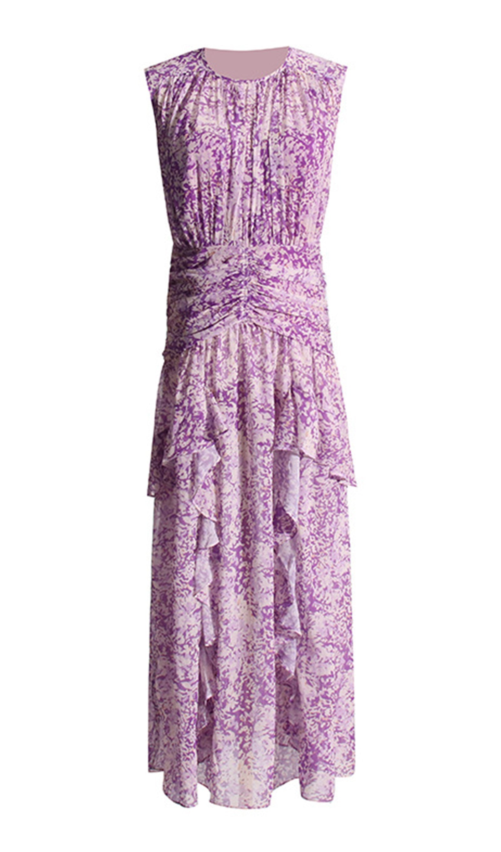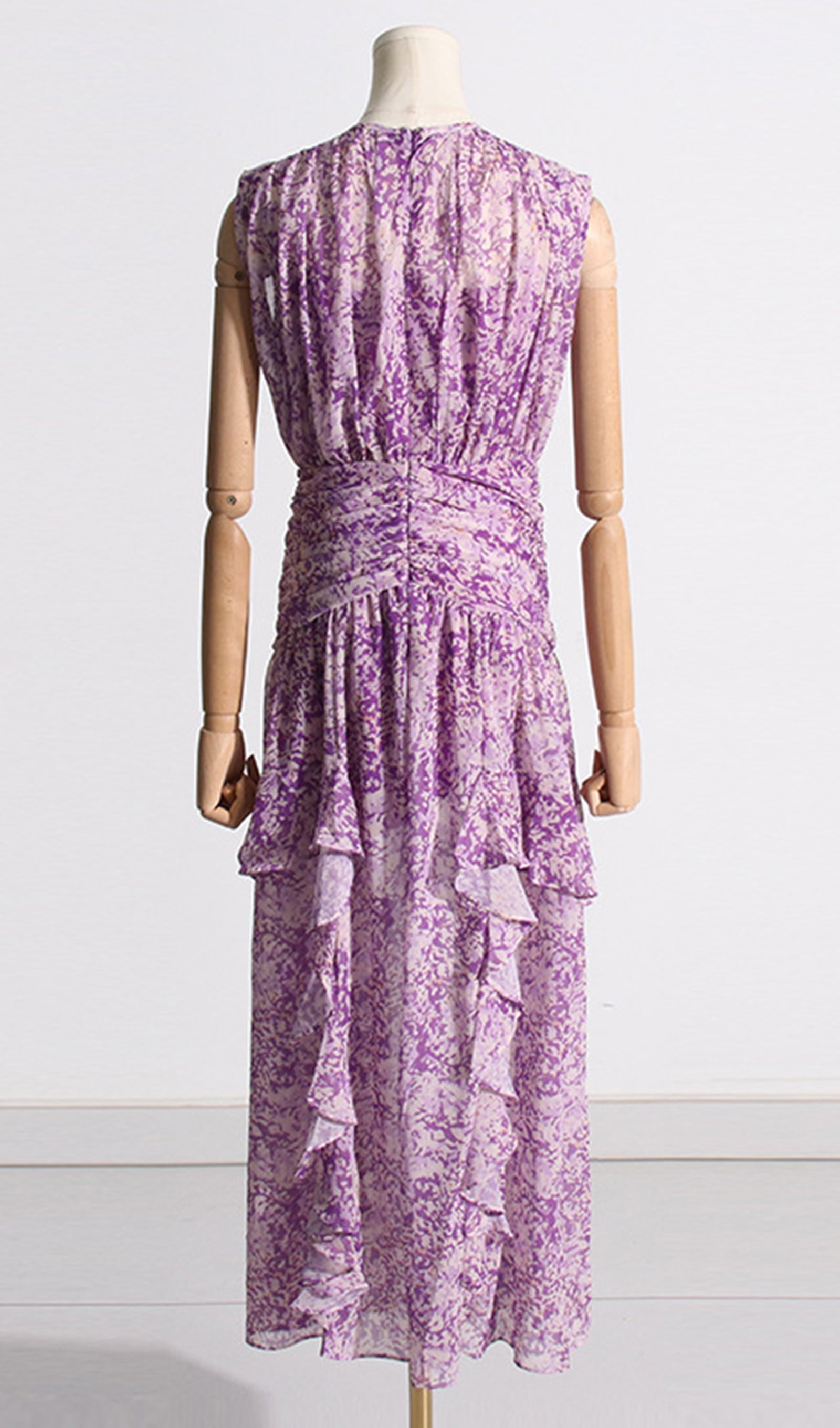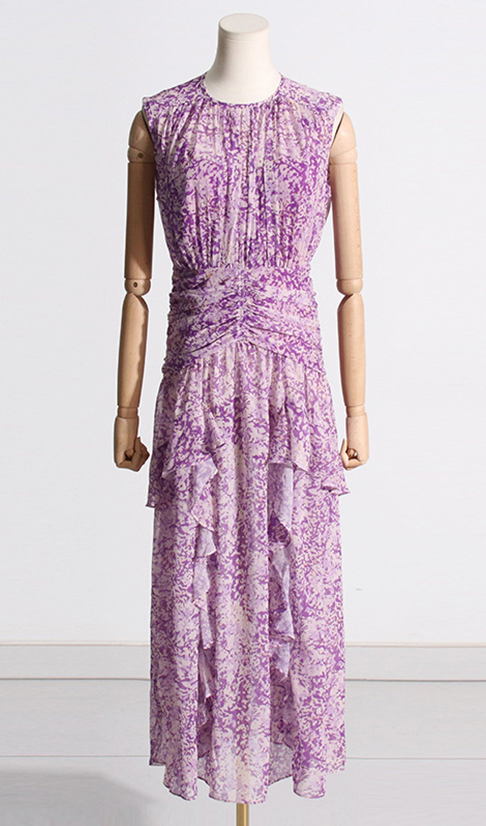 Çiçekli Kolsuz Scrunch Maksi Elbise