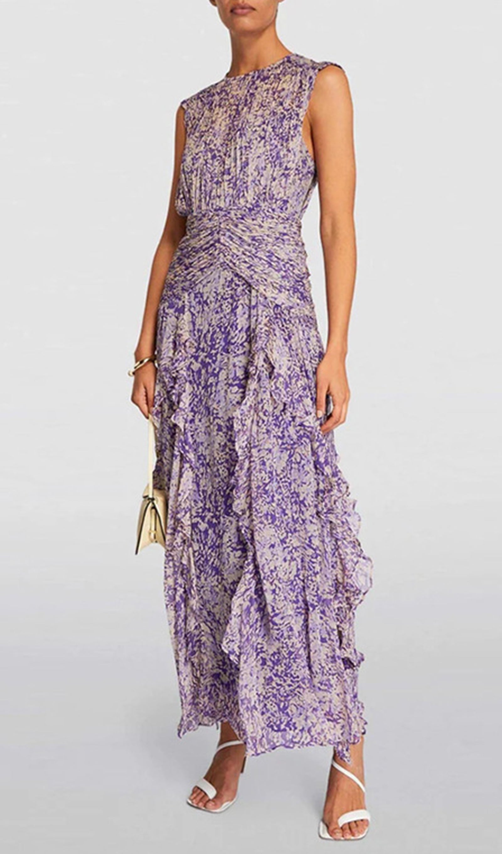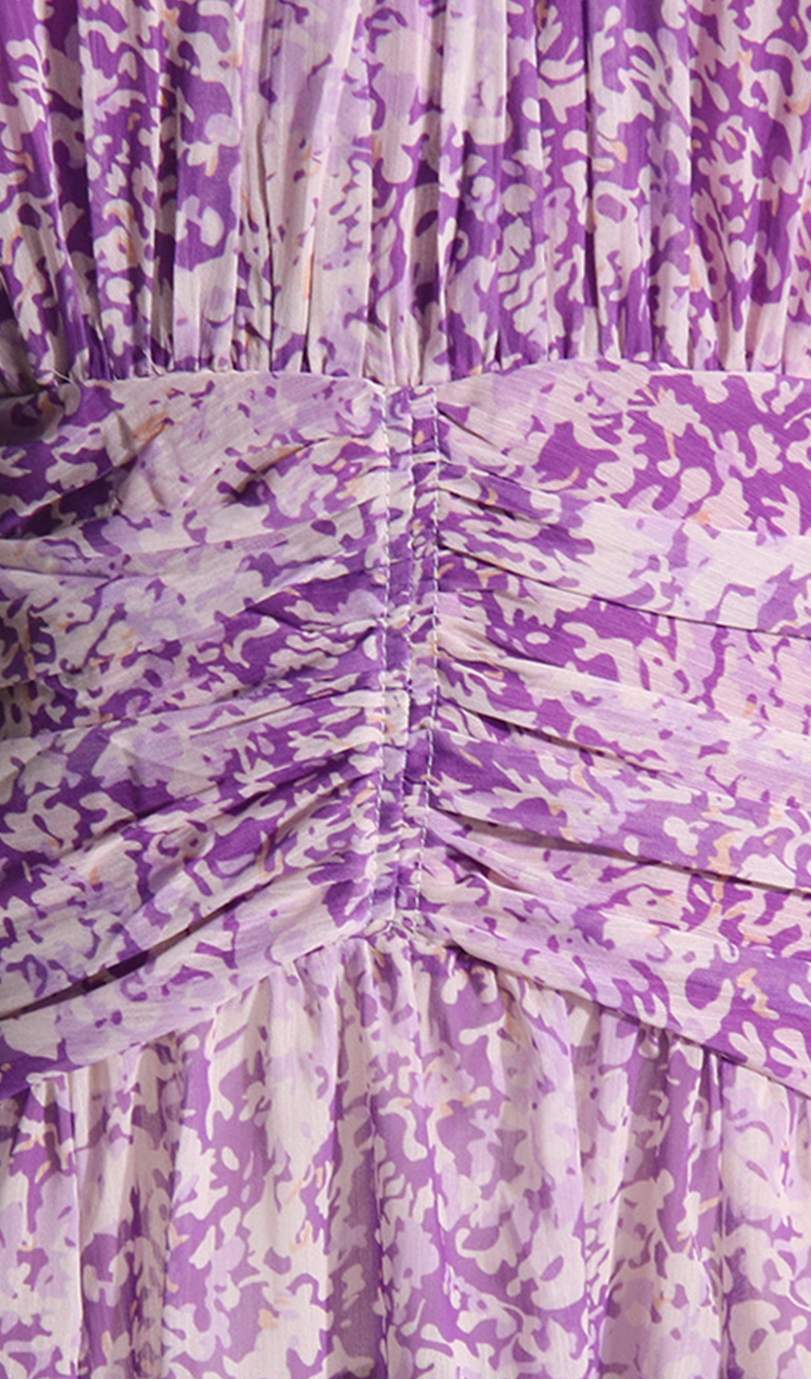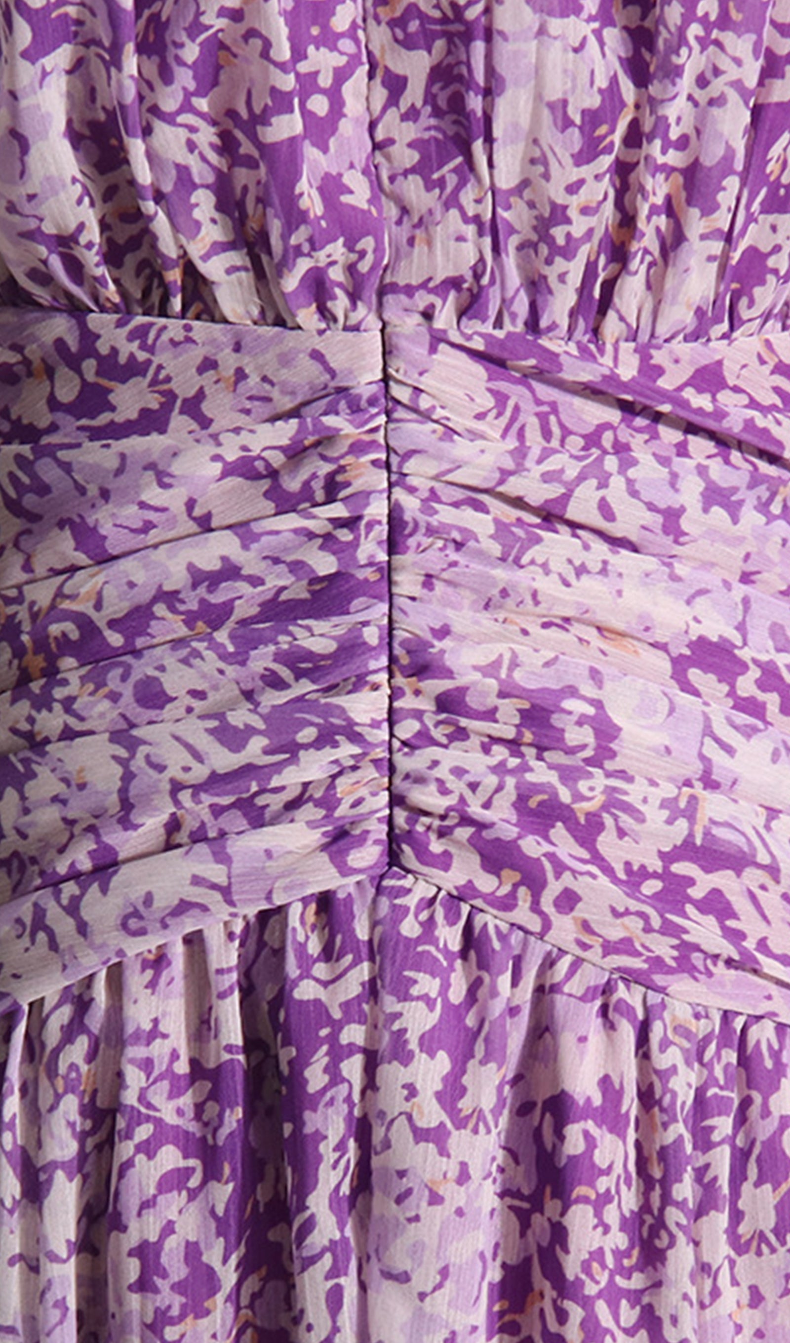 Çiçekli Kolsuz Scrunch Maksi Elbise