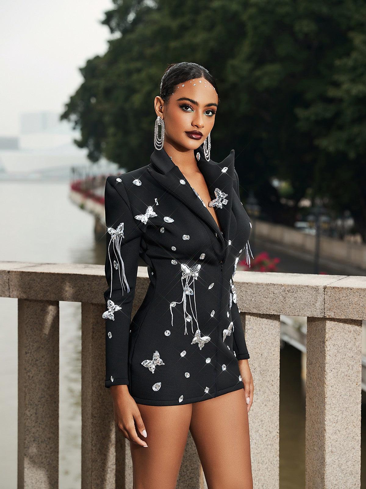 Foy Kelebek İşlemeli Püsküllü Blazer Mini Elbise