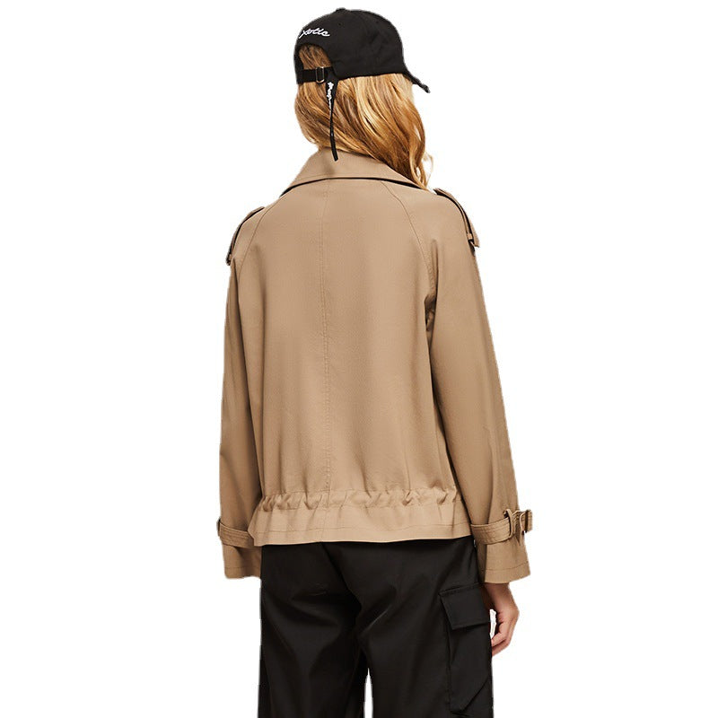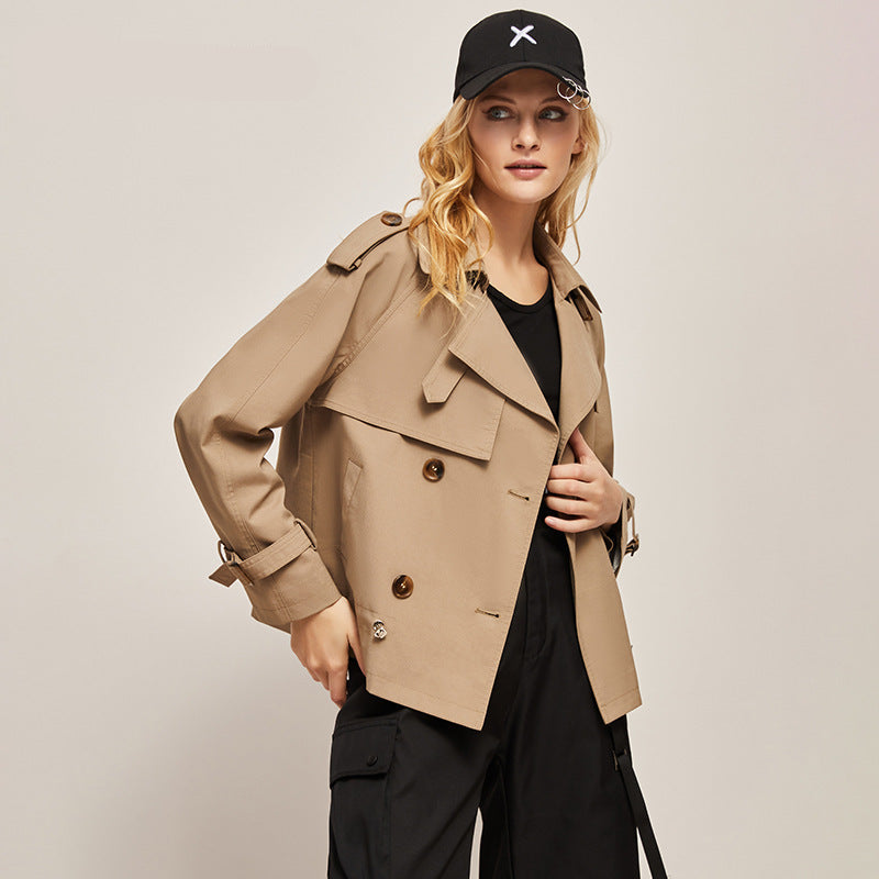 Casual ve modern görünümüyle öne çıkan kısa trençkot, çift sıra düğme detayı ve rahat kesimiyle gündelik stilinize şıklık katar. Bahar ve sonbahar kombinlerinizin kurtarıcı parçası.