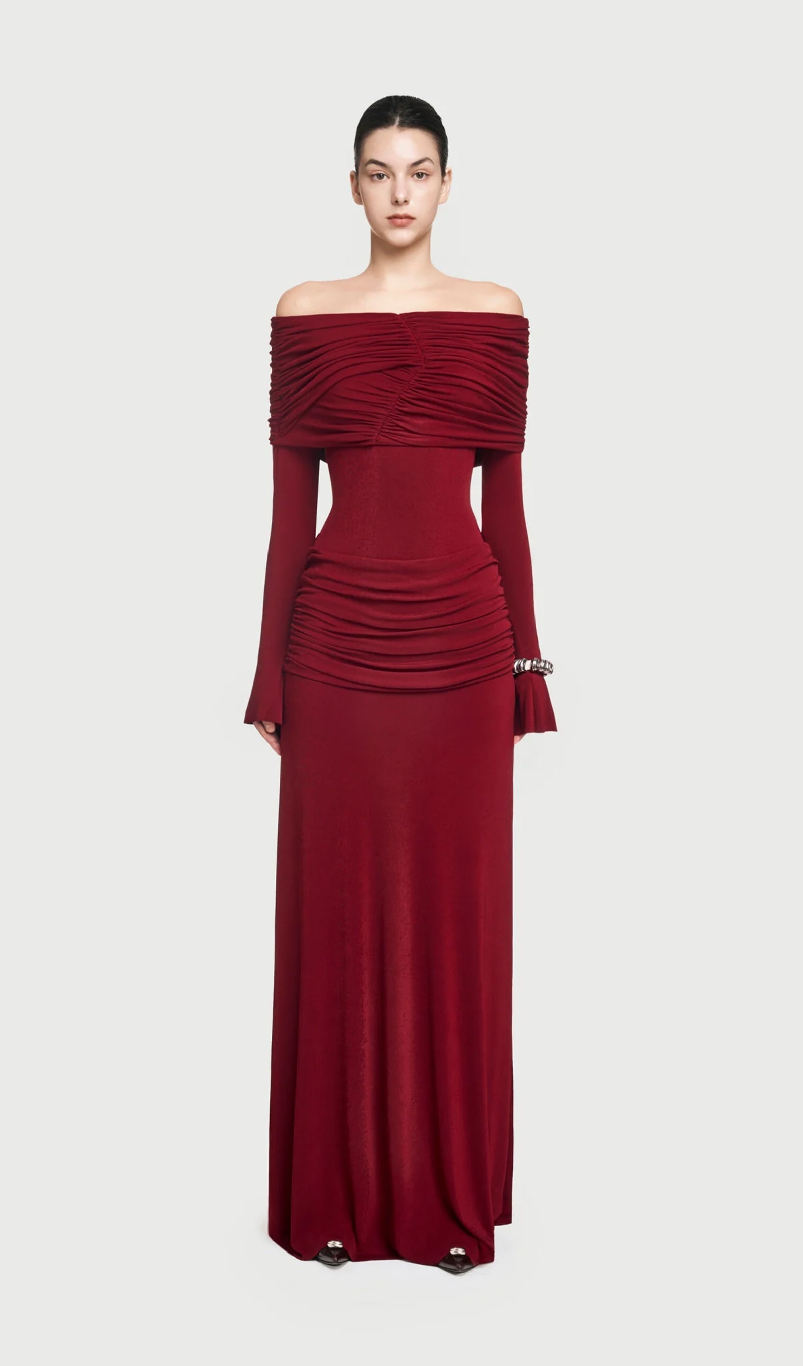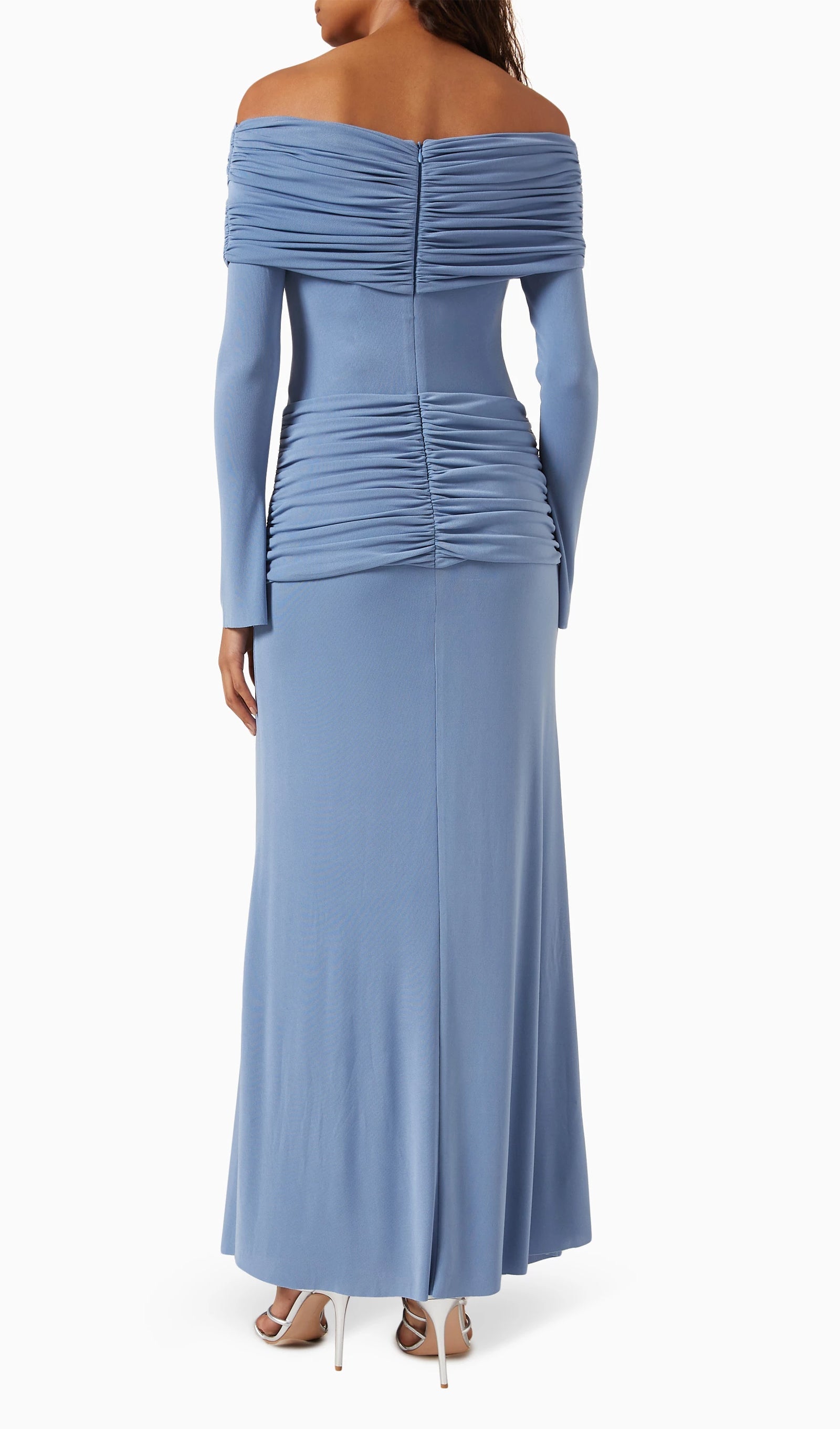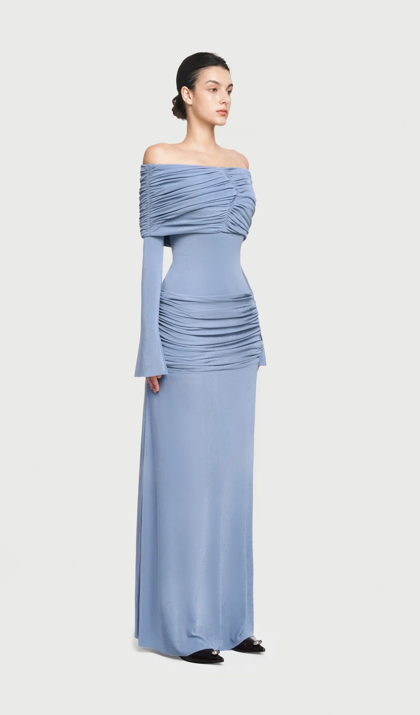 Jersey Drapeli Omuzları Açık Maksi Elbise