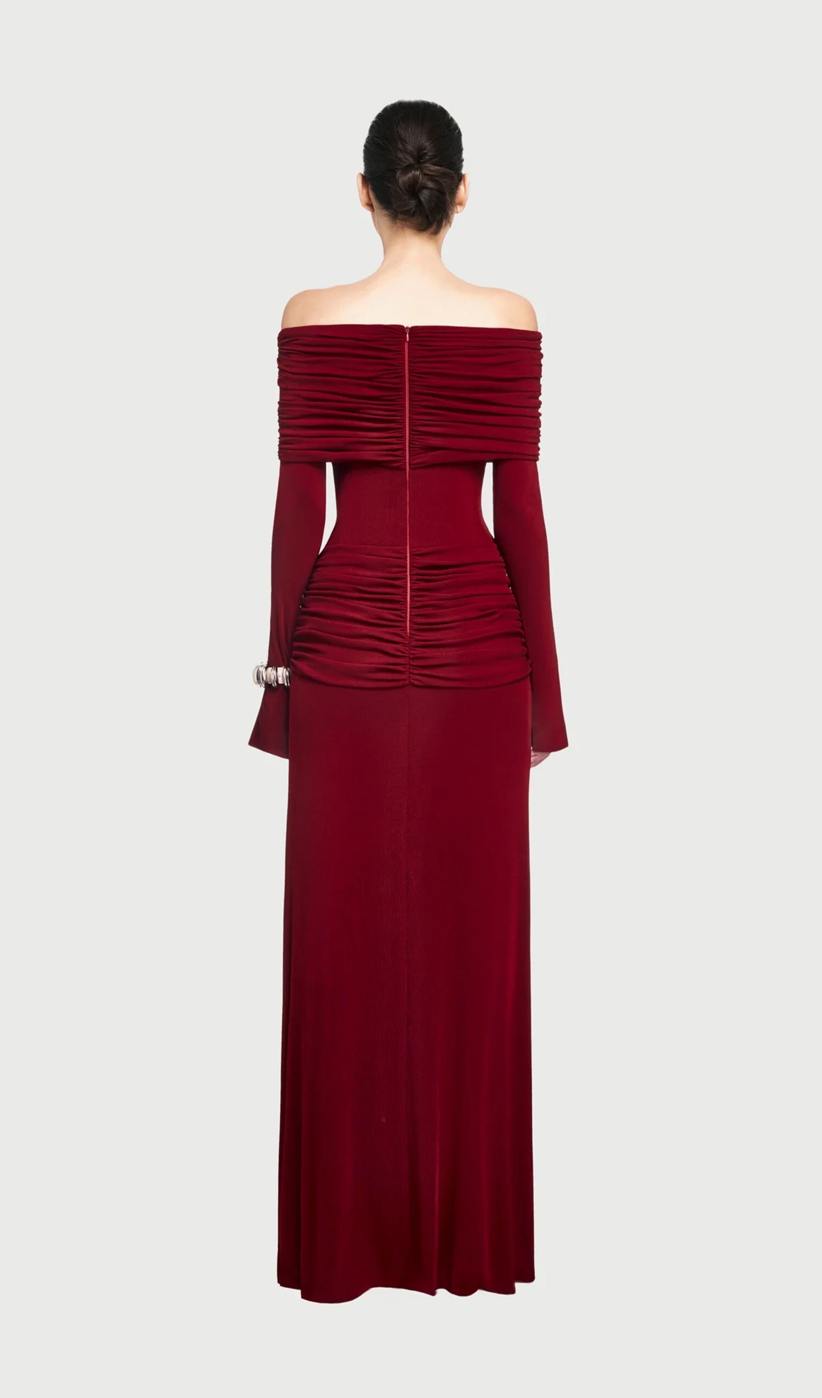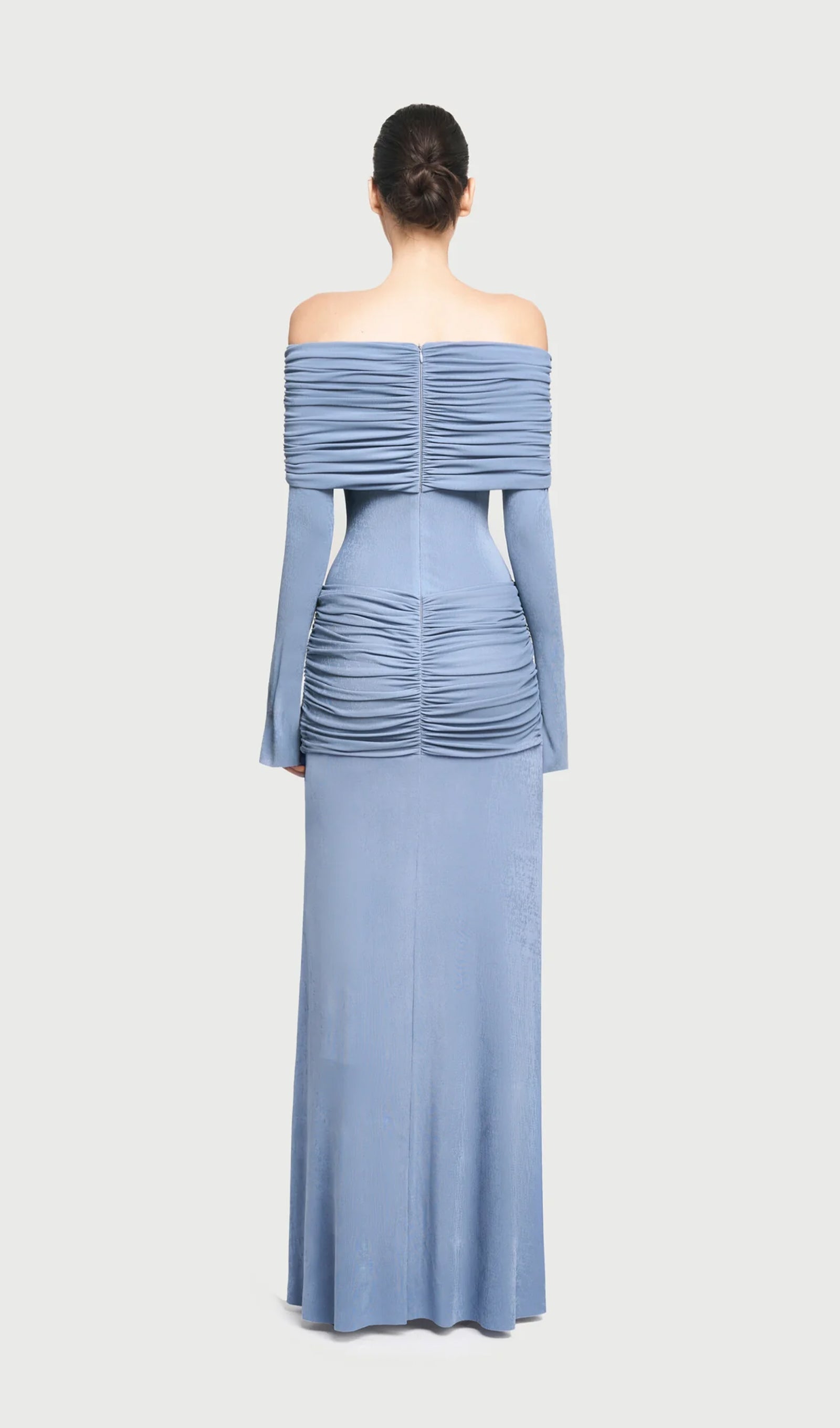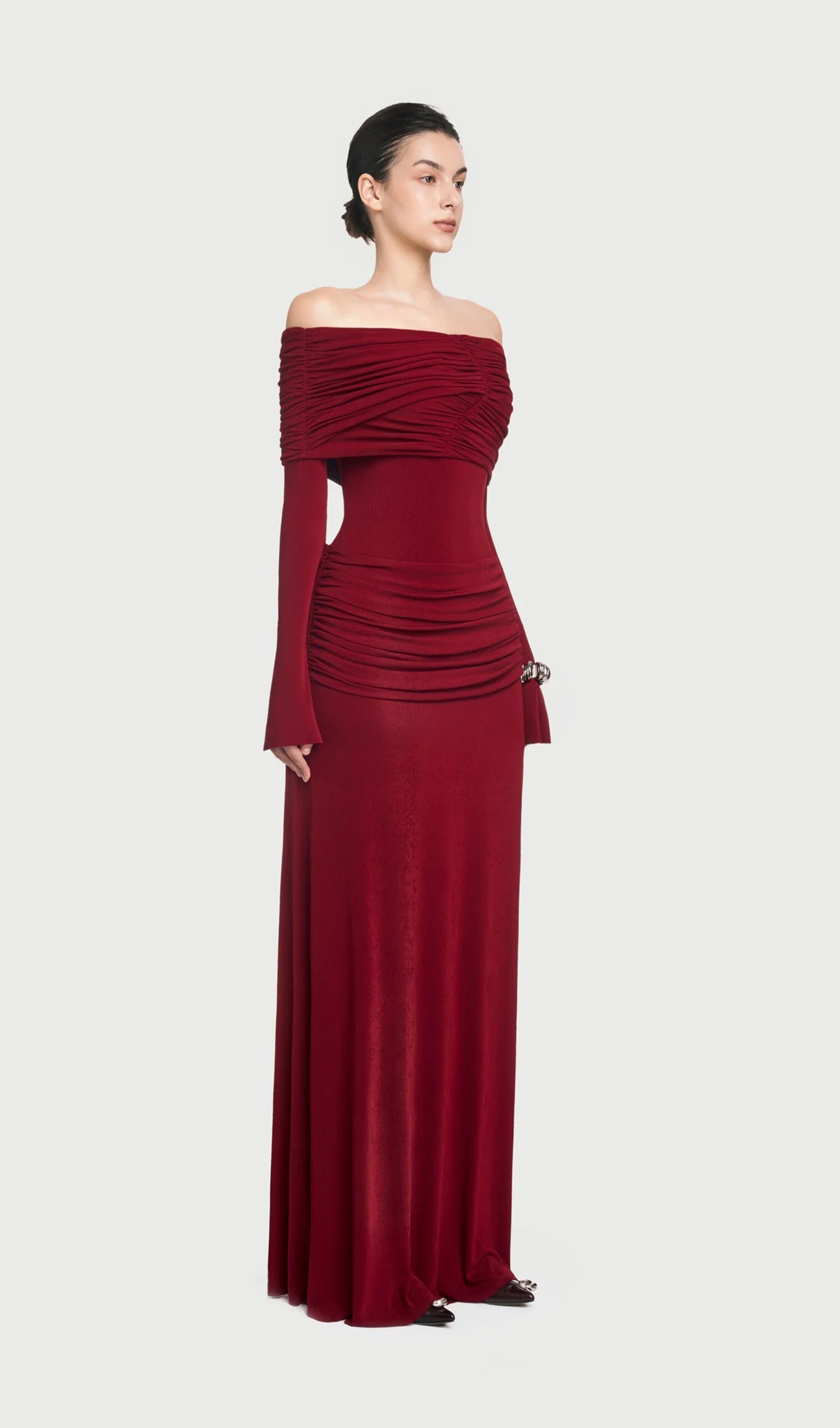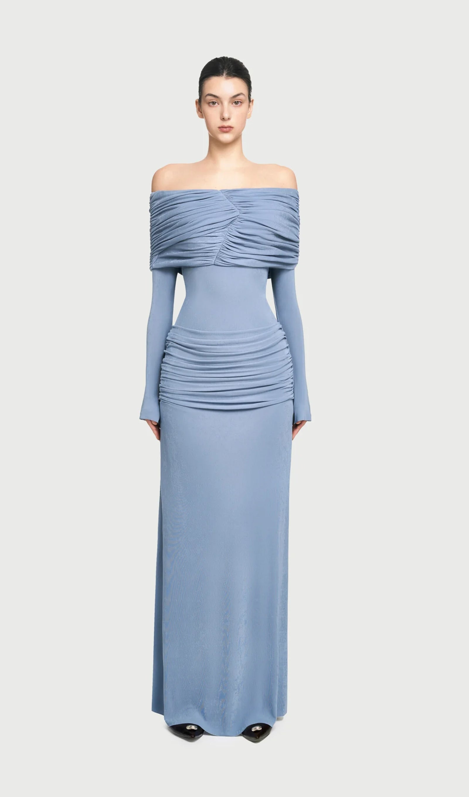 Jersey Drapeli Omuzları Açık Maksi Elbise
