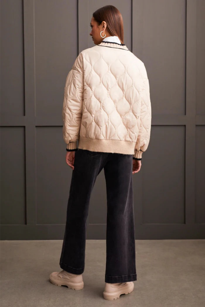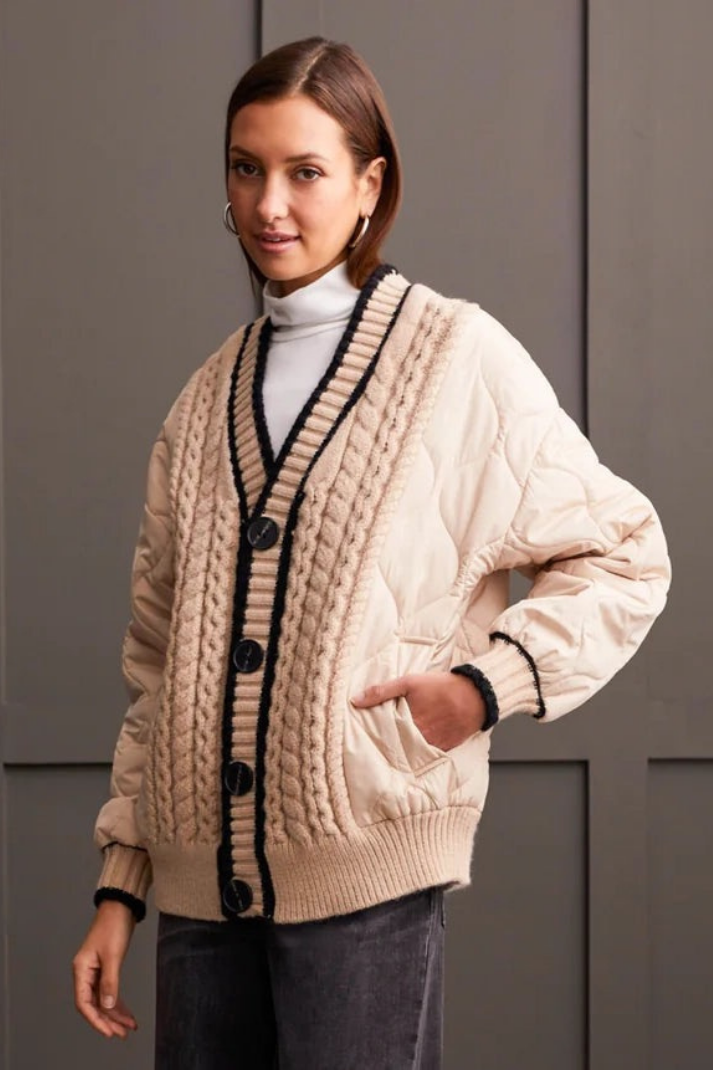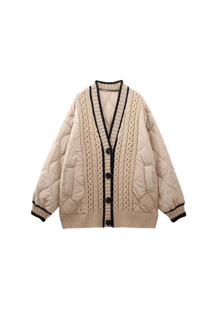 -Stil: Triko detaylı düğmeli kapitone ceket