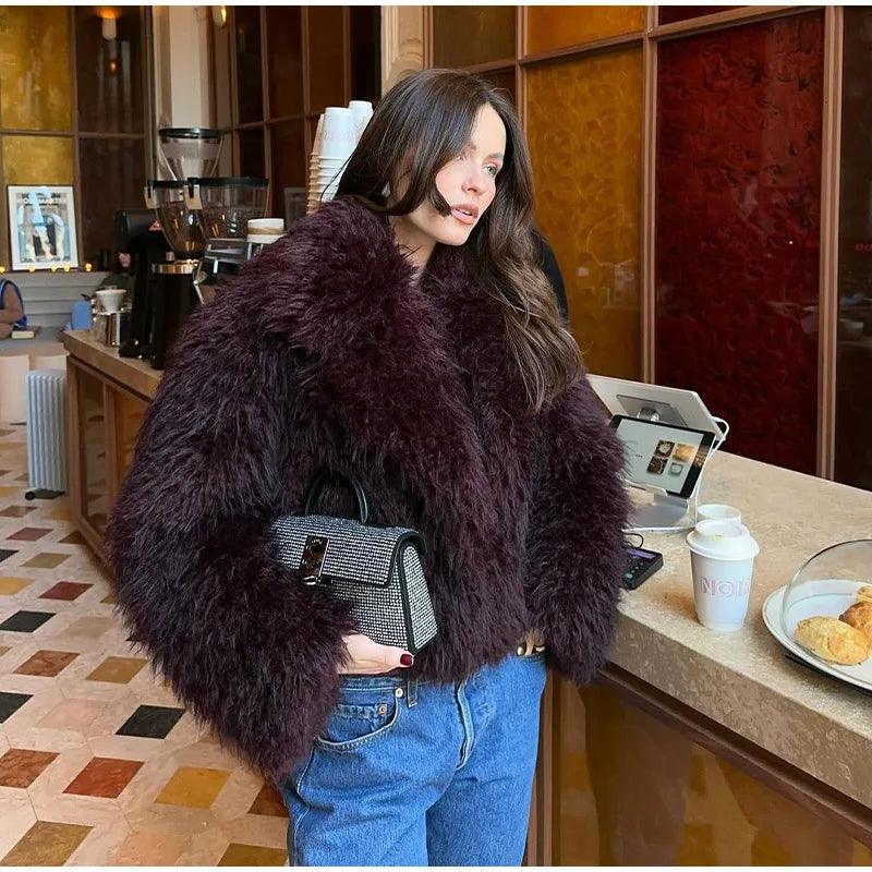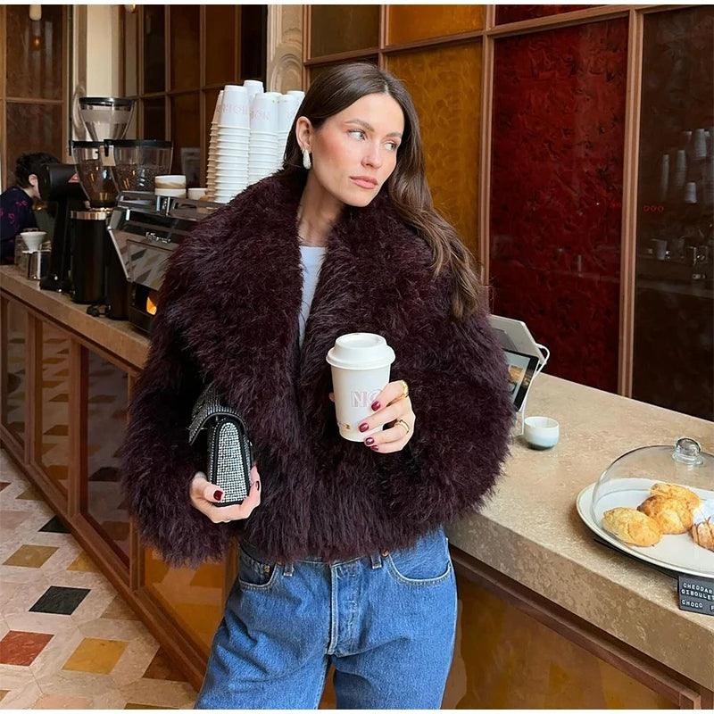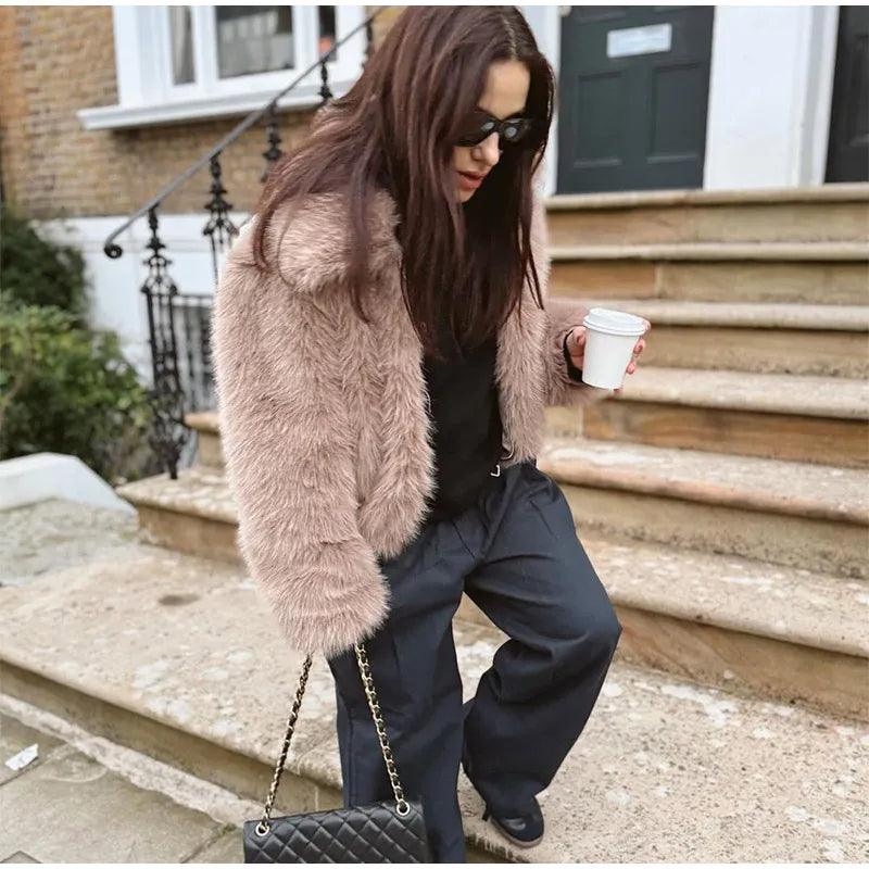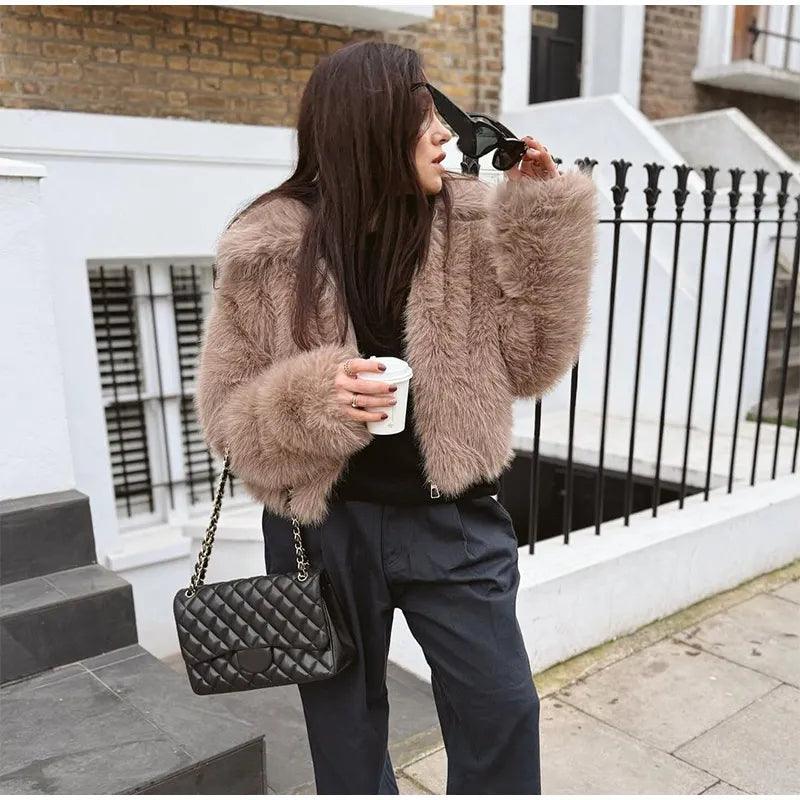 Lüks suni kürk kırpılmış ceket ile kış stilinizi yükseltin. Sıcak kalırken fark yaratmak için mükemmel olan bu ceket, konfor ve şıklığın mükemmel bir karışımıdır.