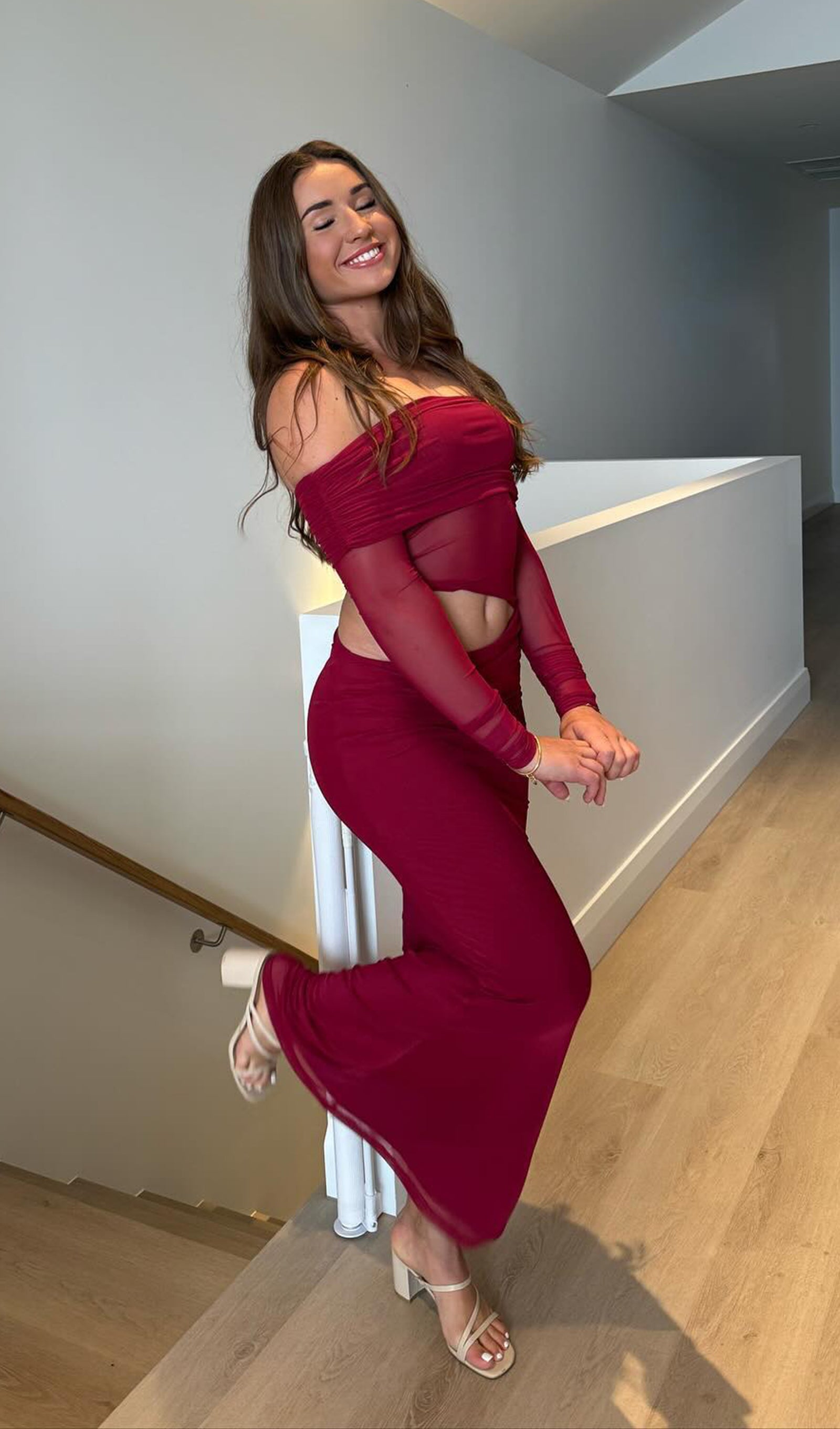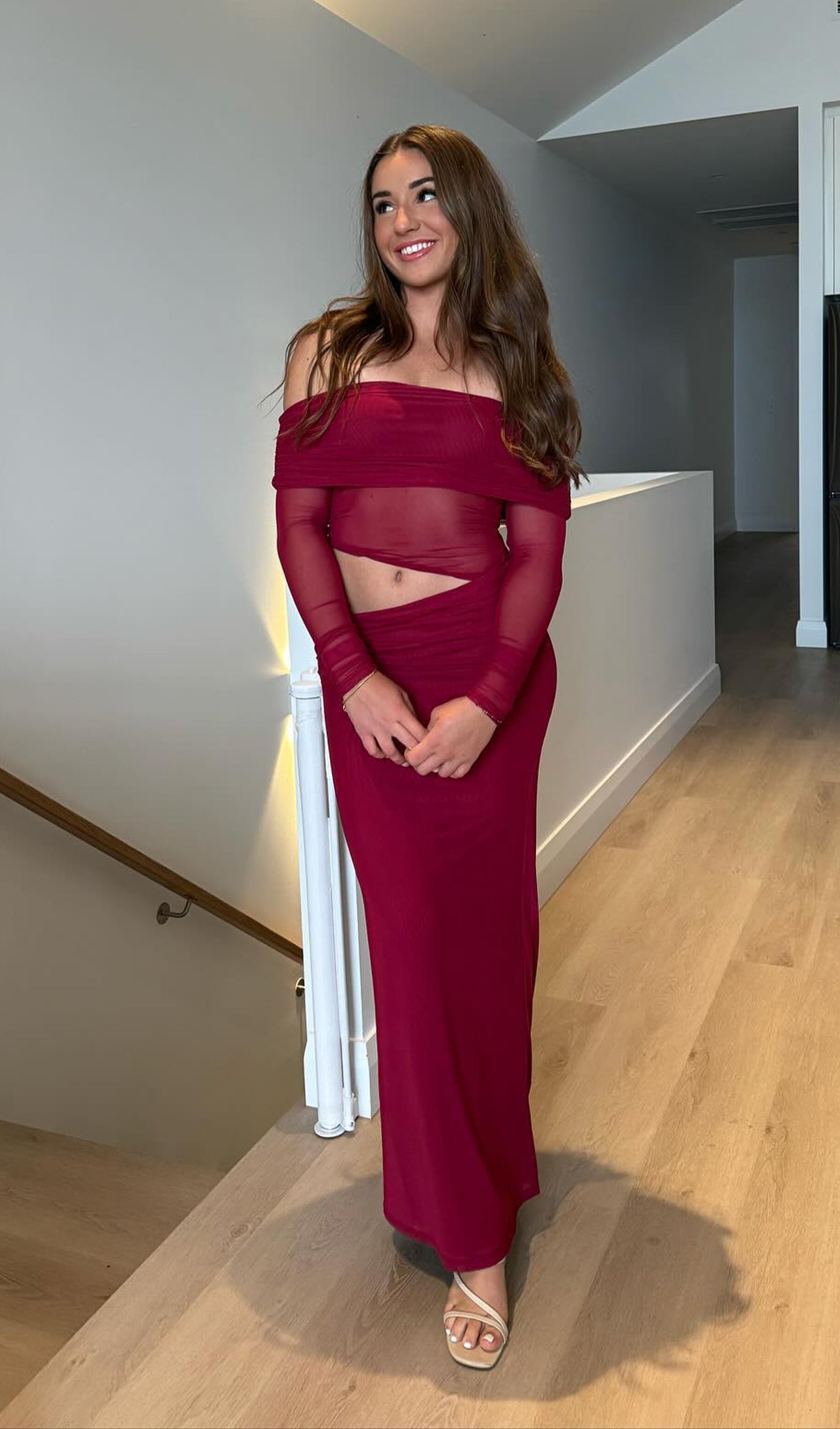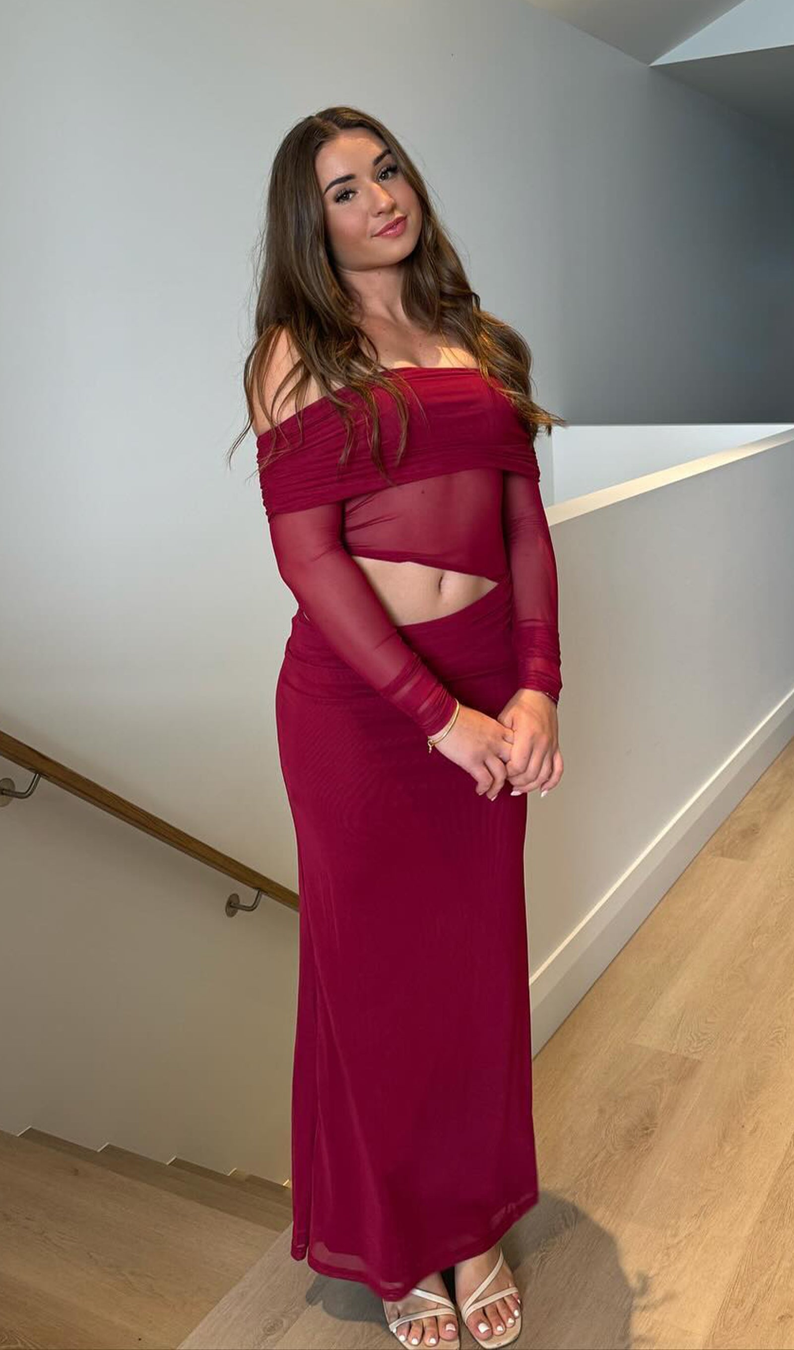 Kapalı Omuz Şeffaf Maksi Kırmızı
