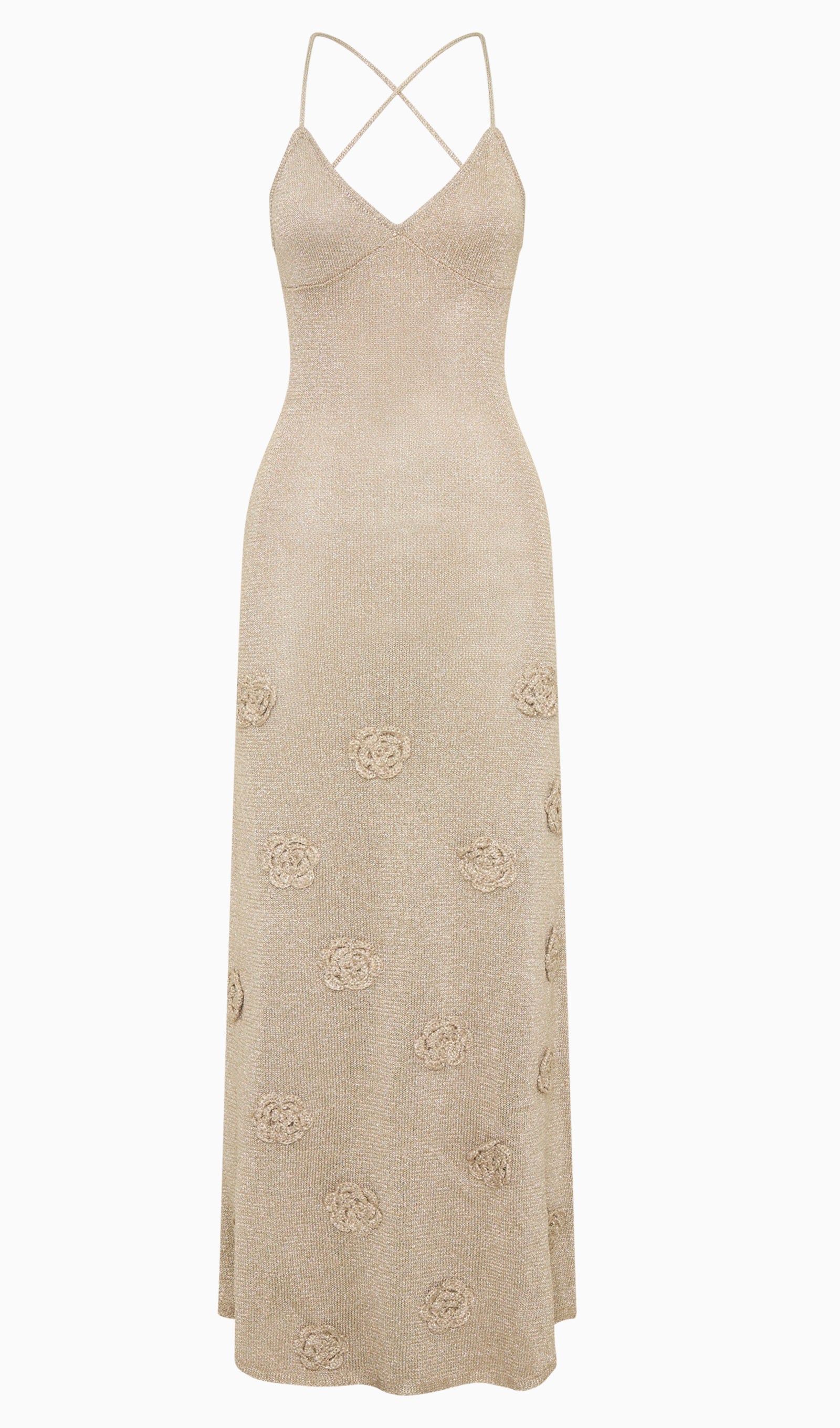 Çiçekli Kroşe Maksi Elbise, V yakası ve çapraz fonksiyonel askılarıyla sofistike ve zarif bir görünüm sergiler. Bodycon silueti kıvrımları vurgularken, narin çiçek aplikesi tuhaf bir dokunuş katıyor. Astarsız trikodan üretilen çiçekli kroşe elbise, her durum için rahatlık ve stil sunar.