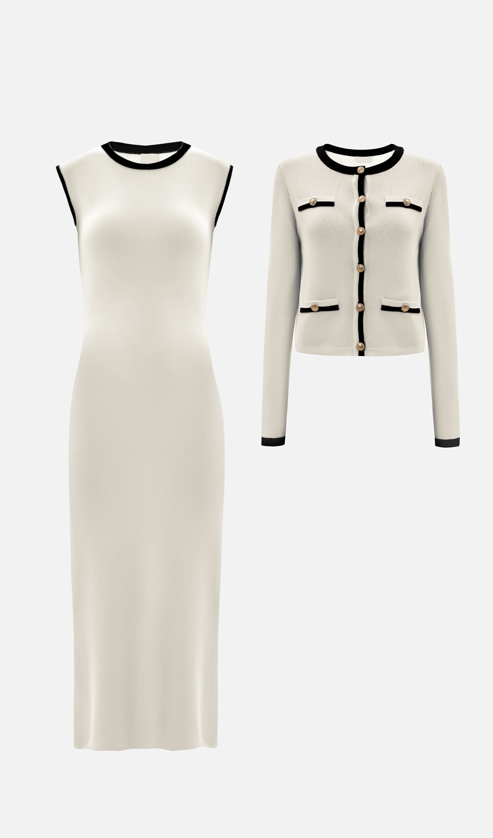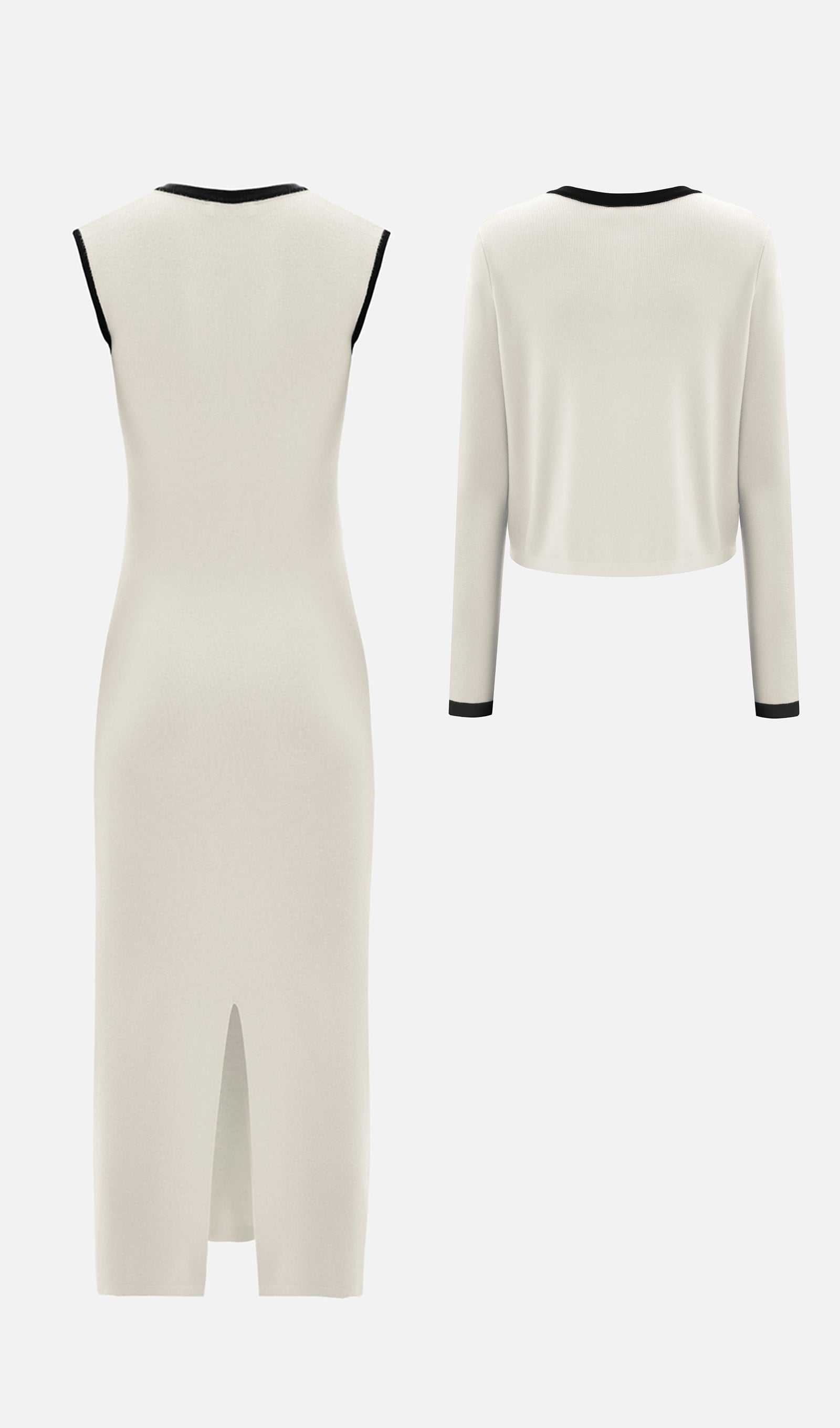 Örme Midi Elbise İki Parça Takım-Beyaz