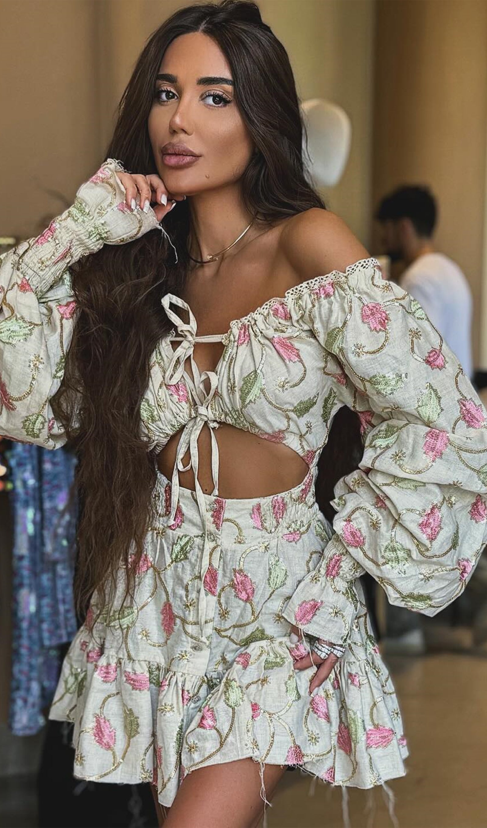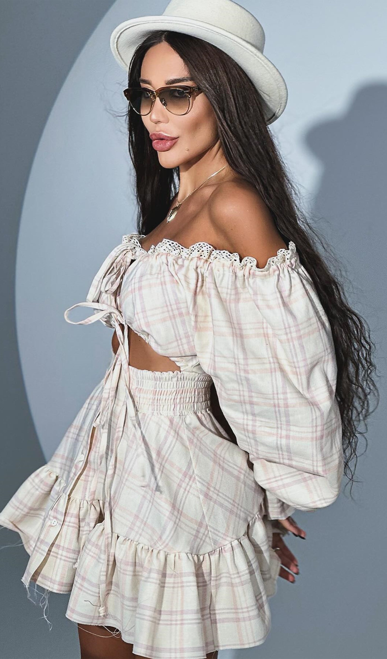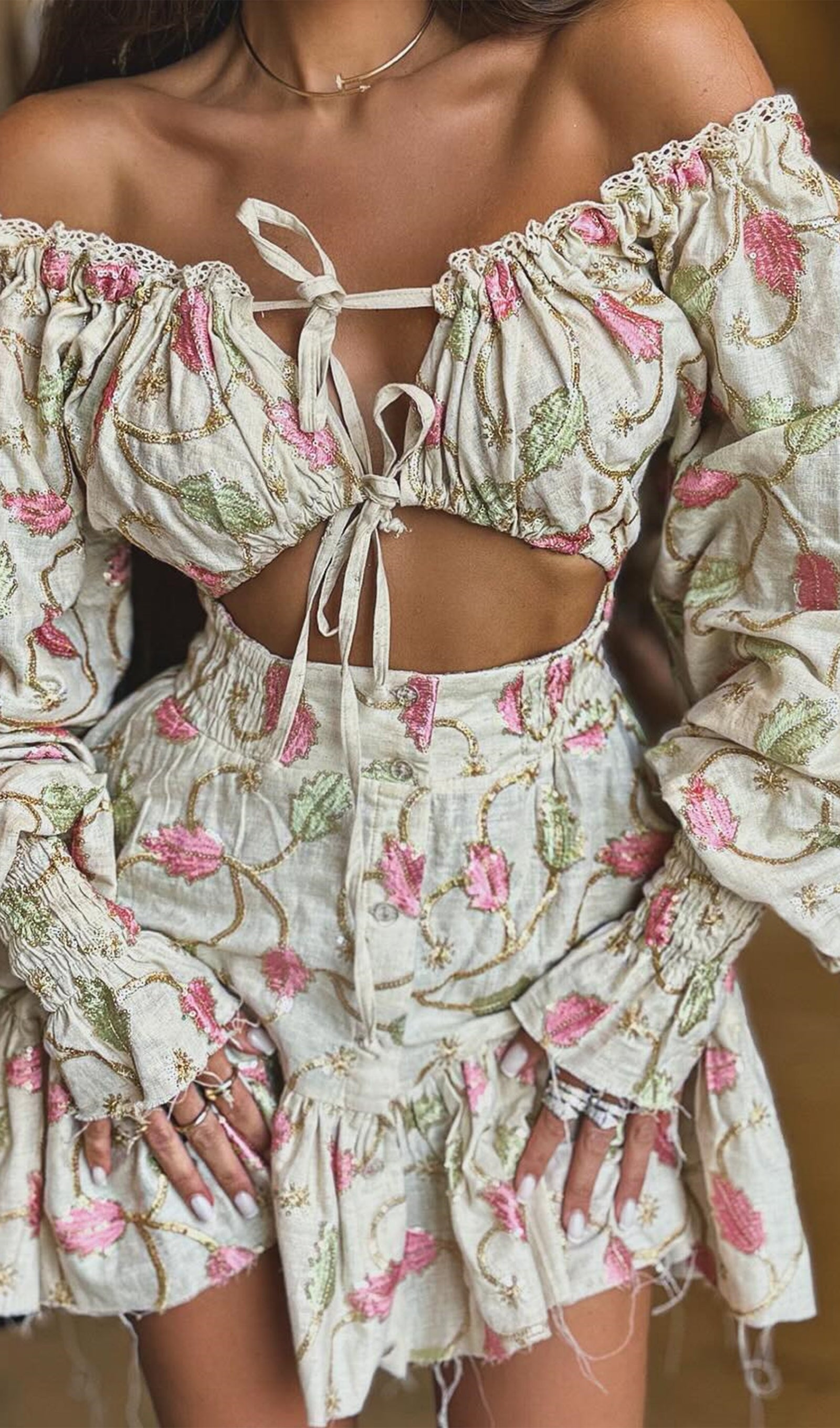 Bu Dantelli Mini Elbise İki Parçalı Set, puf kolları ve narin fırfır detaylarıyla modaya uygun bağcıklı bir tasarıma sahiptir. Her durum için mükemmeldir.