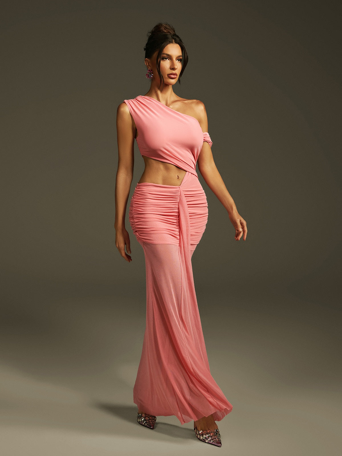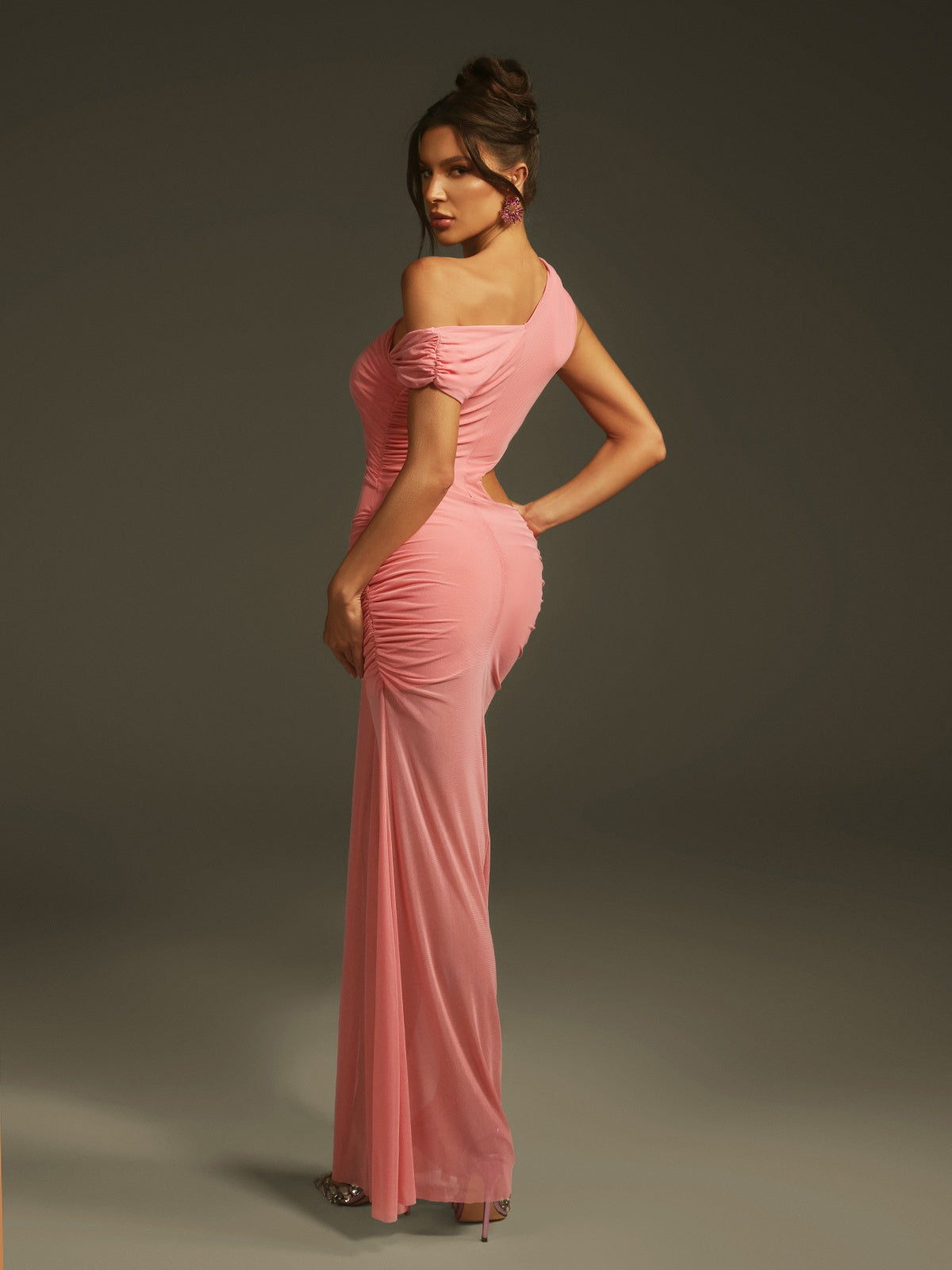Lakia Kesimli Büzgülü File Maxi Elbise