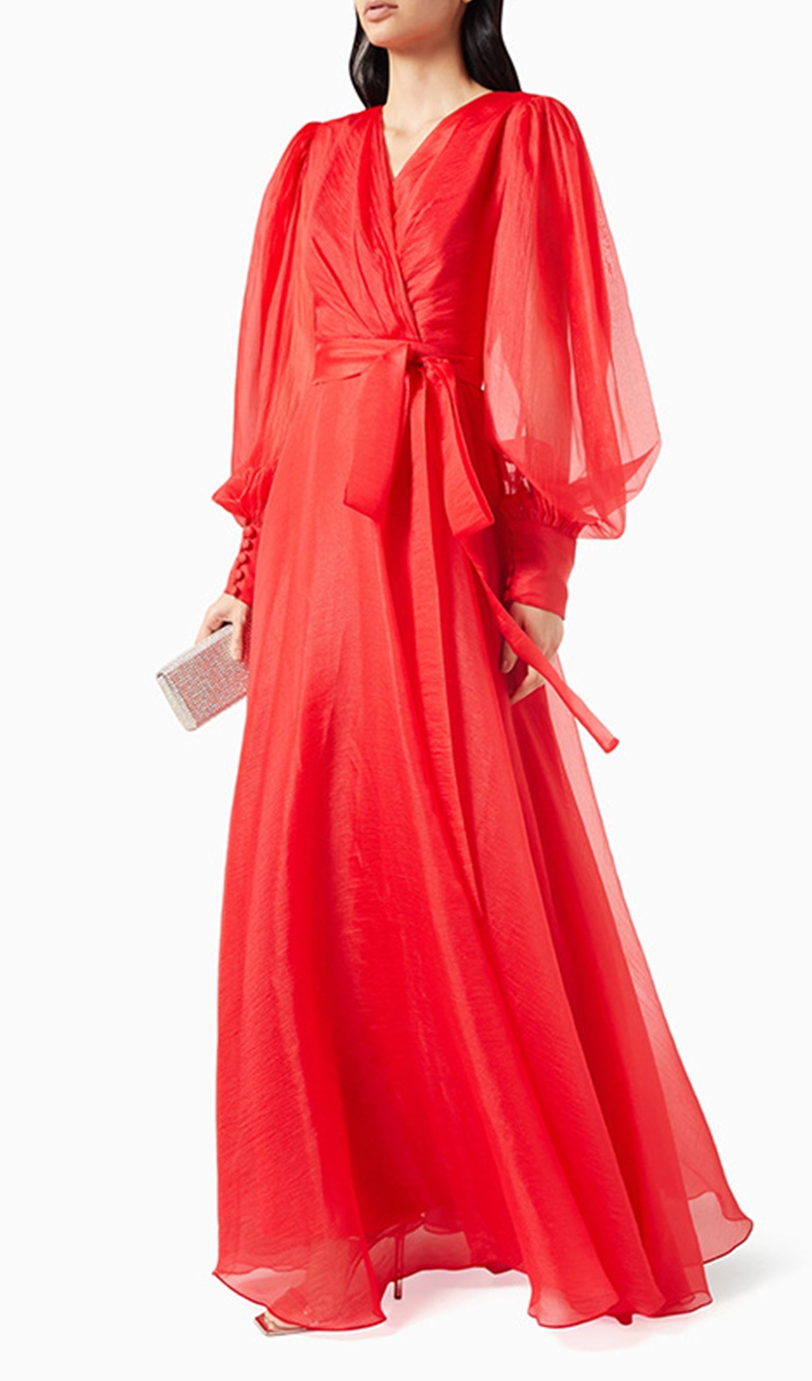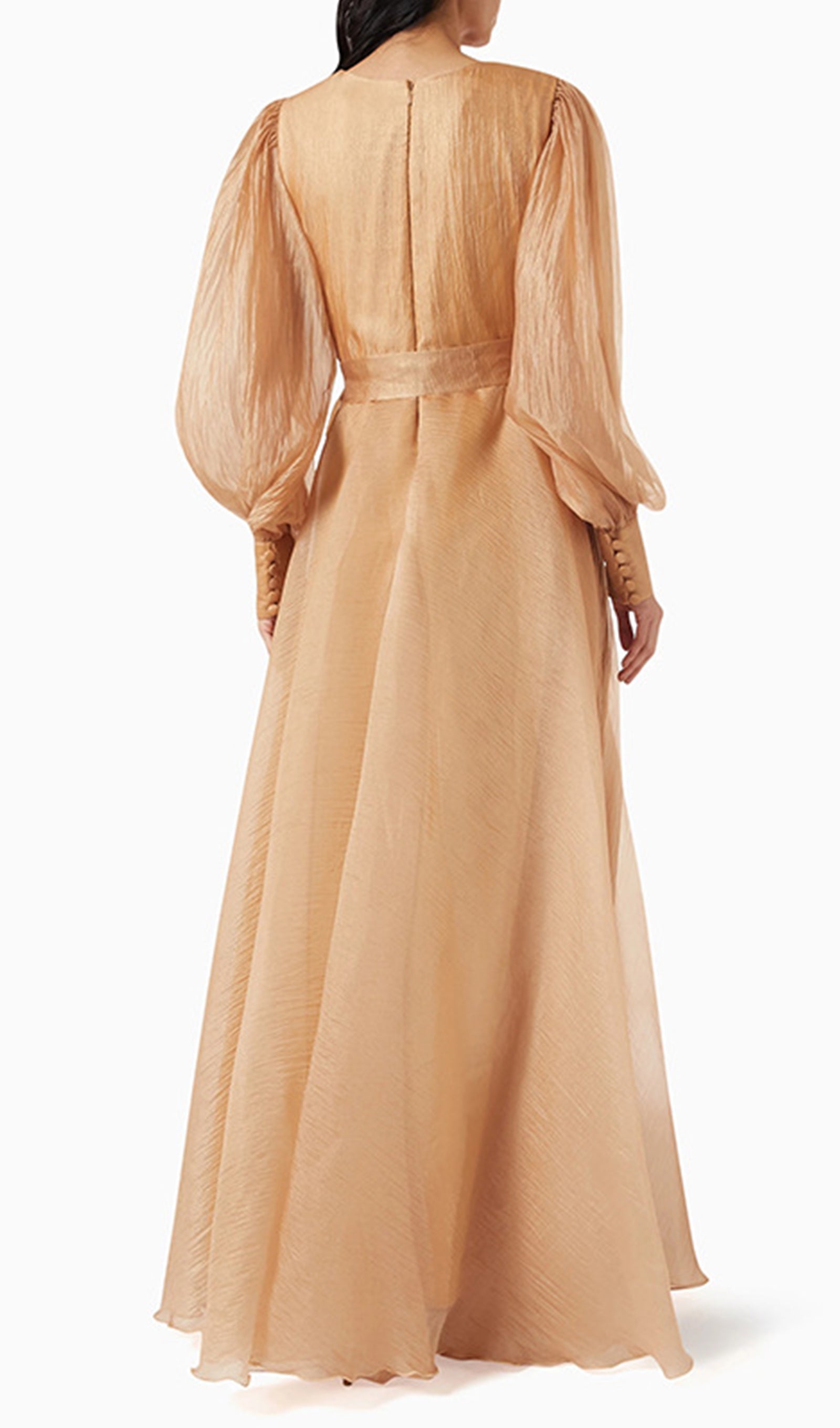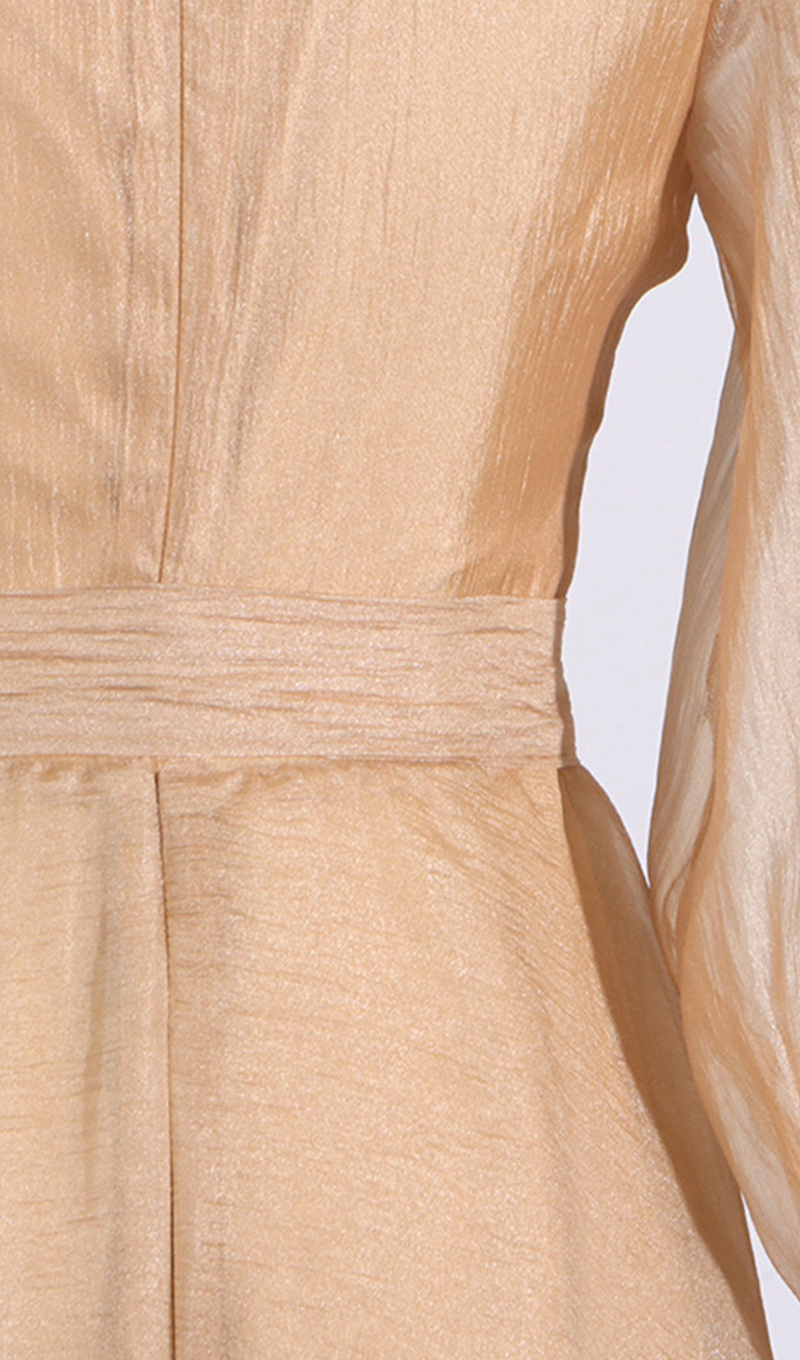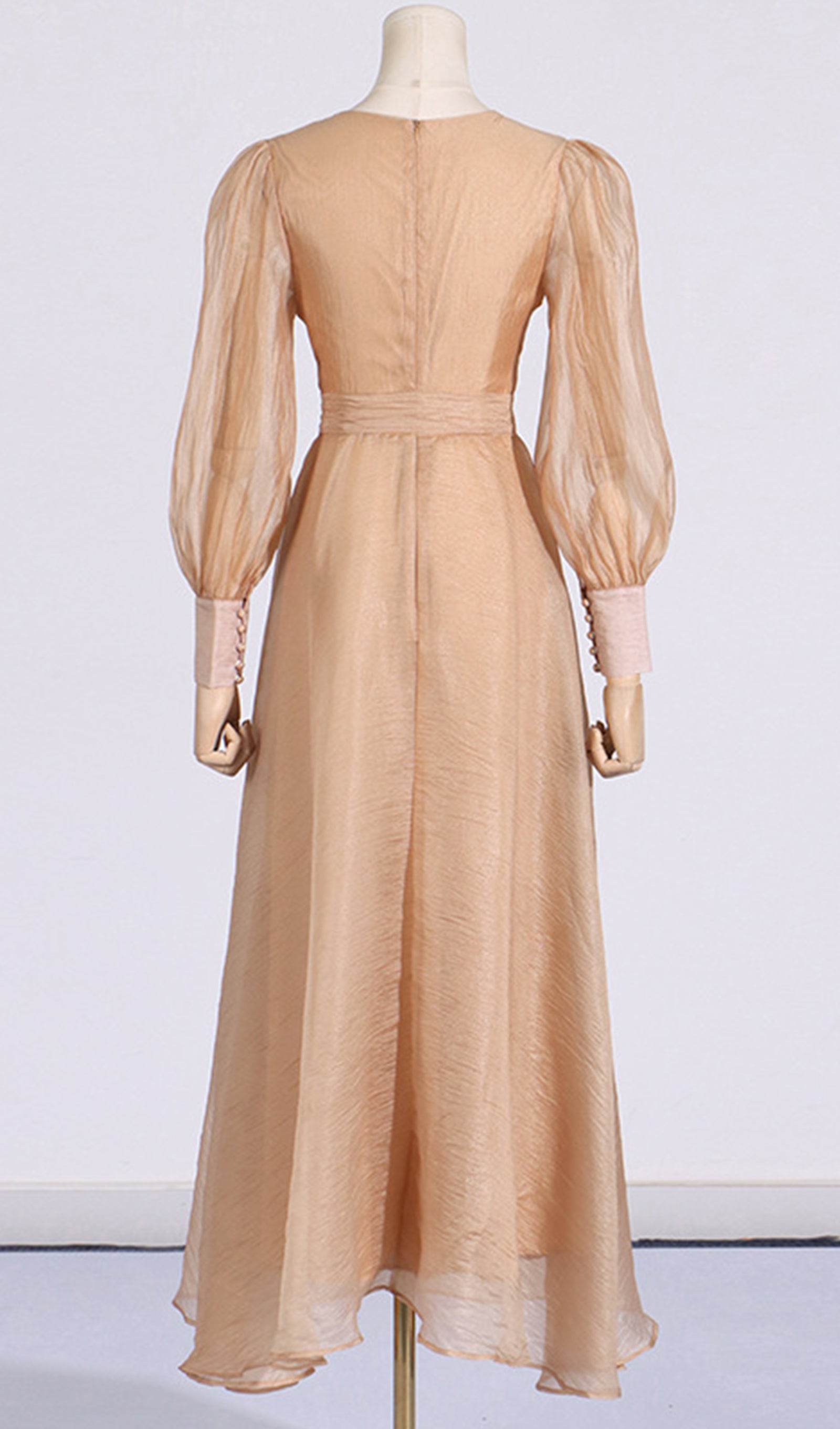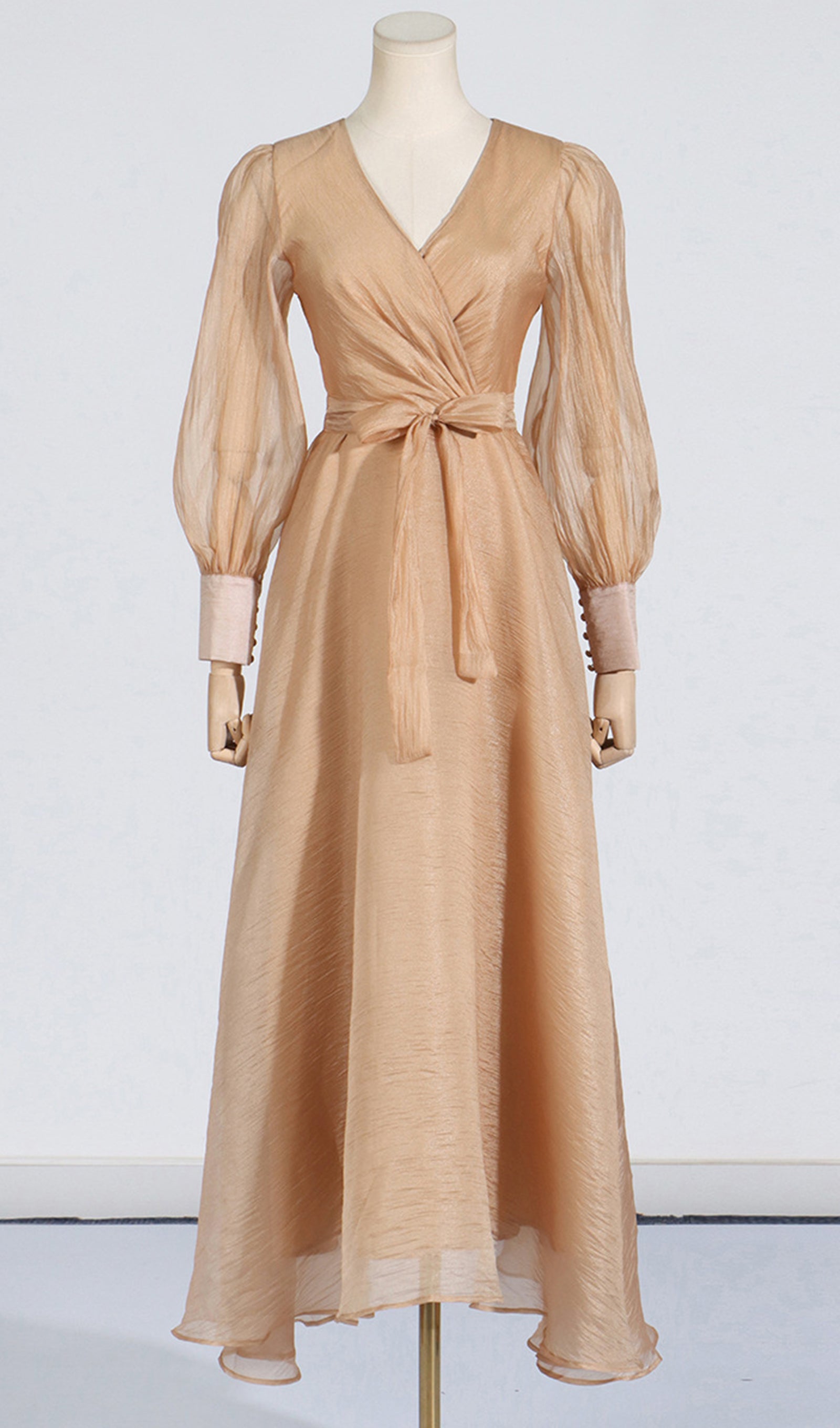 Fener Kollu V Yaka Bel Kemerli Maksi Elbise