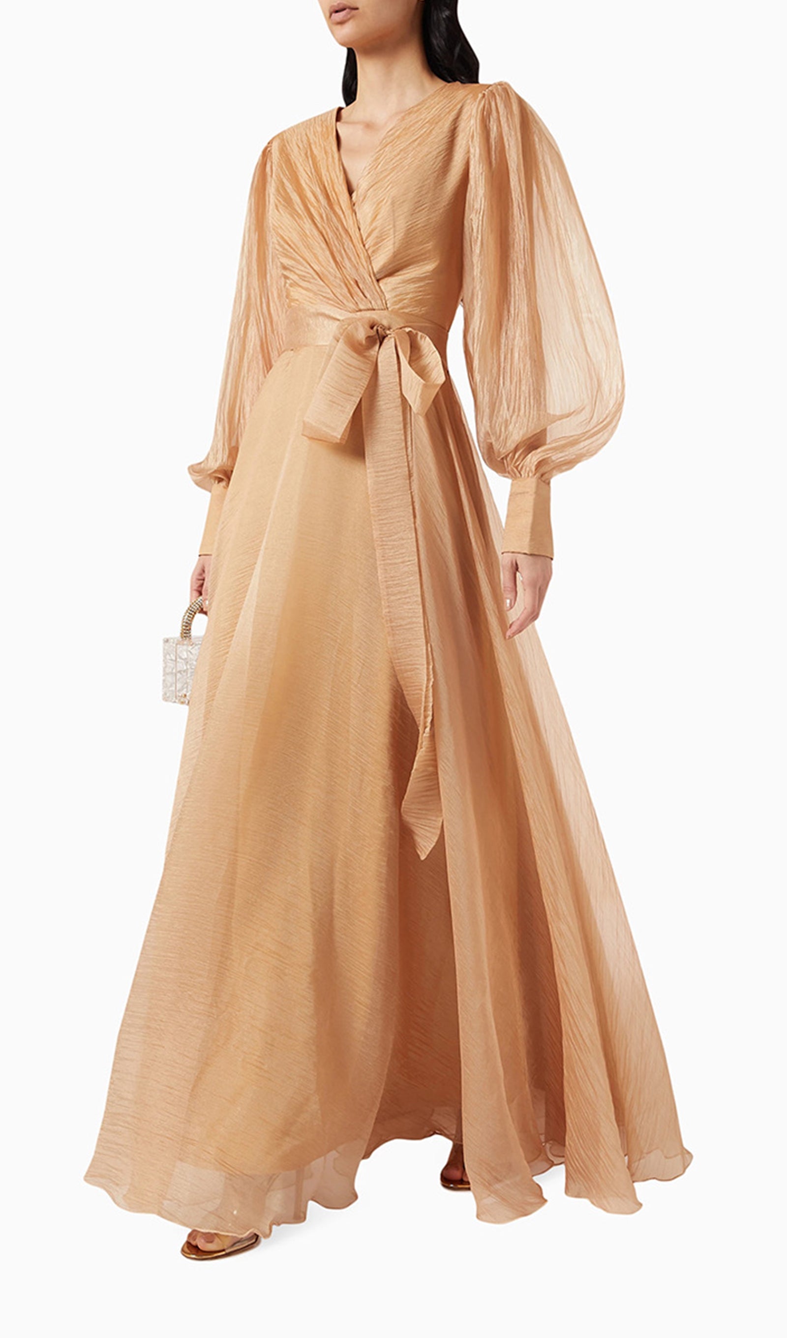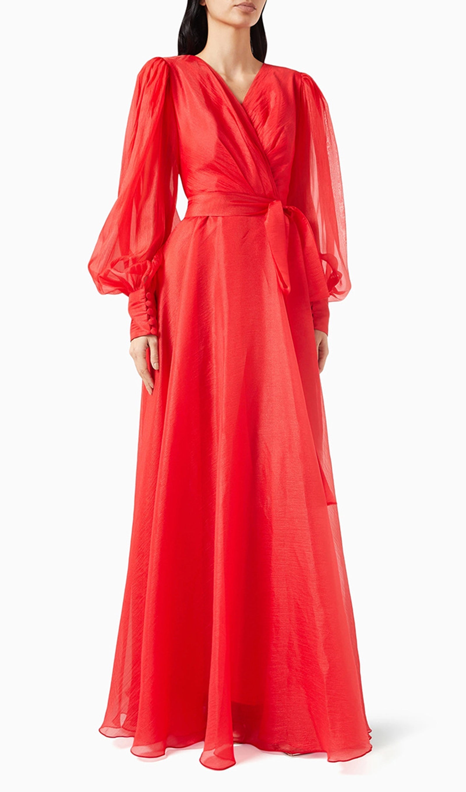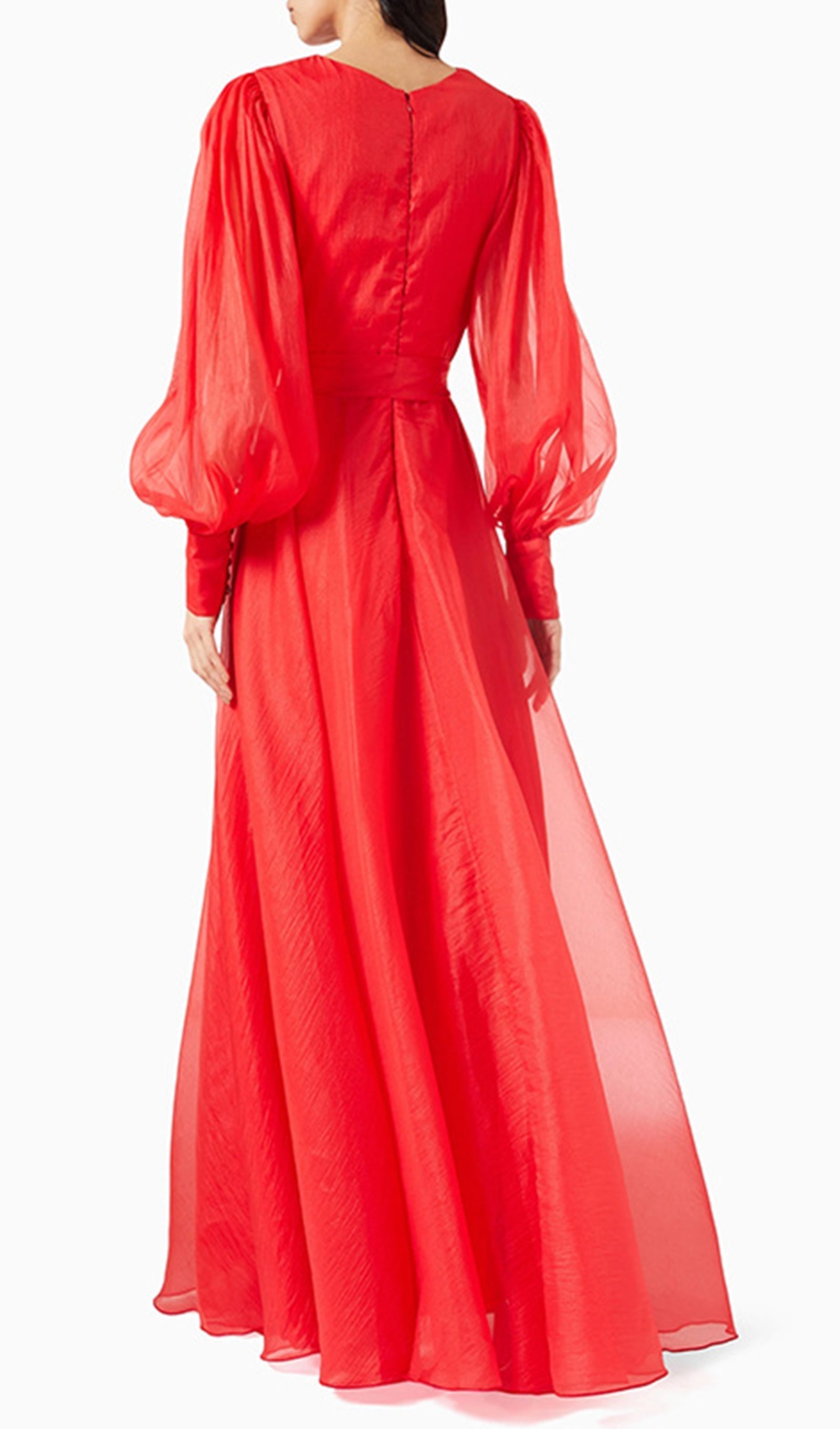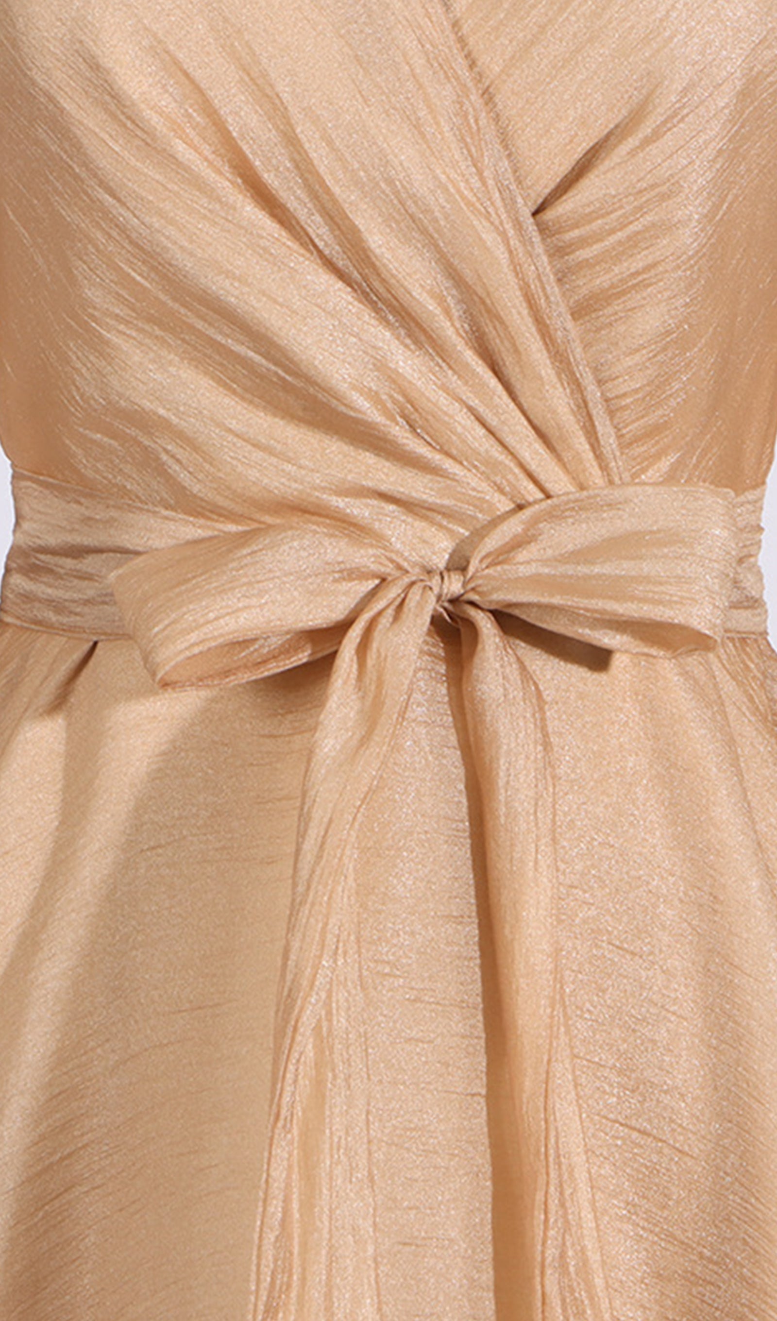 Fener Kollu V Yaka Bel Kemerli Maksi Elbise