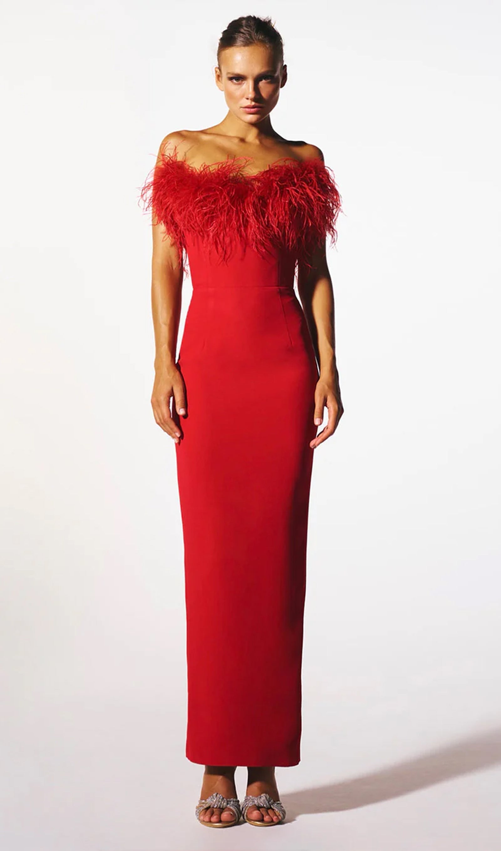 Lena Tüy Süslemeli Midi Elbise Kırmızı