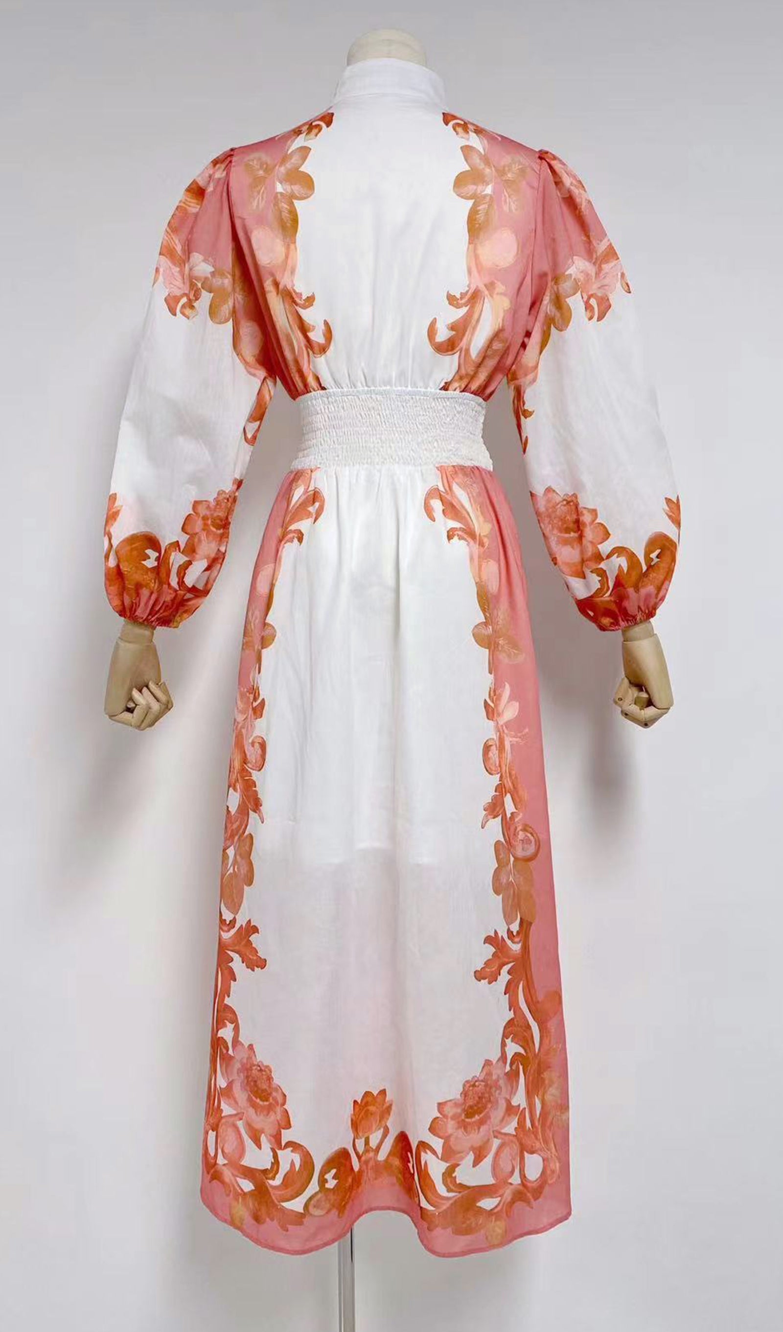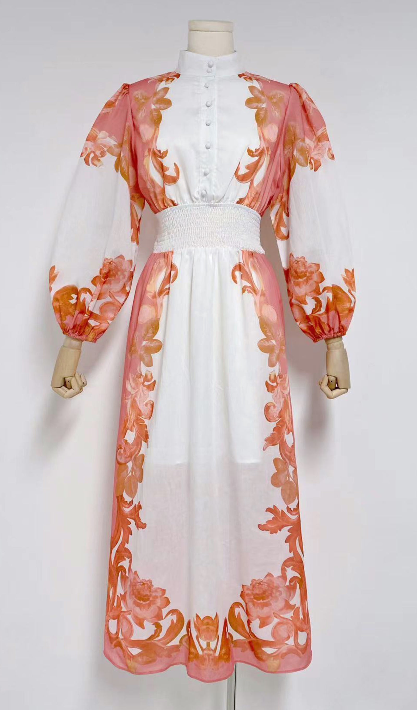 Uzun Kollu Çiçekli Fit ve Flare Maksi Elbise