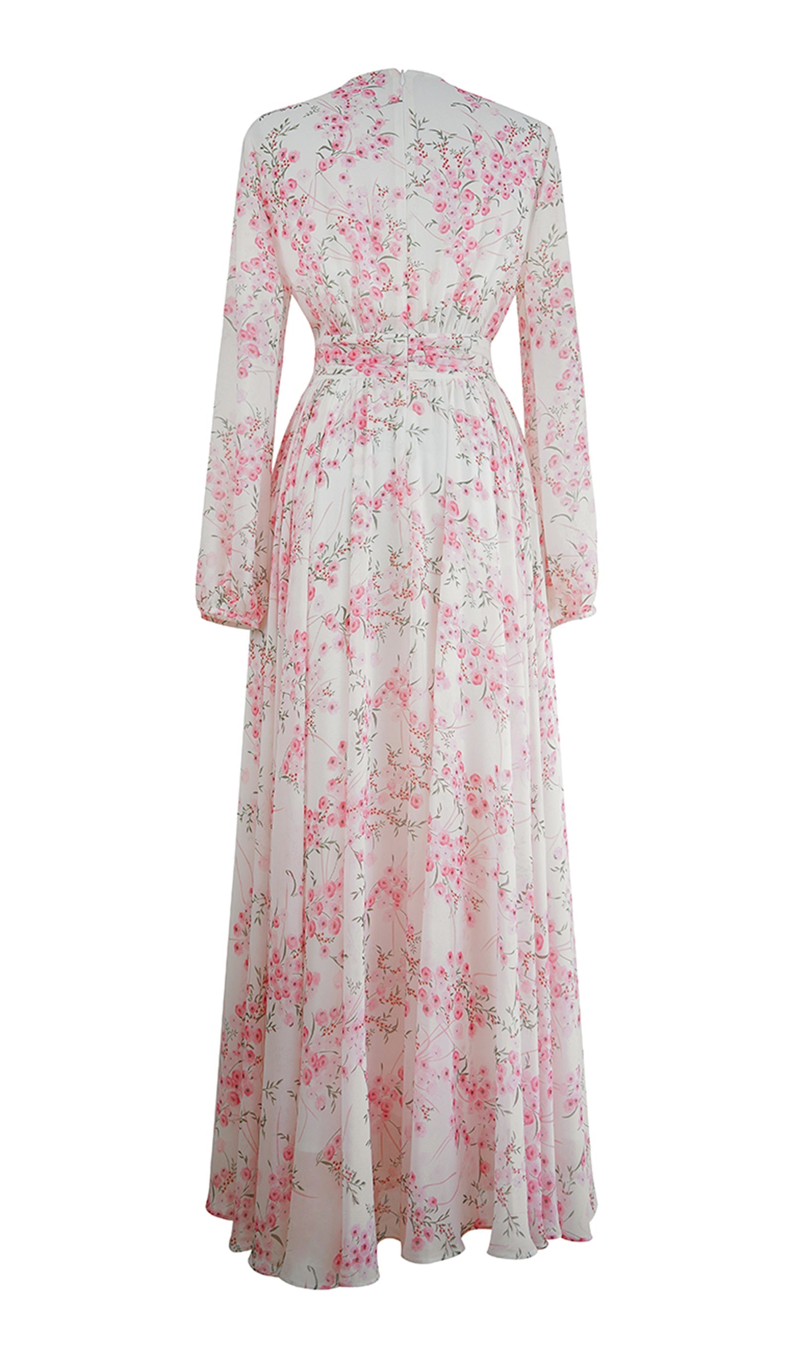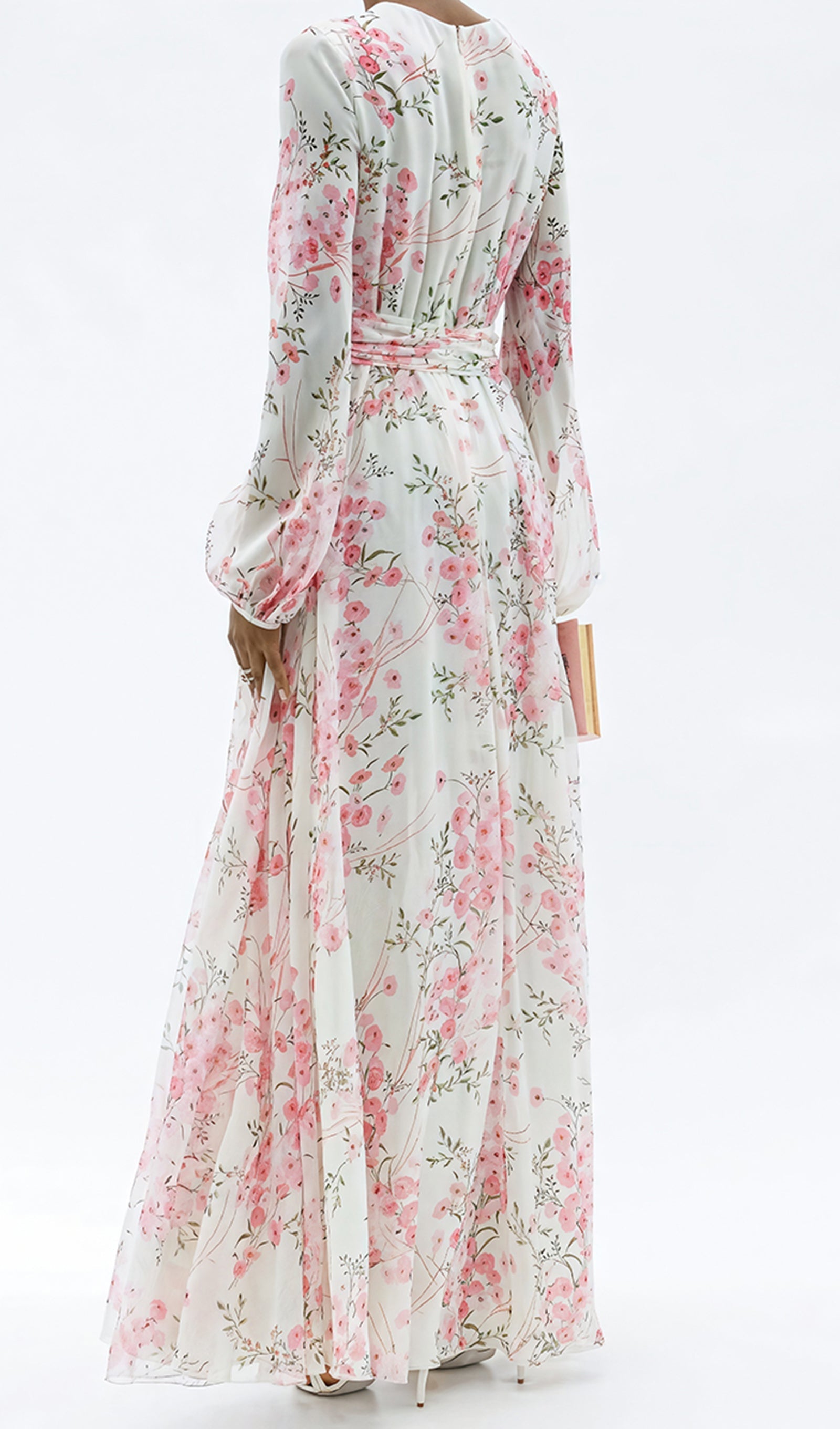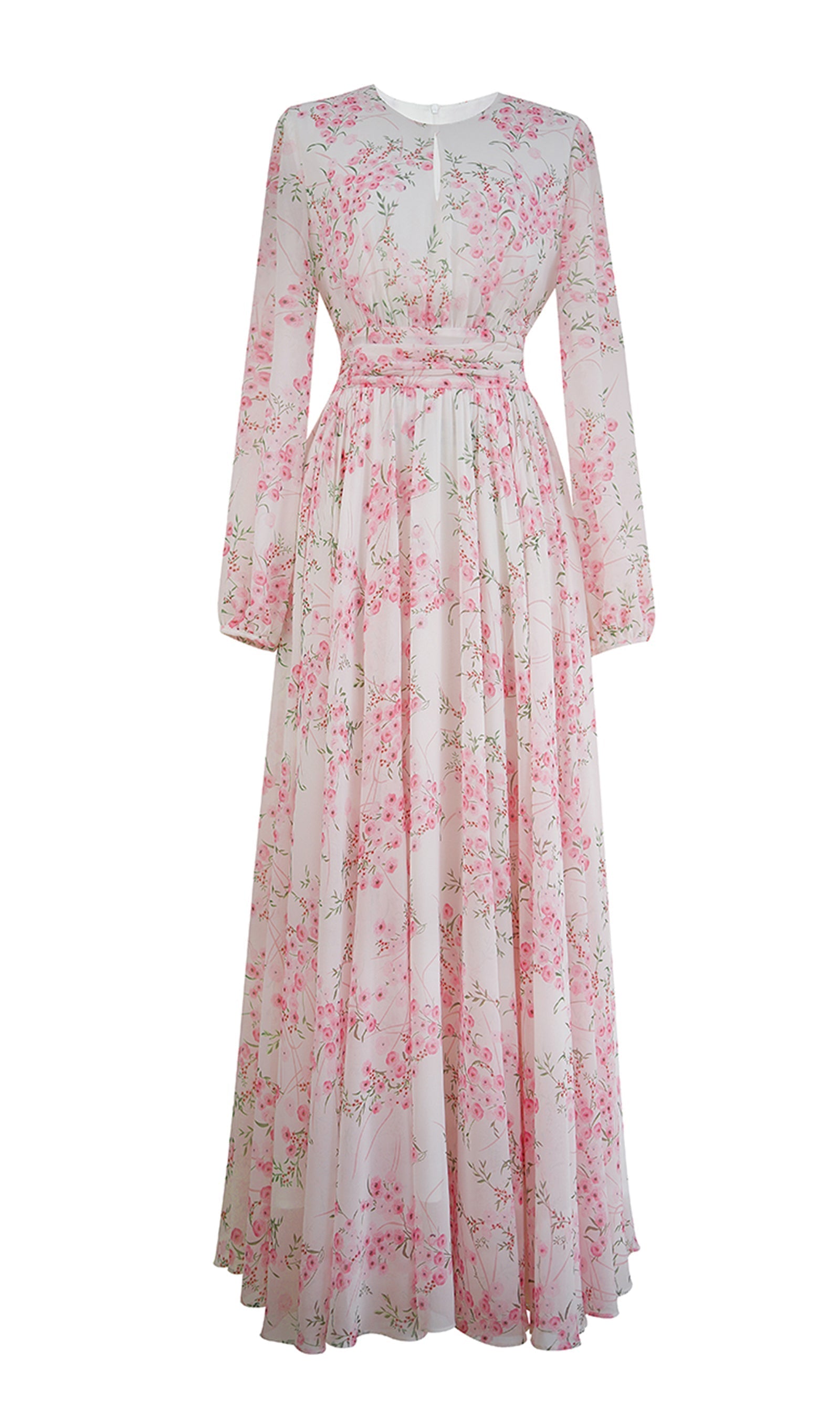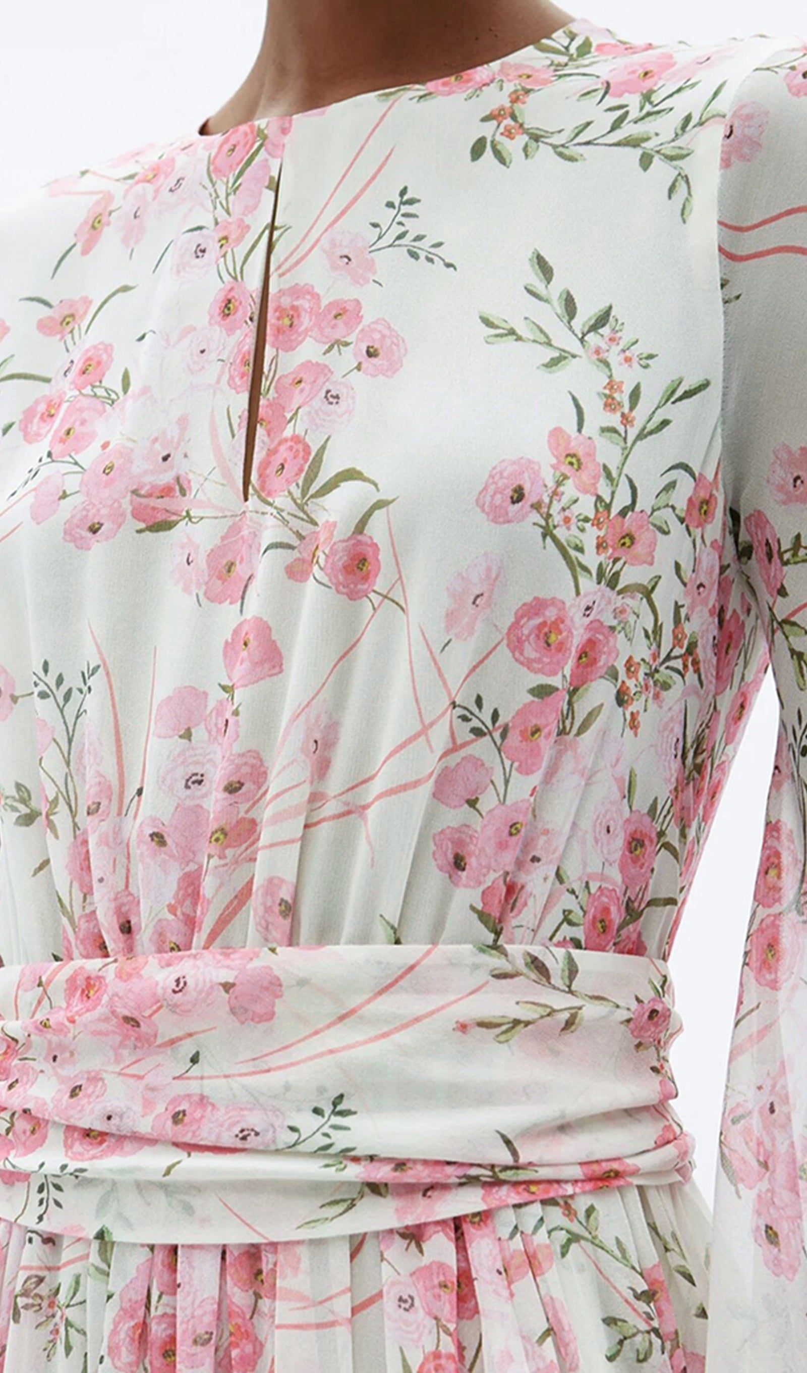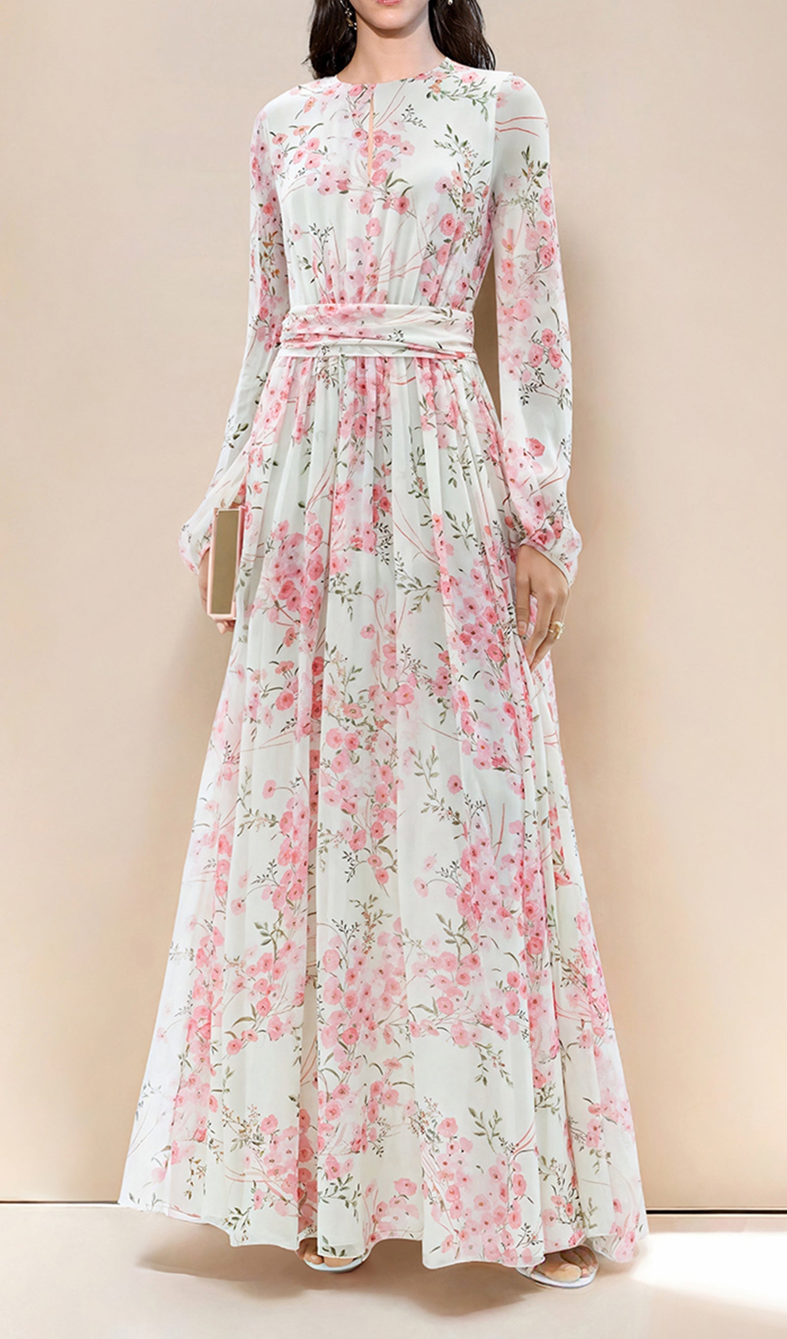 Uzun Kollu Çiçekli Fit ve Flare Maksi Elbise