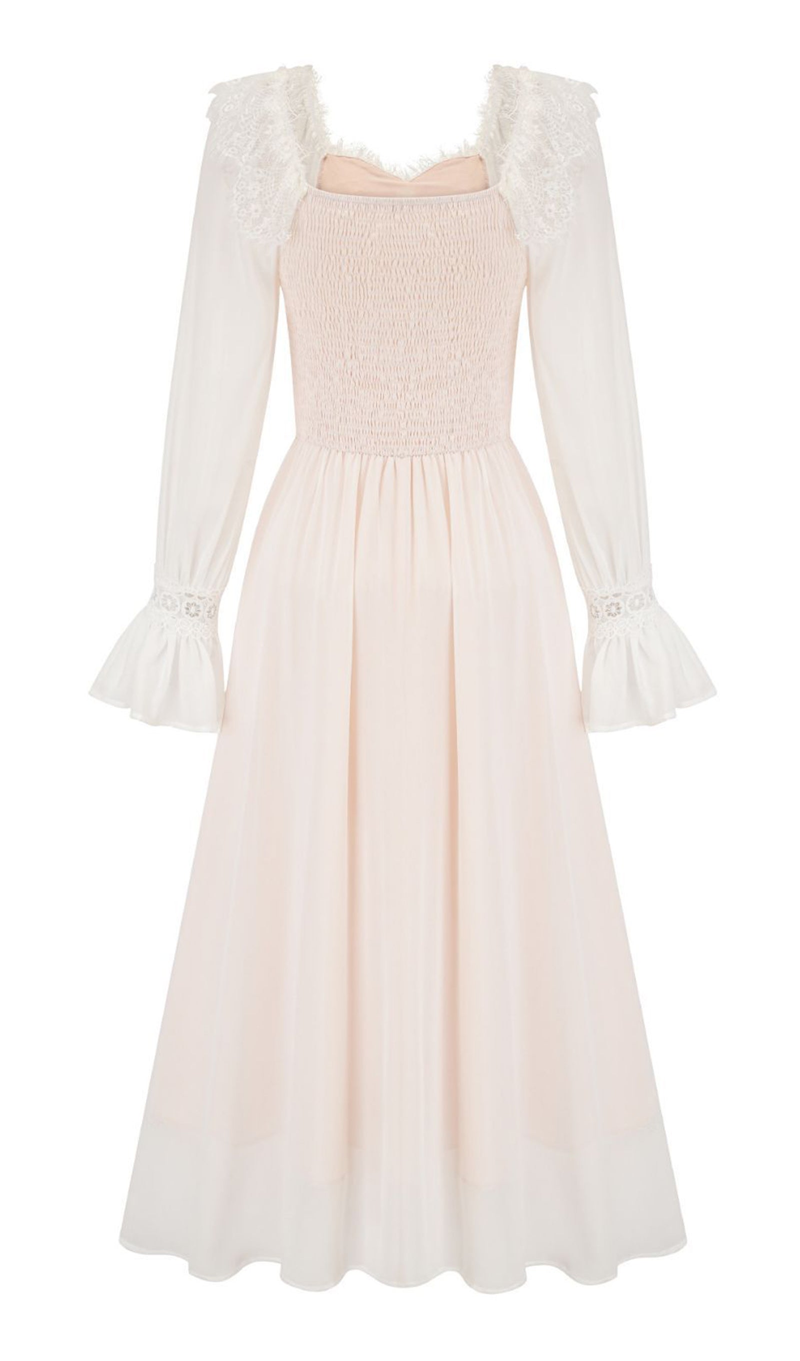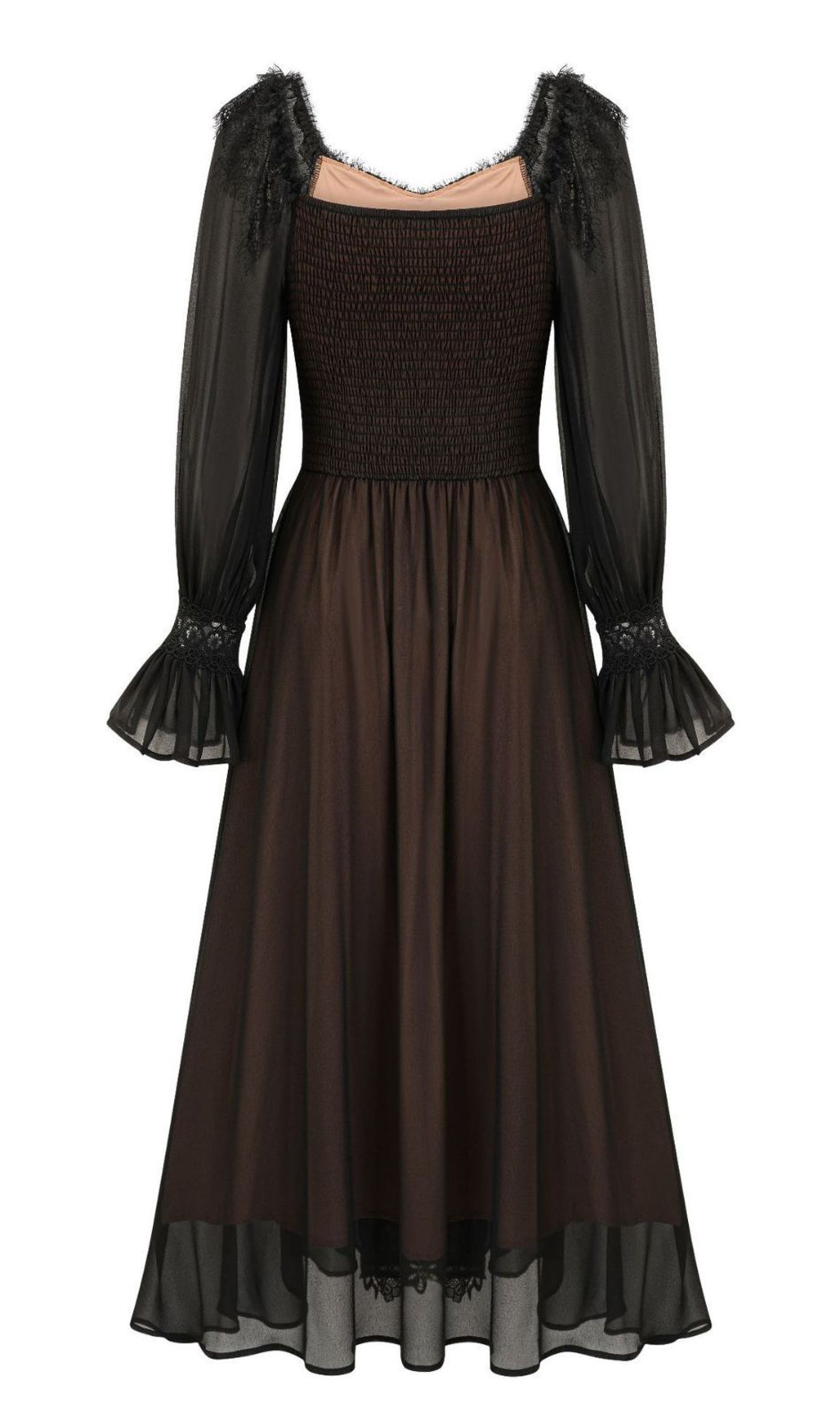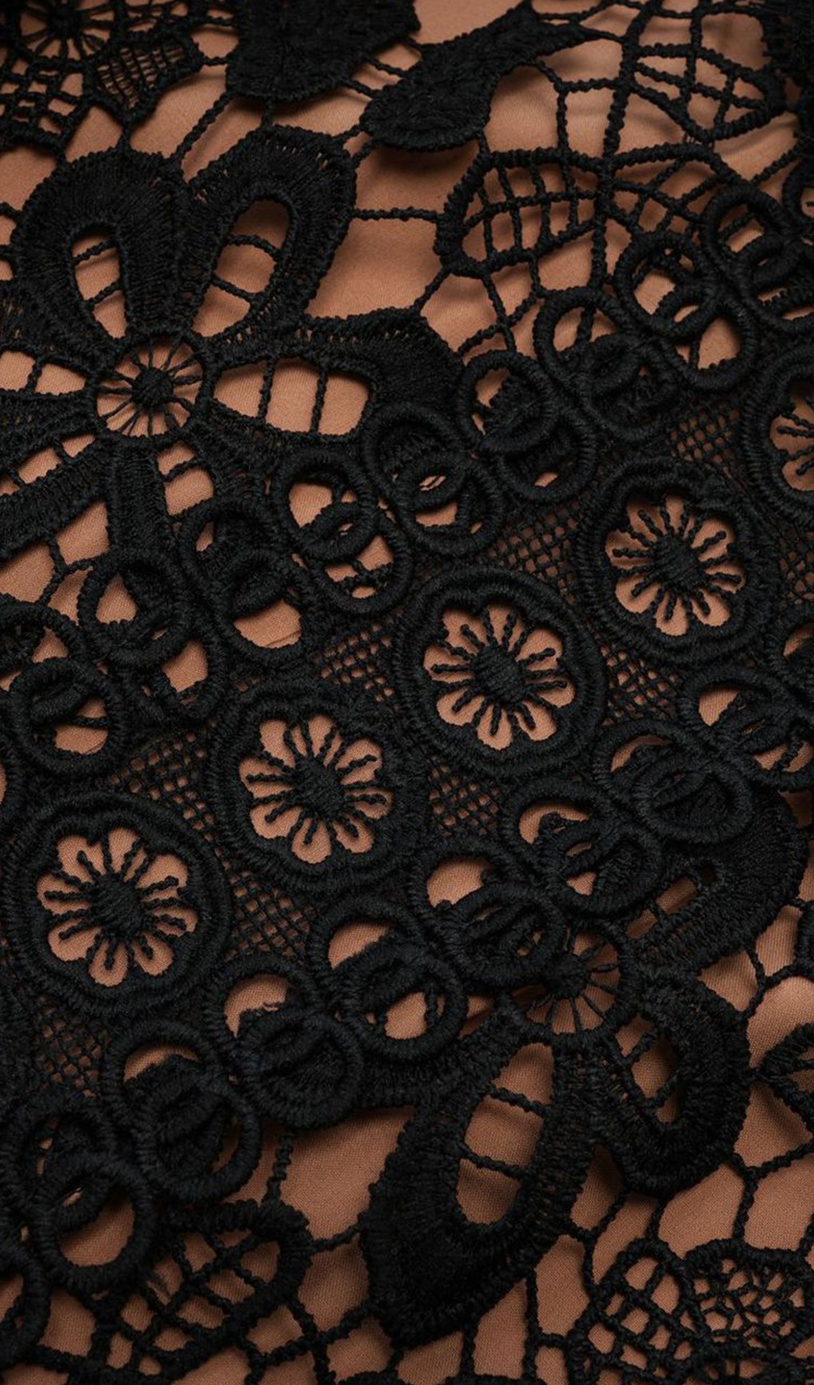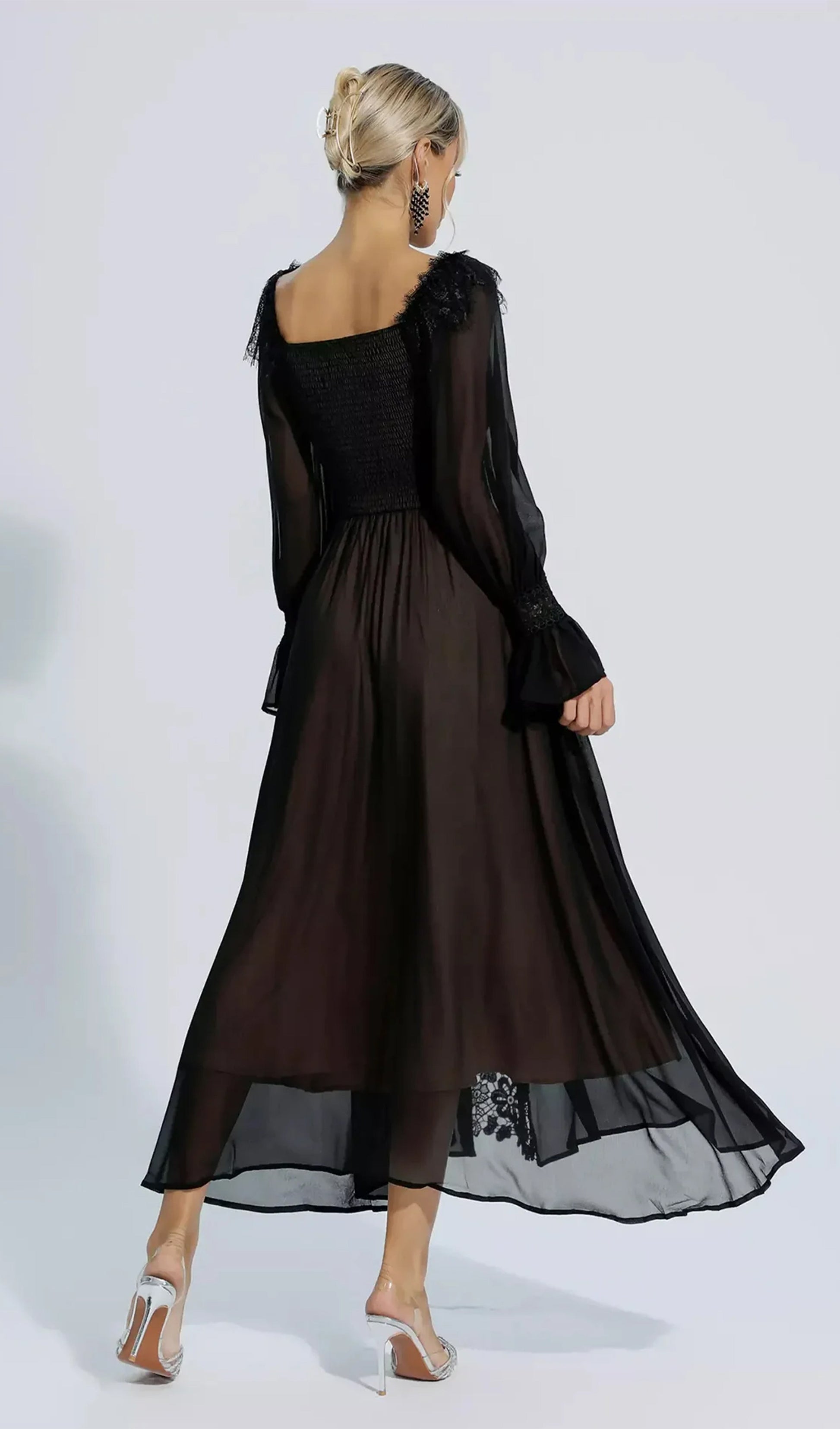 Uzun Kollu Dantel Çiçekli Fit ve Flare Maksi Elbise