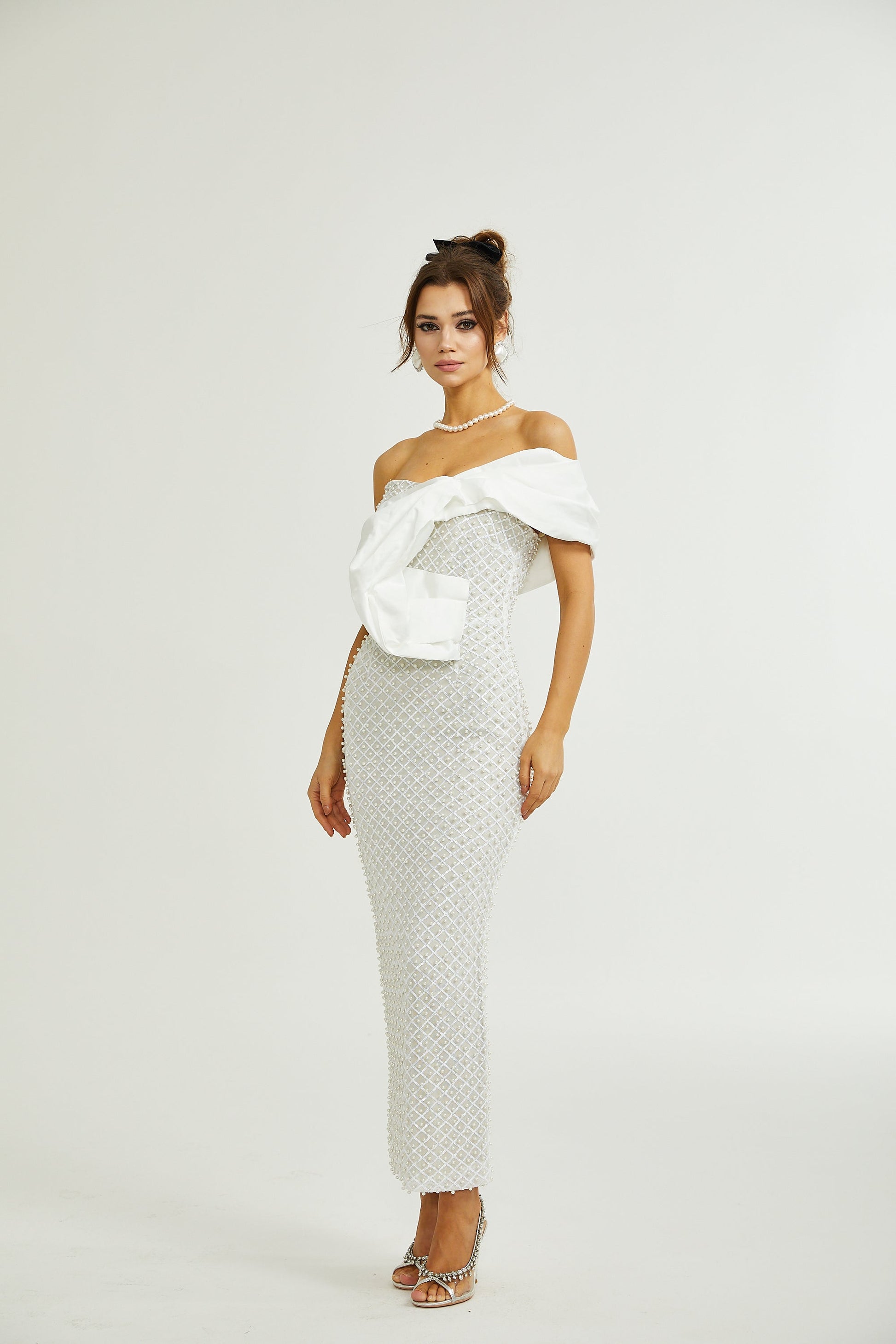 Maura İncili Omuzdan Askılı Maxi Elbise