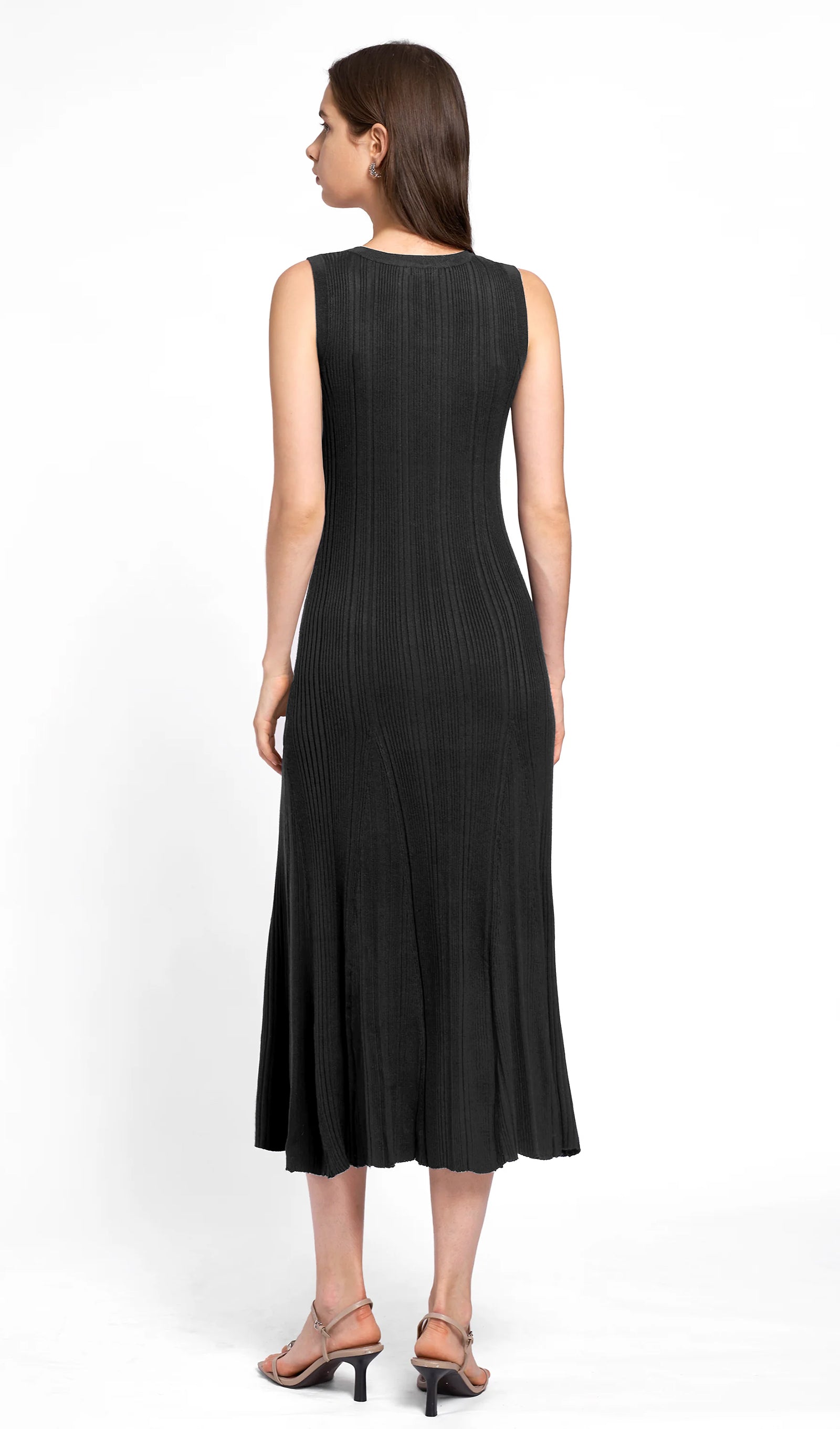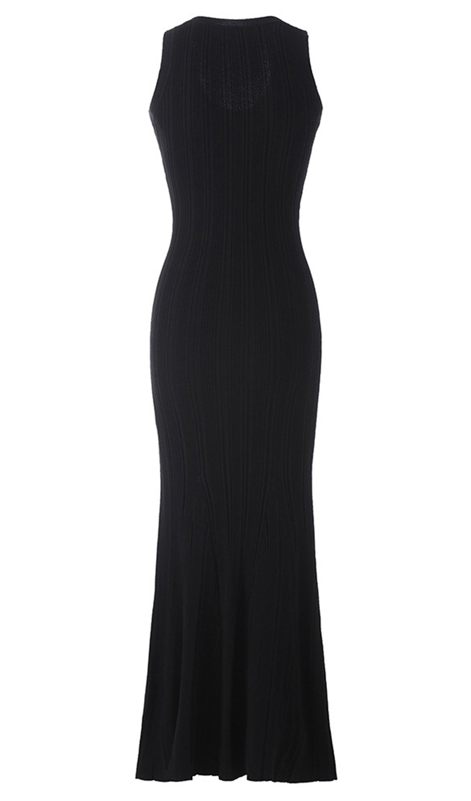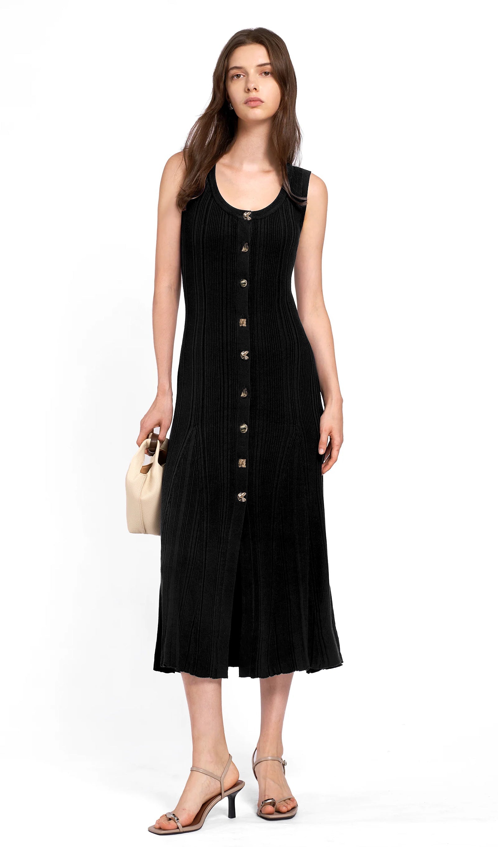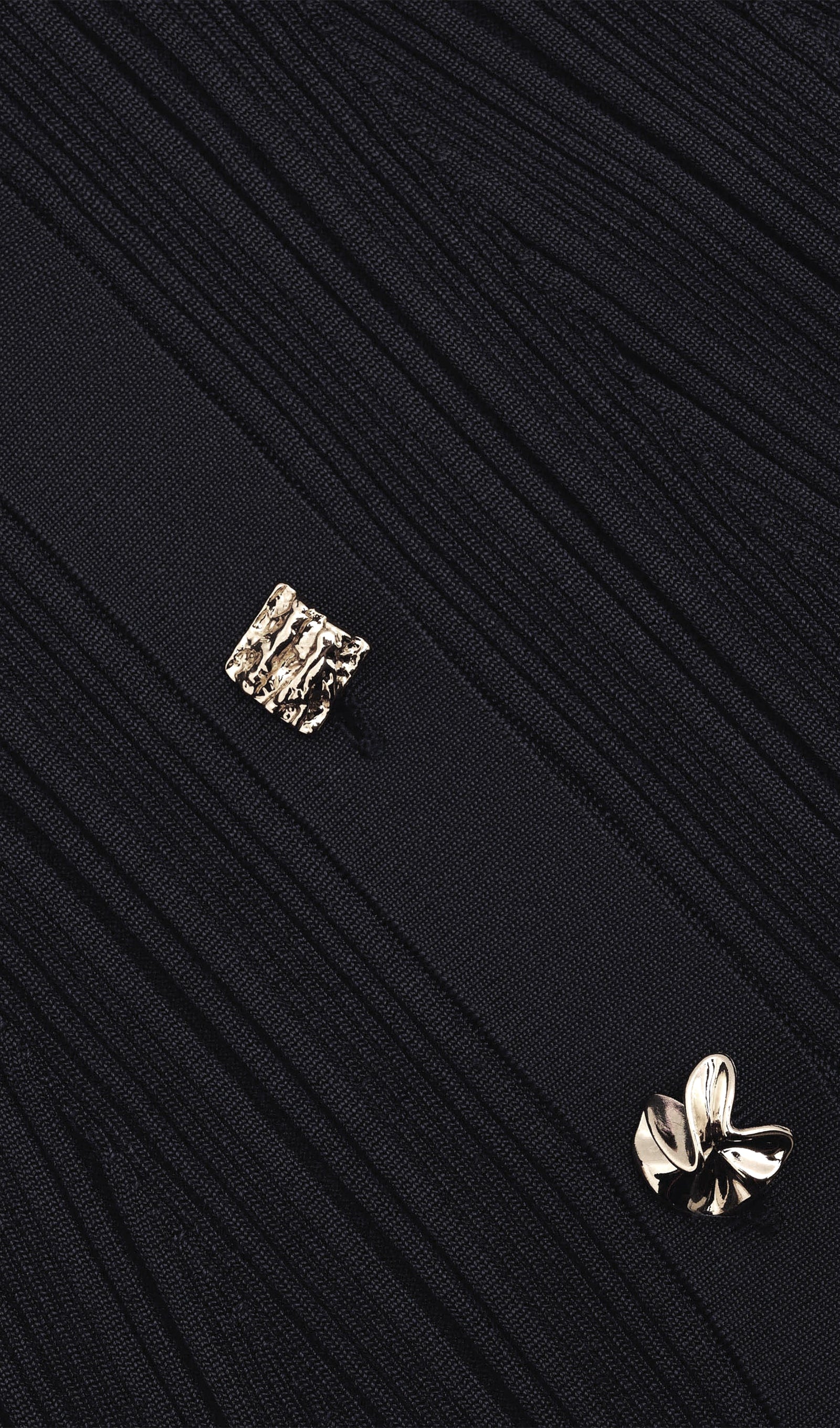Metalik Düğmeli Örgü Midi Elbise Siyah