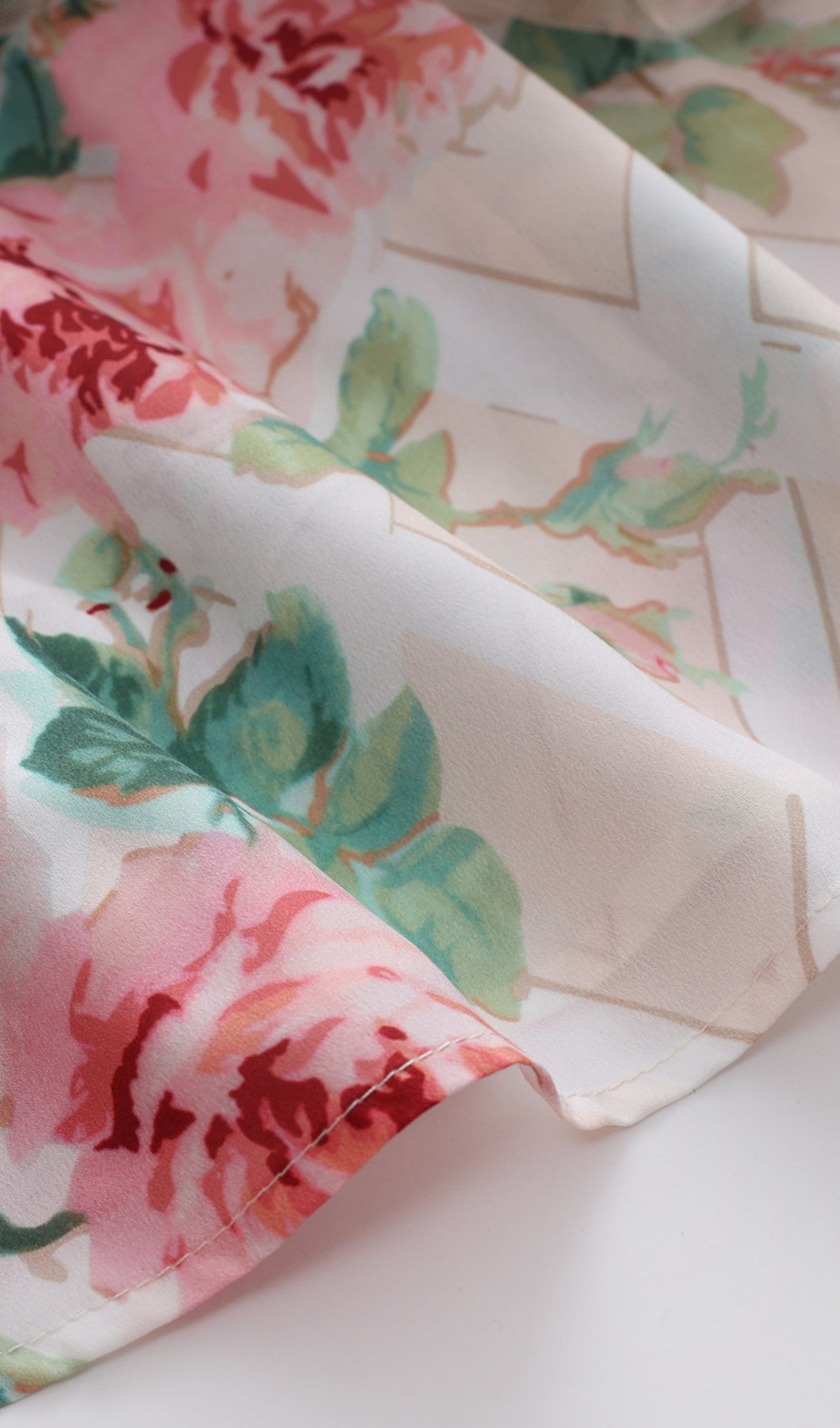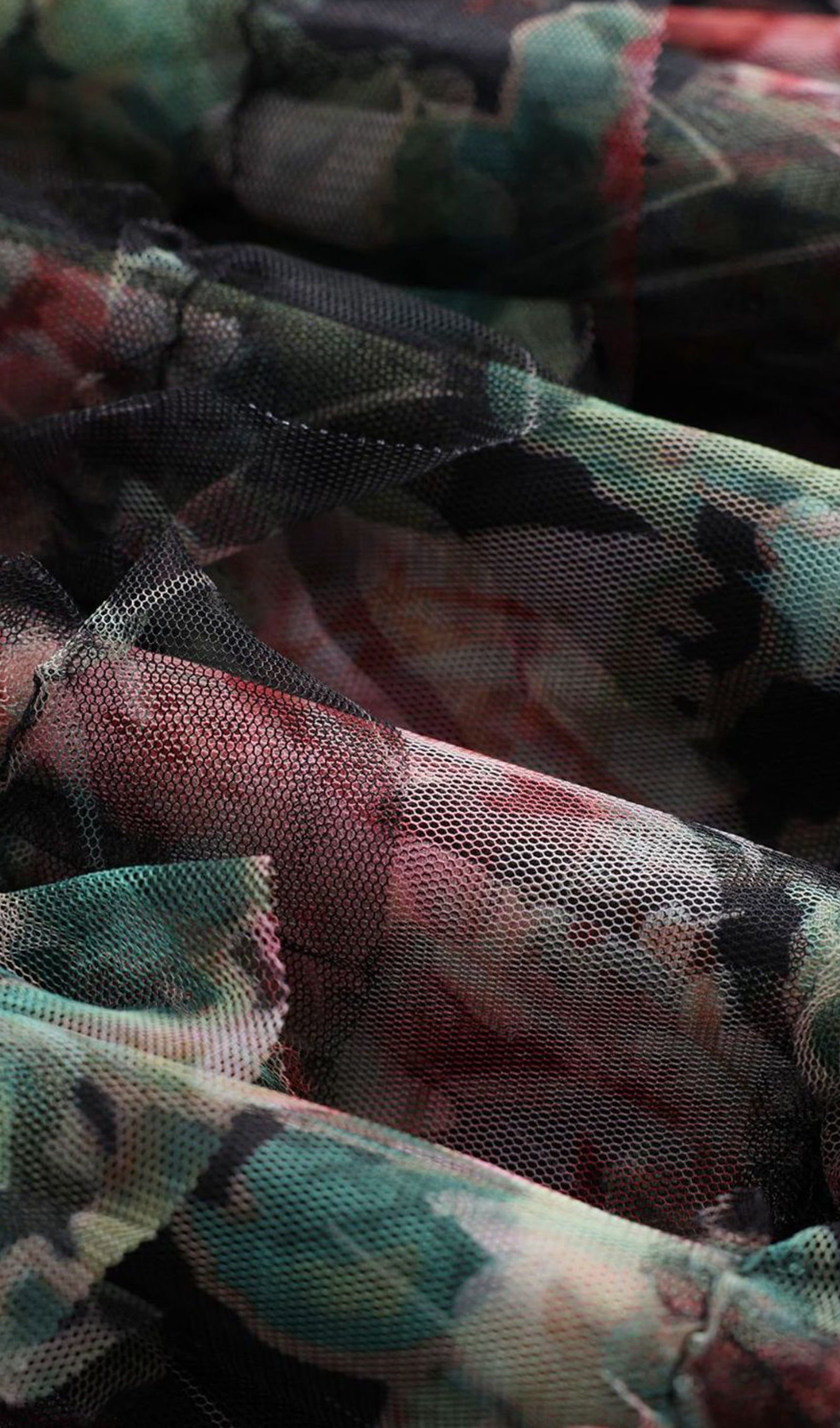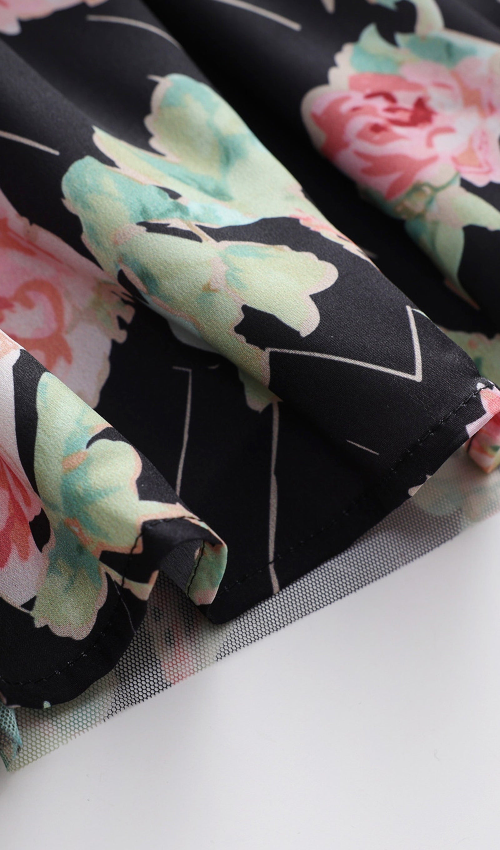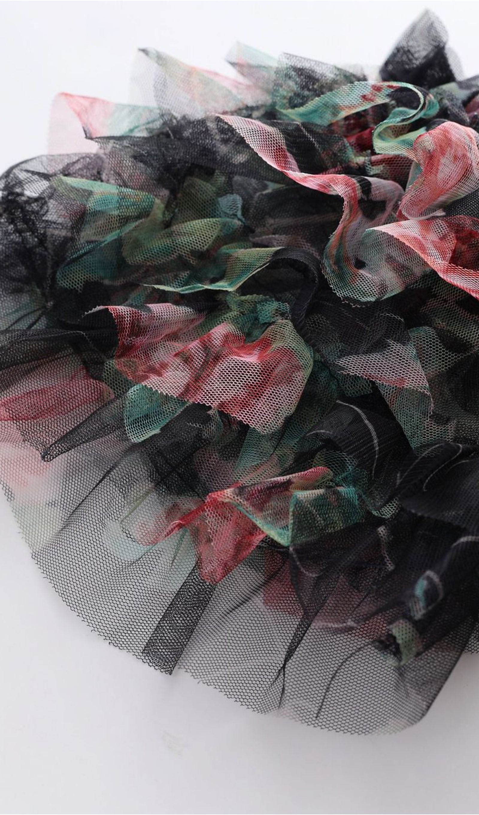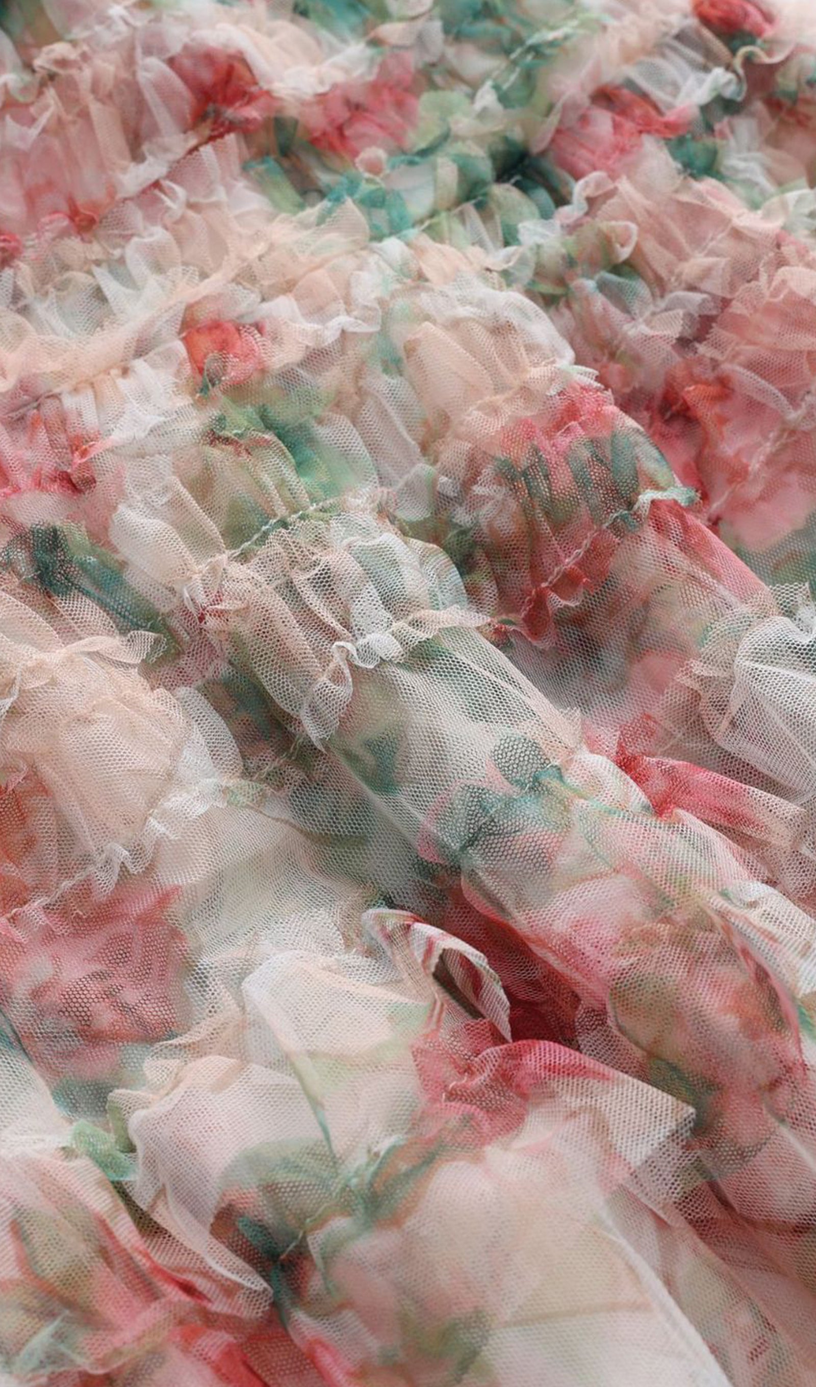 Kapalı Omuz Çiçekli Fırfırlı Örgü Maksi Elbise