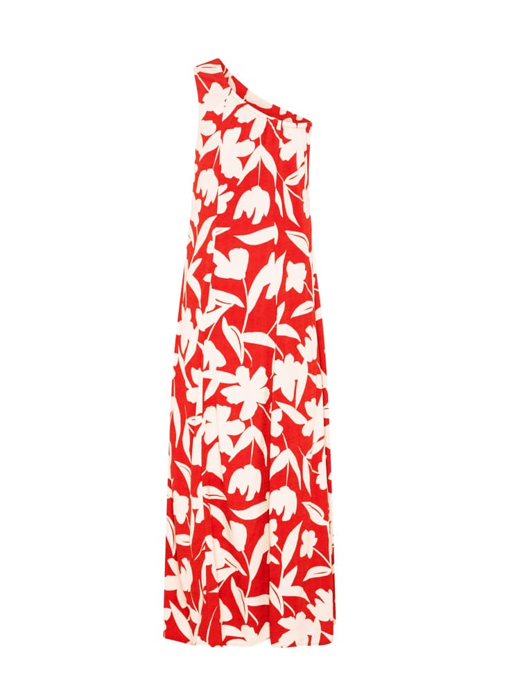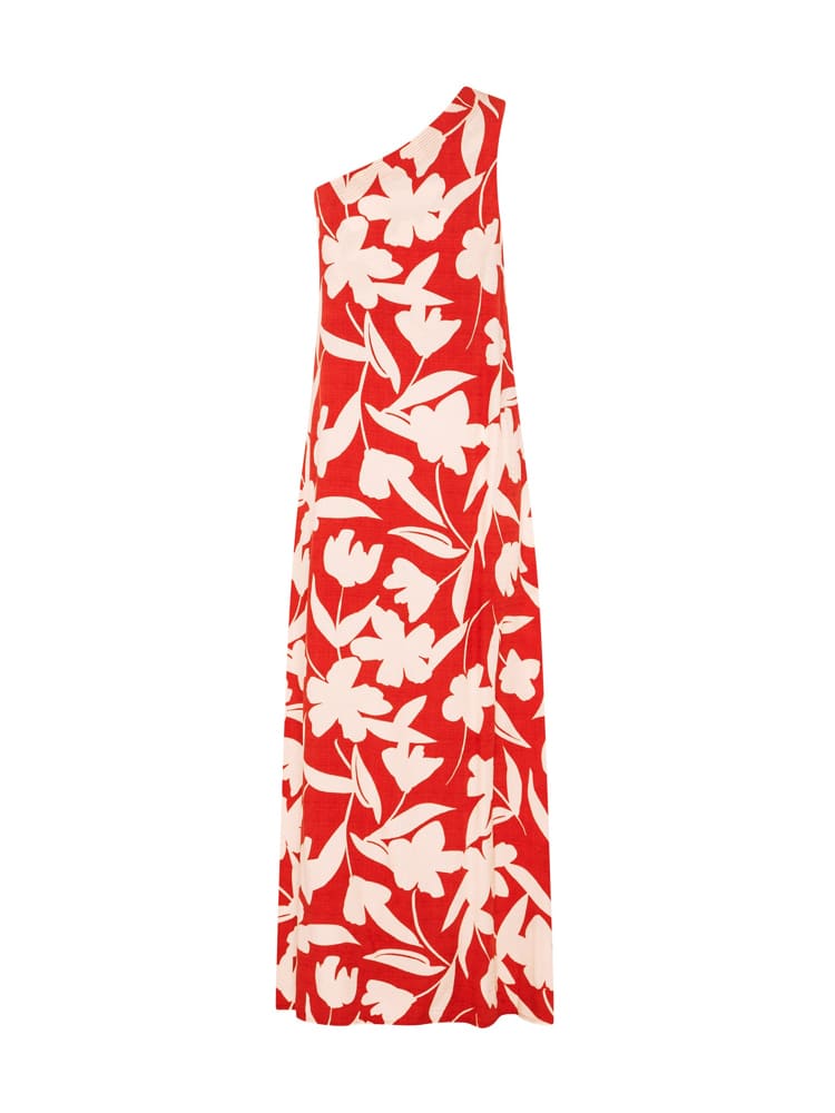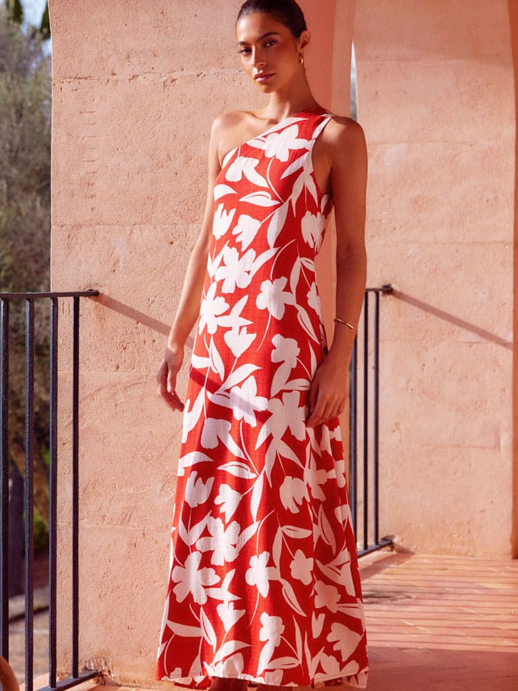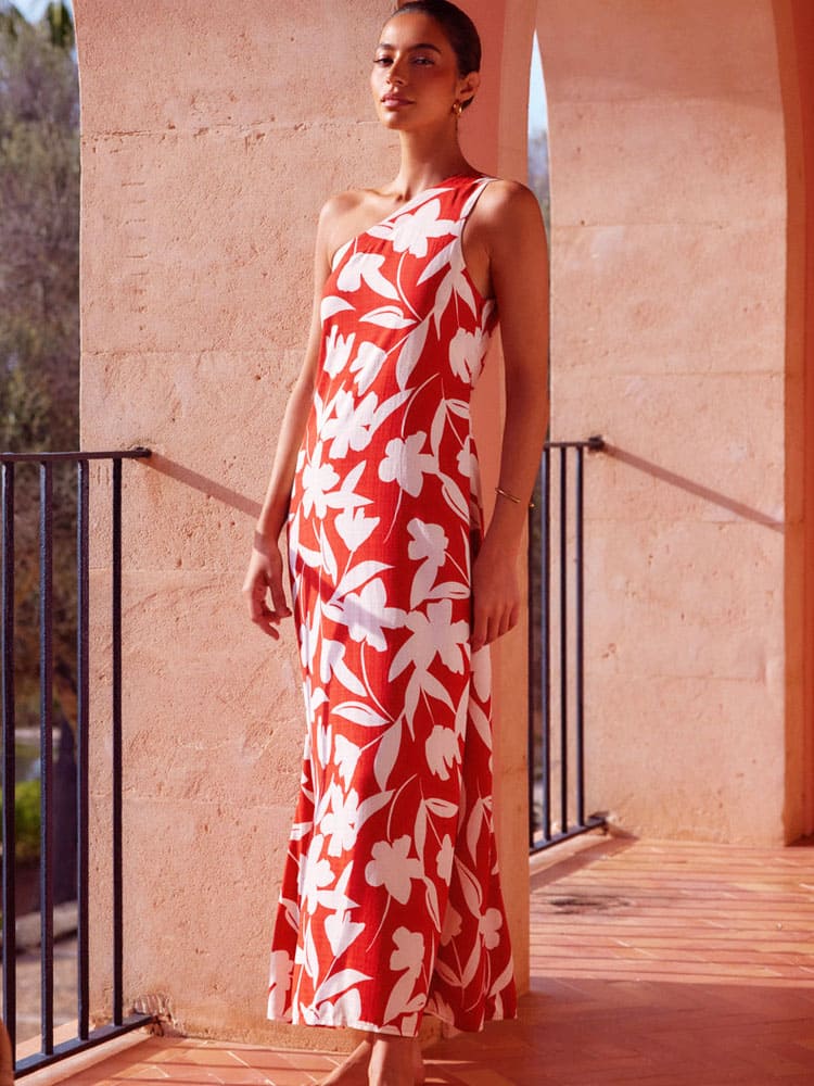 Bu koyu kırmızı renkteki tek omuzlu bağcıklı maksi elbiseyle tüm gözleri üzerinize çekin. Valencia'da cesur ve şık bir ifade yaratan bu maksi elbise, omuzların cazibesini ustaca sergileyen şık tek omuzlu bir desenle birlikte büyüleyici bir görünüme sahiptir. Topuklu ayakkabılar ve tamamlayıcı altın rengi detaylarla eşleştirerek genel görünümü yükseltin.