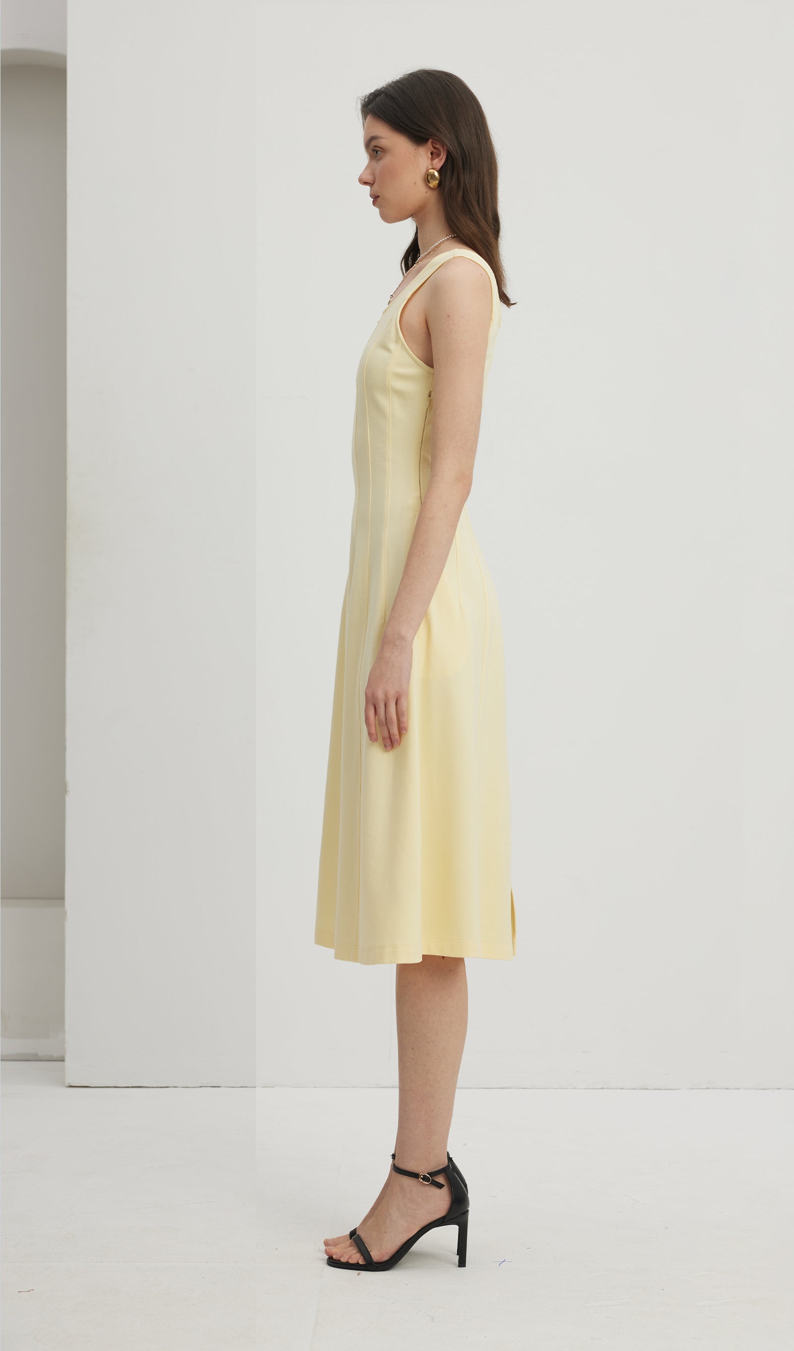 Sarı renkteki bu Pileli Bölmeli Midi Elbise, gardırobunuza mükemmel bir ektir. Pileli tasarımı ve midi boyuyla zamansız ve zarif bir stil sunar. Yandaki yırtmaç, modern bir dokunuş katarak elbiseyi her durum için çok yönlü hale getirir. Bu güzel elbise ile görünümünüzü yükseltin.