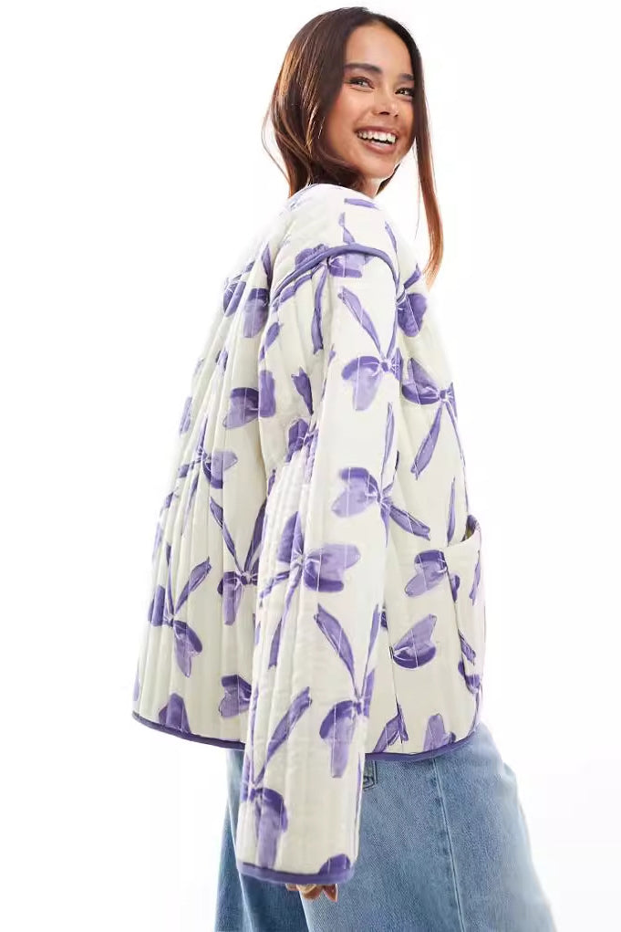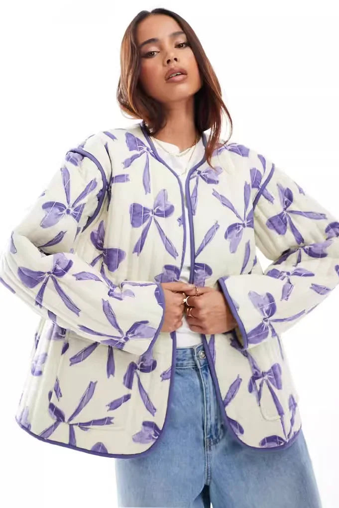 Fiyonklu Desenli Kapitone Ceket