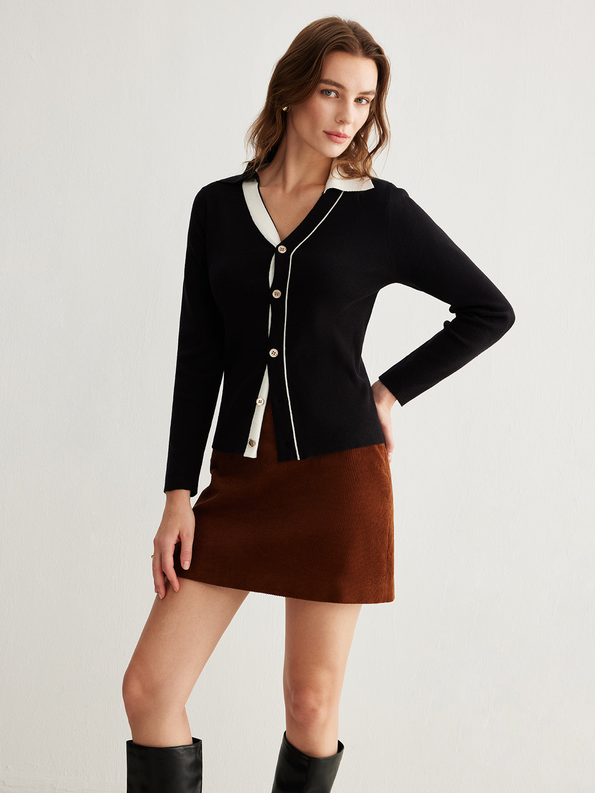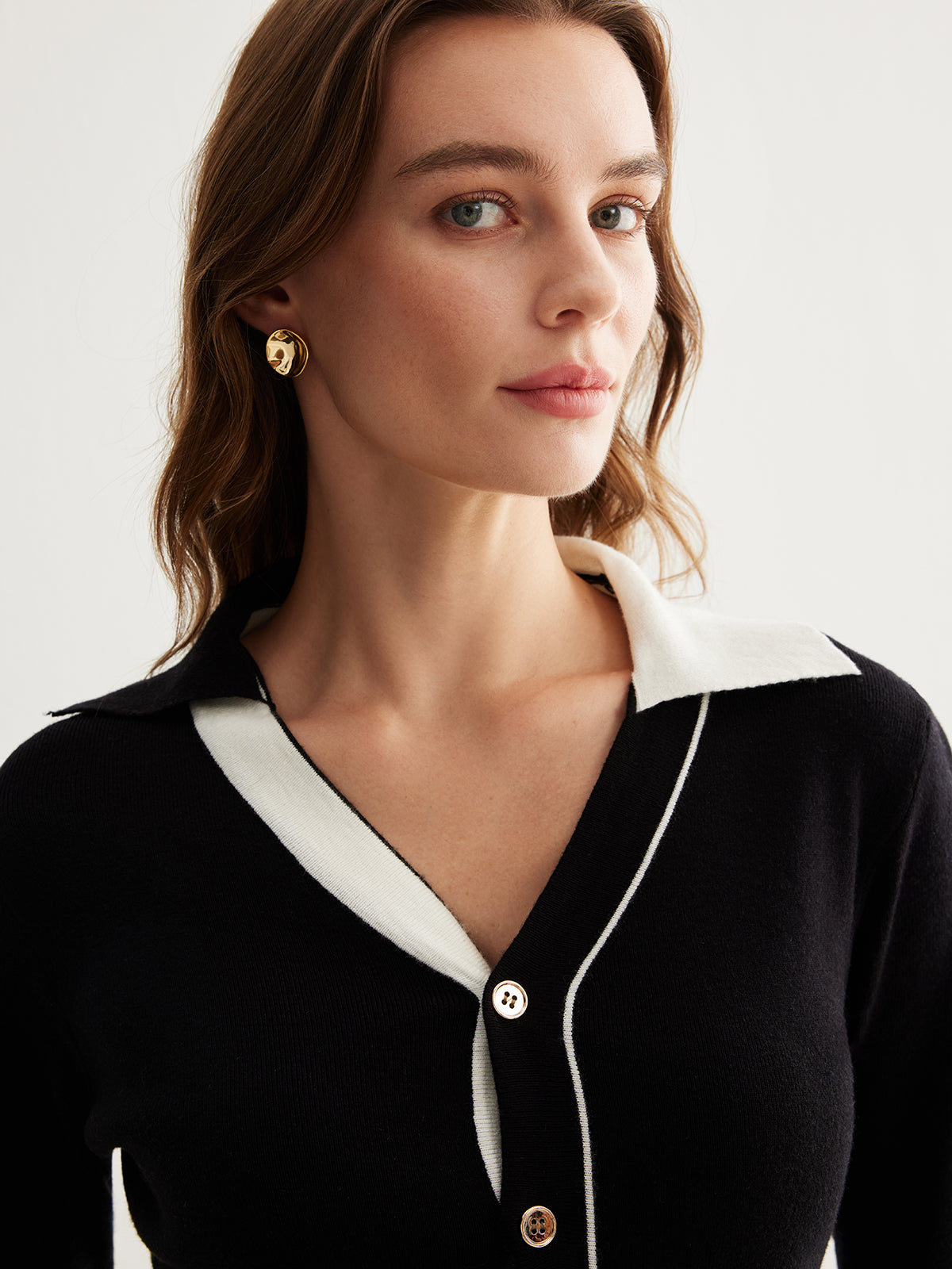 Viviana Renkli Blok Yaka Düğmeli Hırka