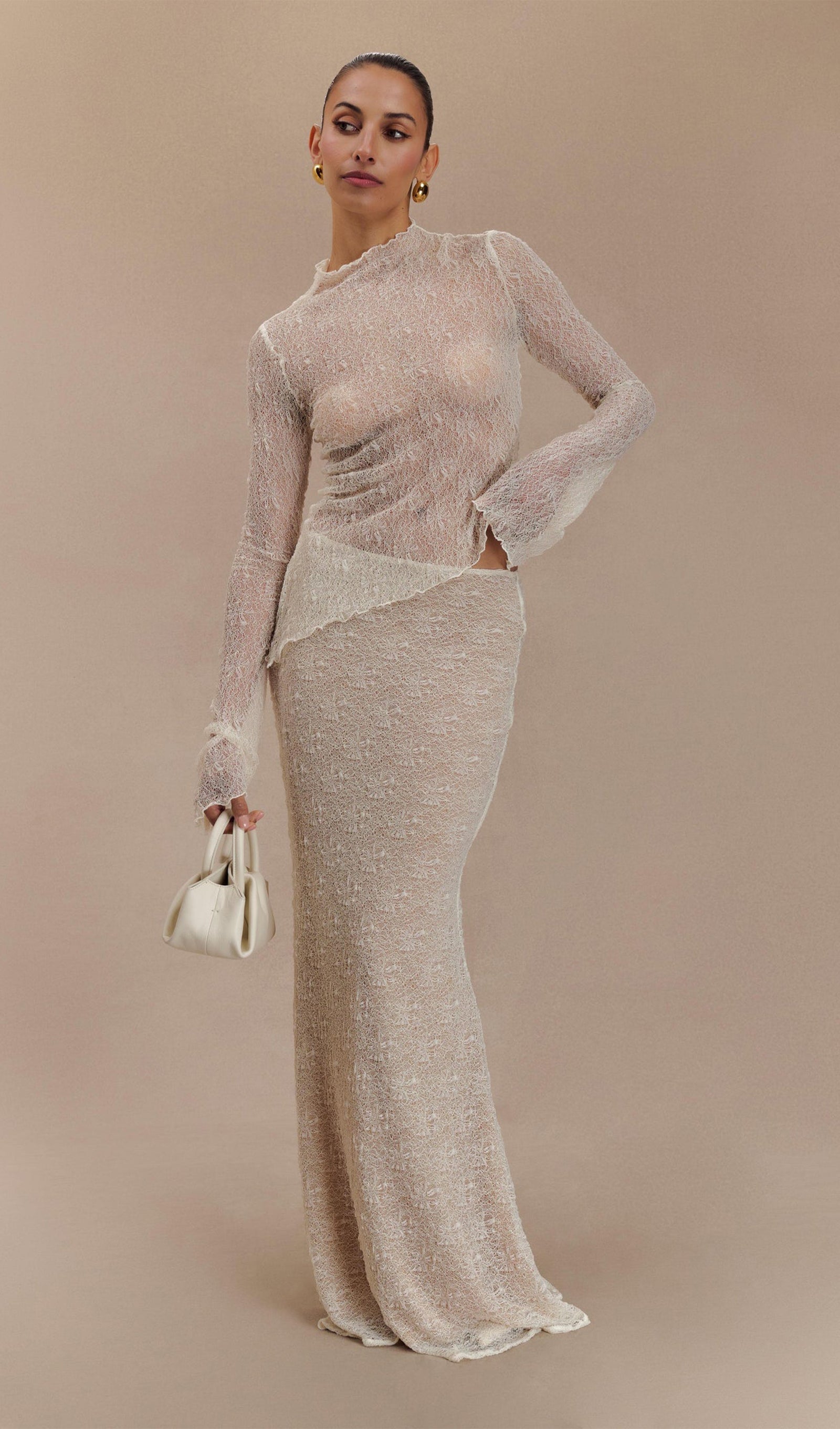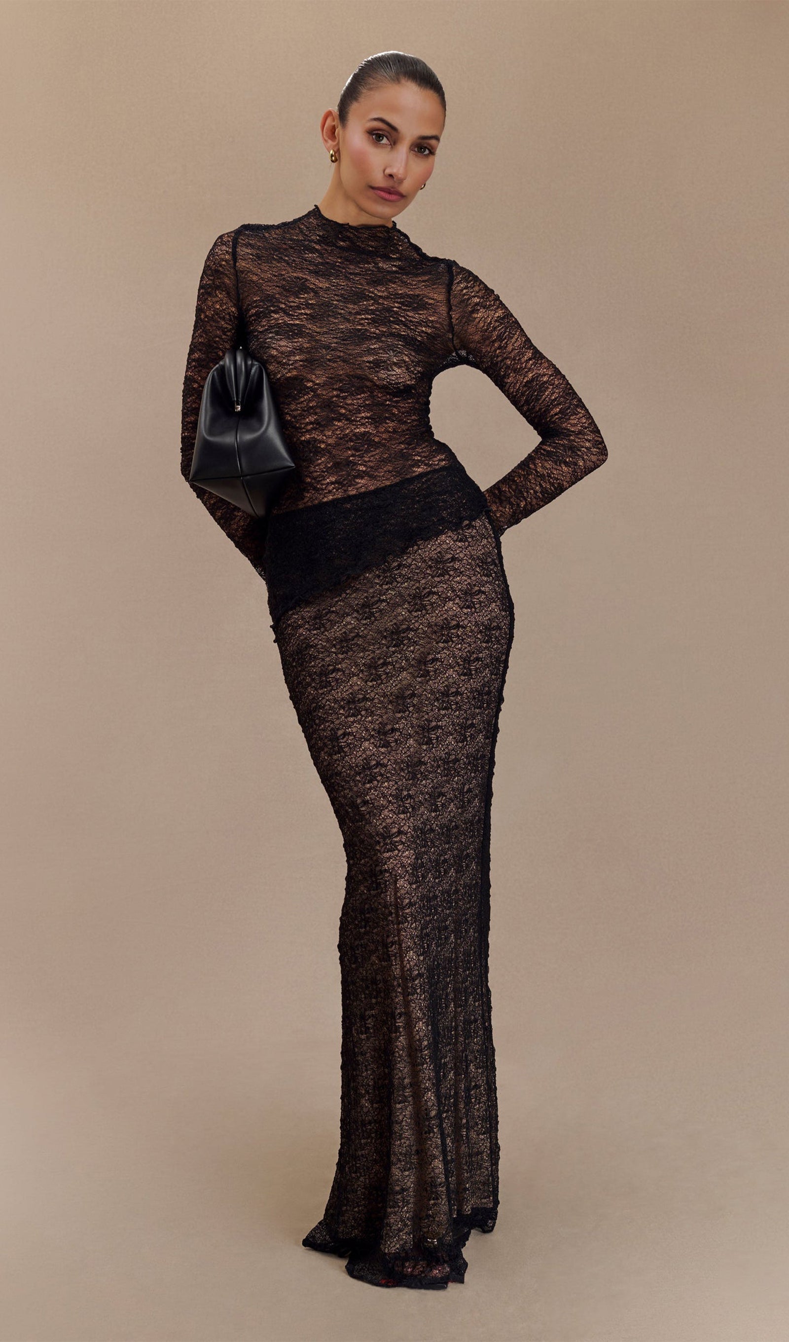 Şeffaf Dantel Maksi Etek, her durum için mükemmel olan zarafet ve cazibenin özüdür. Orta bele sahip bu etek, rahatlık sağlarken siluetinizi güzelleştirir. Transparan dokulu kumaştan üretilen etek, bacaklarınızı güzelce sergileyen romantik bir dokunuş katar. Maksi uzunluğu dramatik bir hava katarken balık kuyruğu etek şekli her adımda zarif bir hareket yaratır. Daha fazla konfor için yumuşak file ile astarlanan Robyn etek, çarpıcı ve uyumlu bir görünüm için vücuda oturan bir üst veya Riley Sheer Lace Uzun Kollu Üst ile zahmetsizce eşleşir.