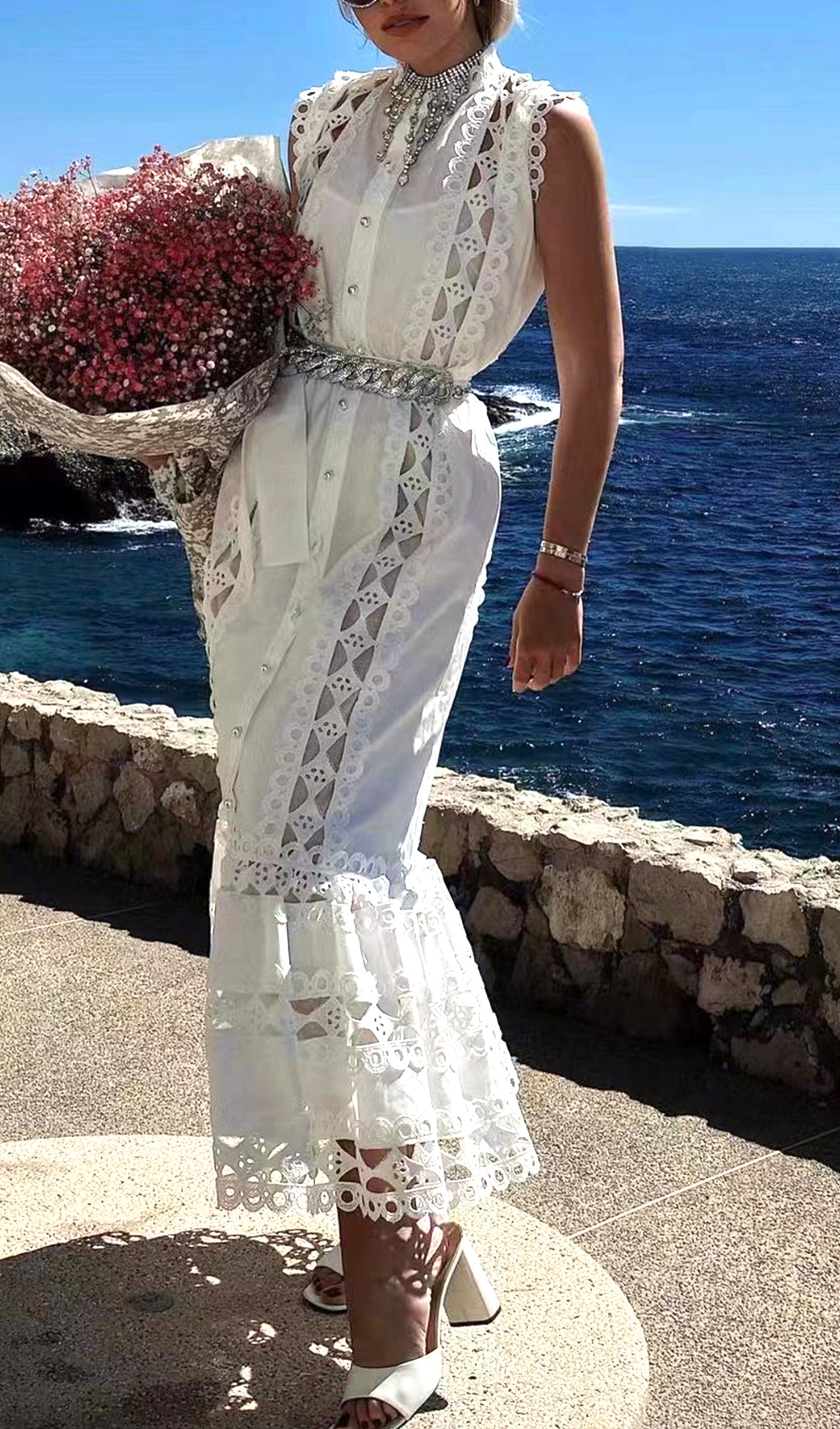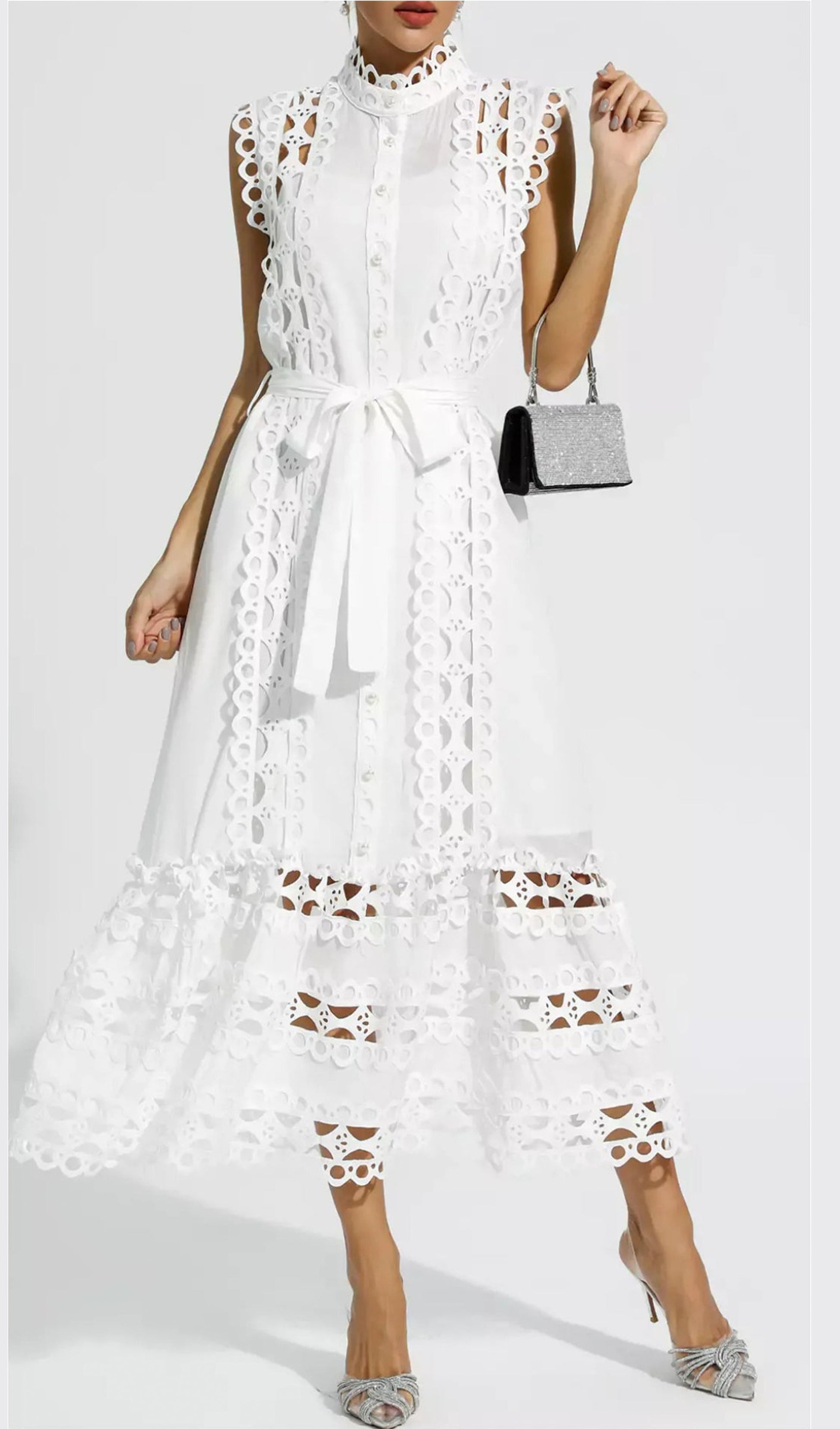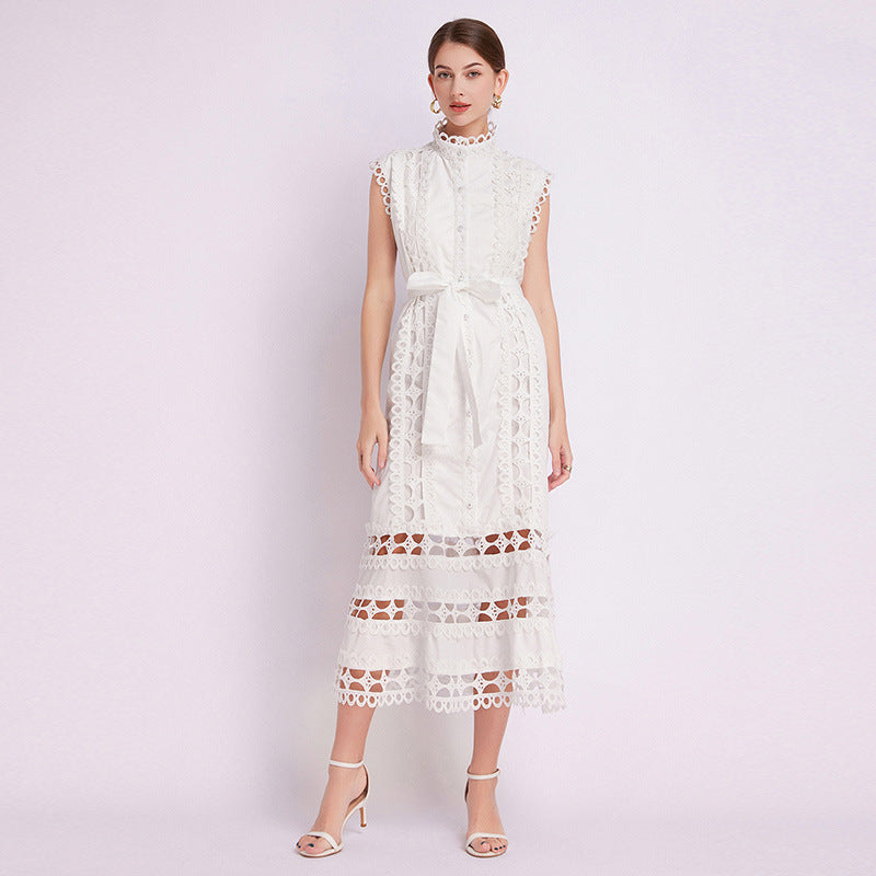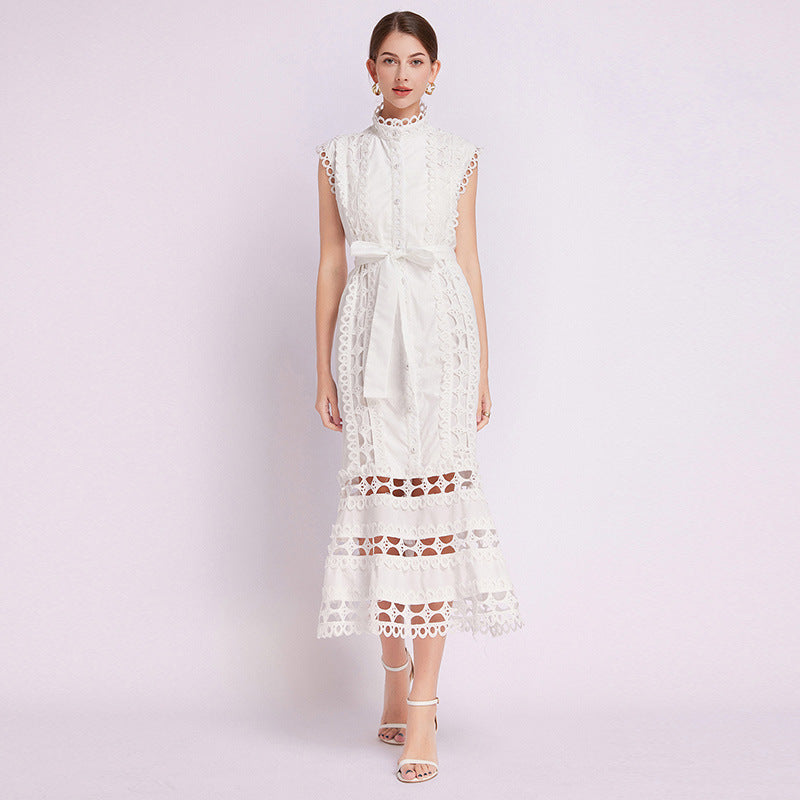 Kolsuz Hollow Out Kroşe Maksi Elbise