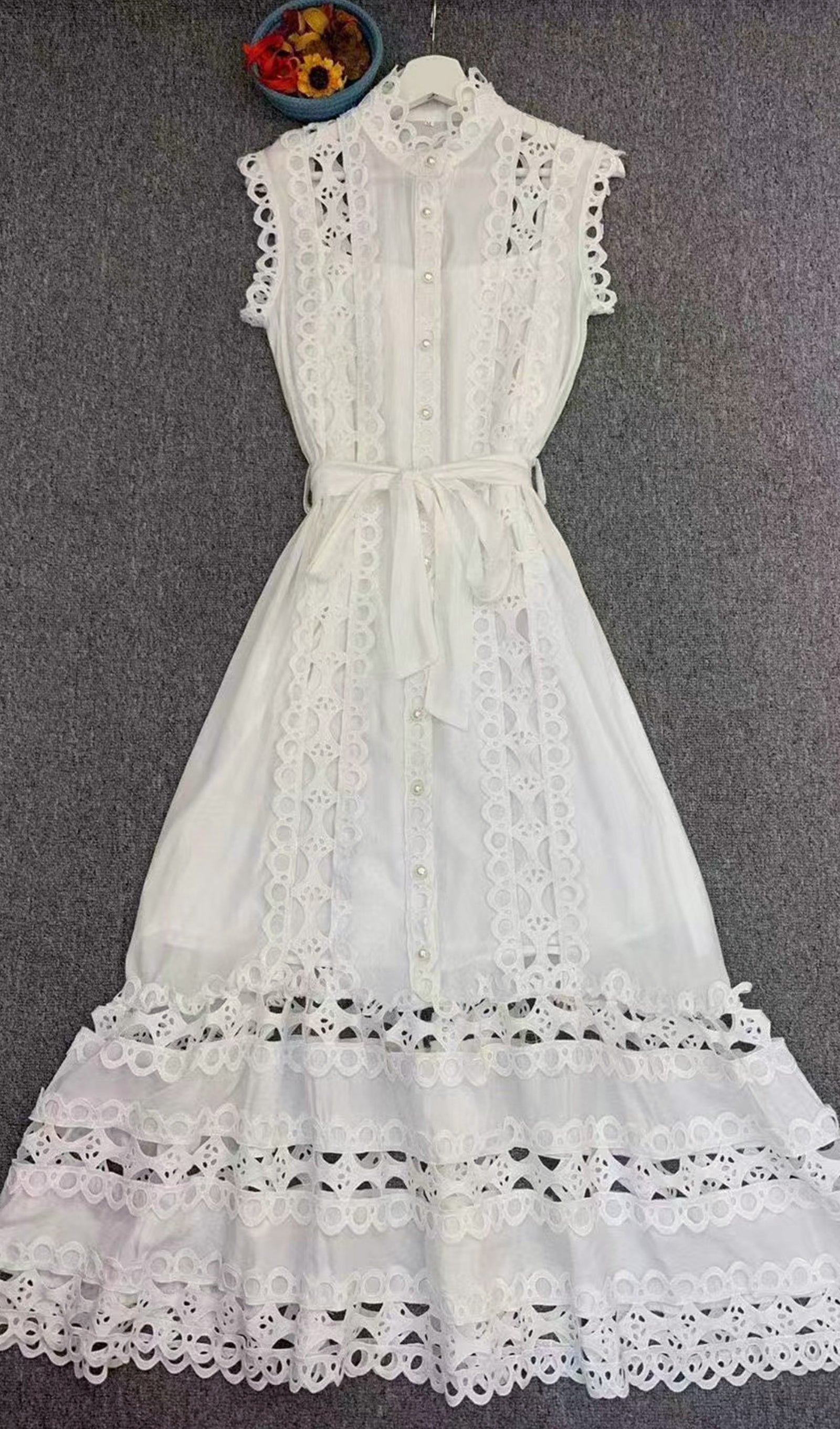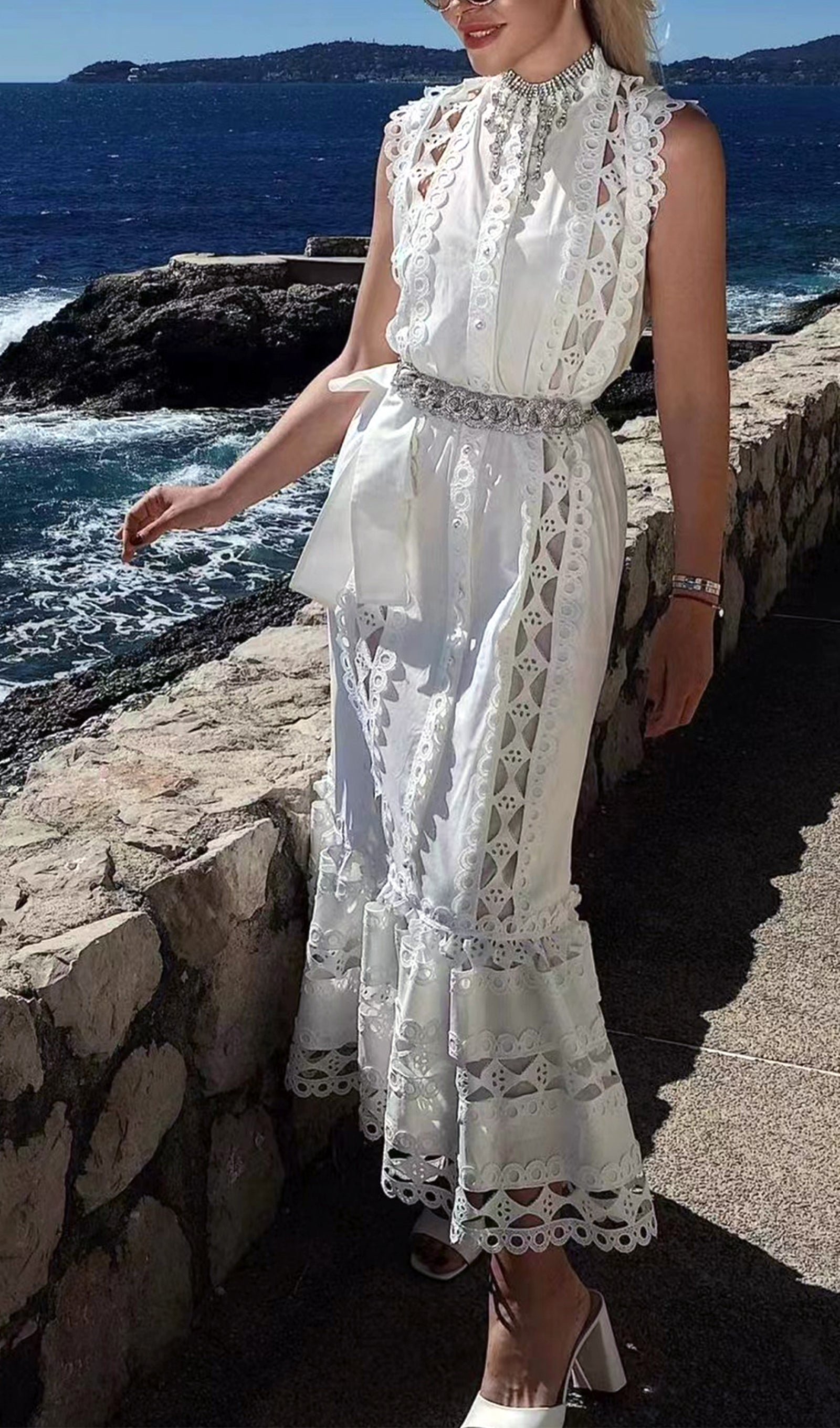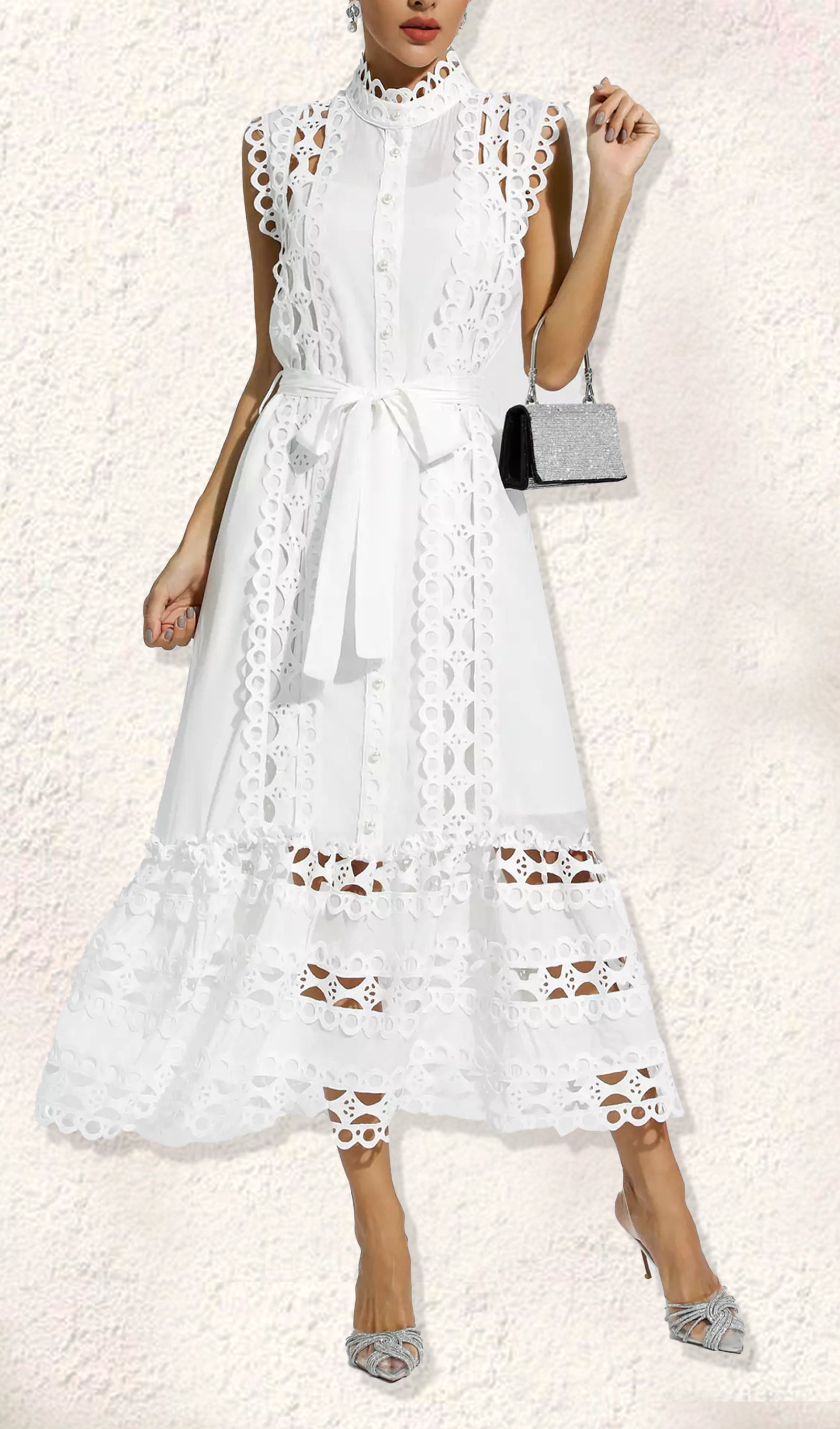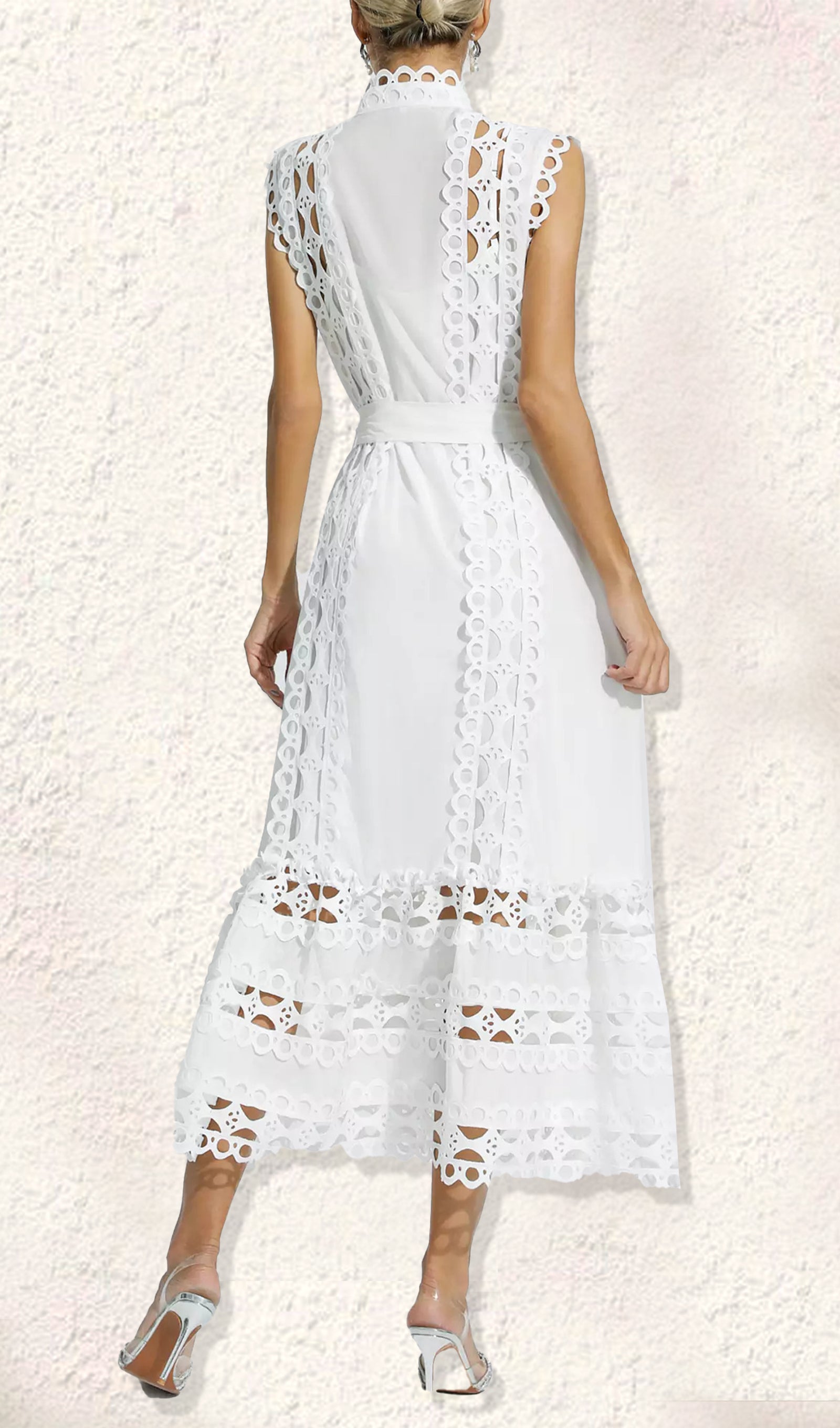 Kolsuz Hollow Out Kroşe Maksi Elbise