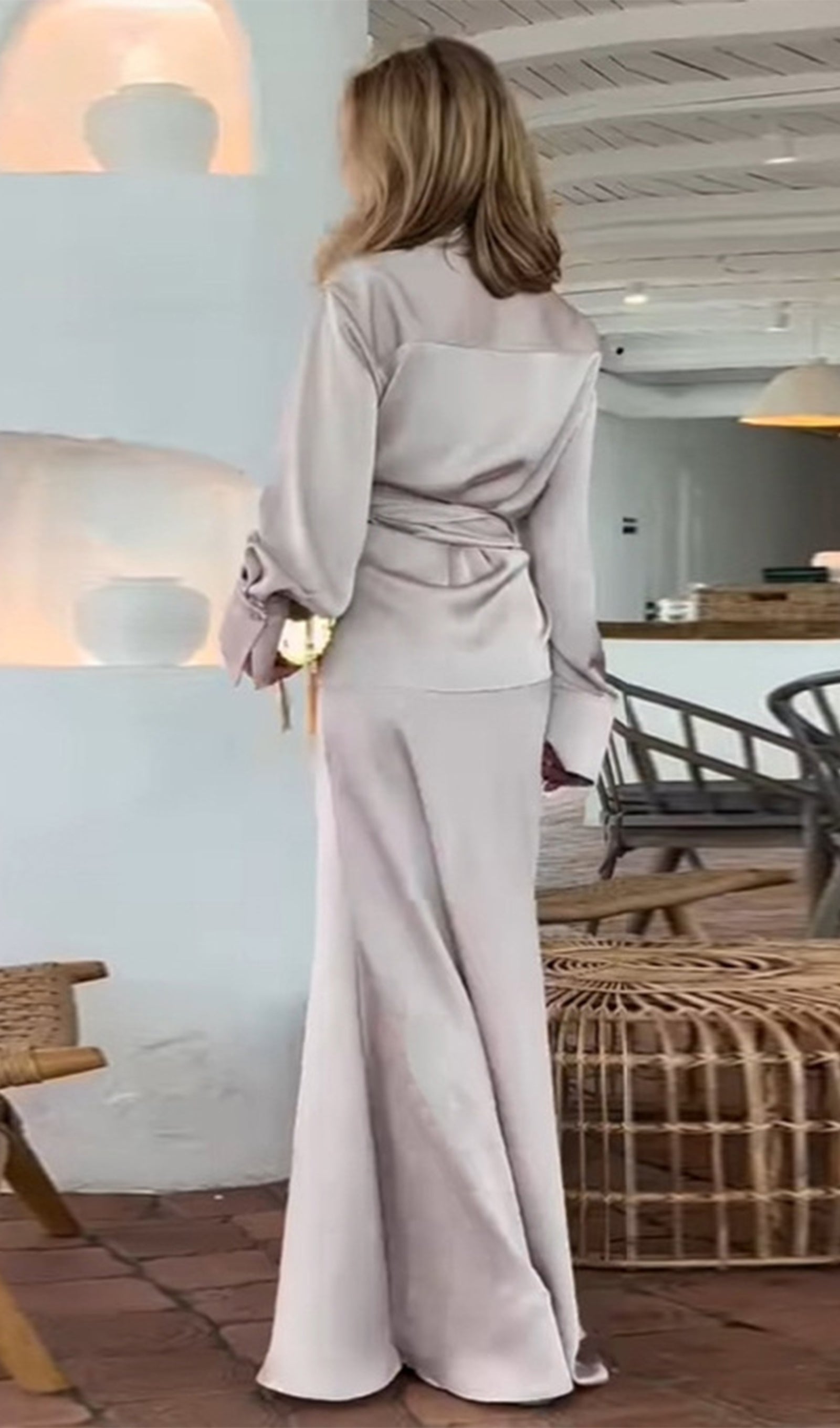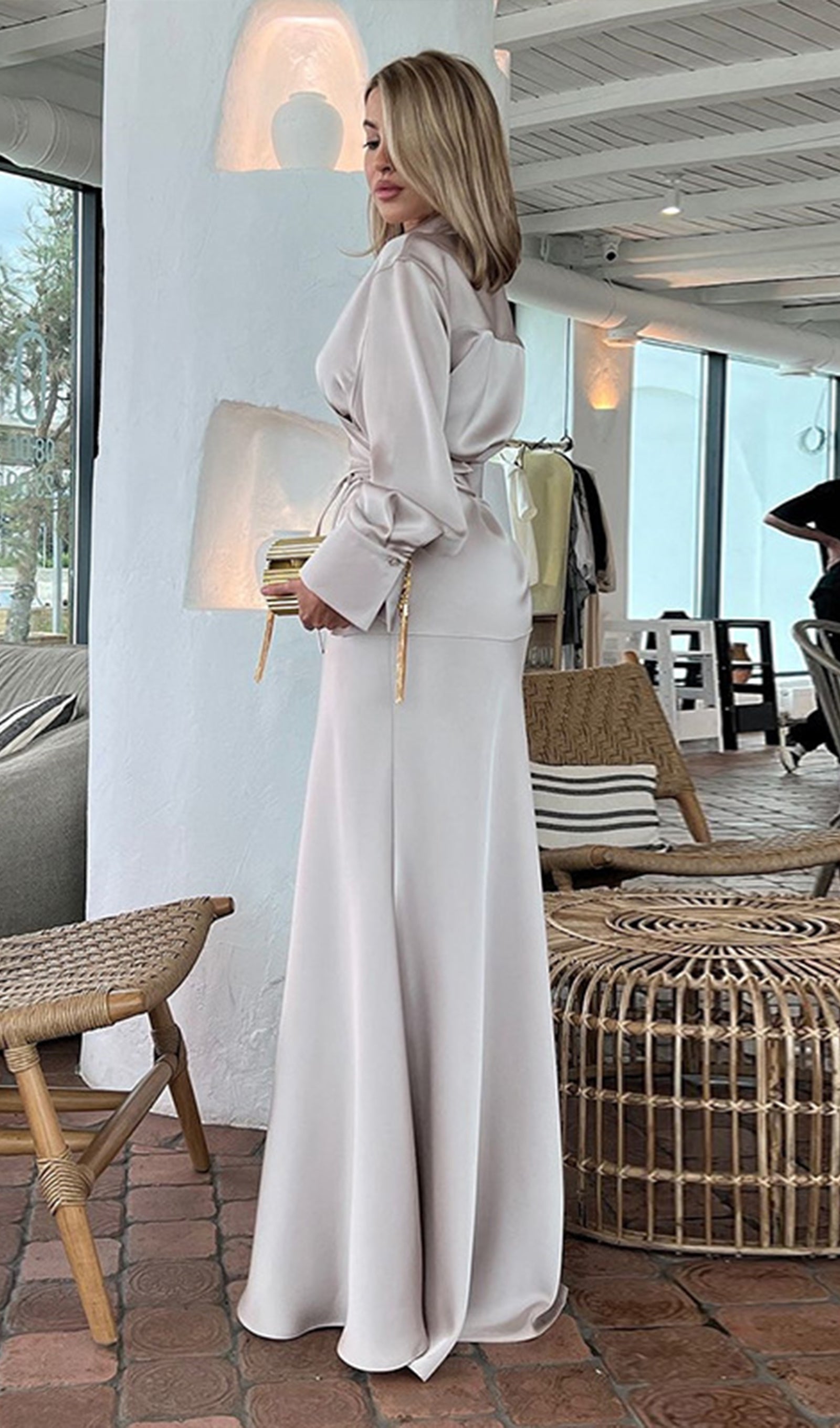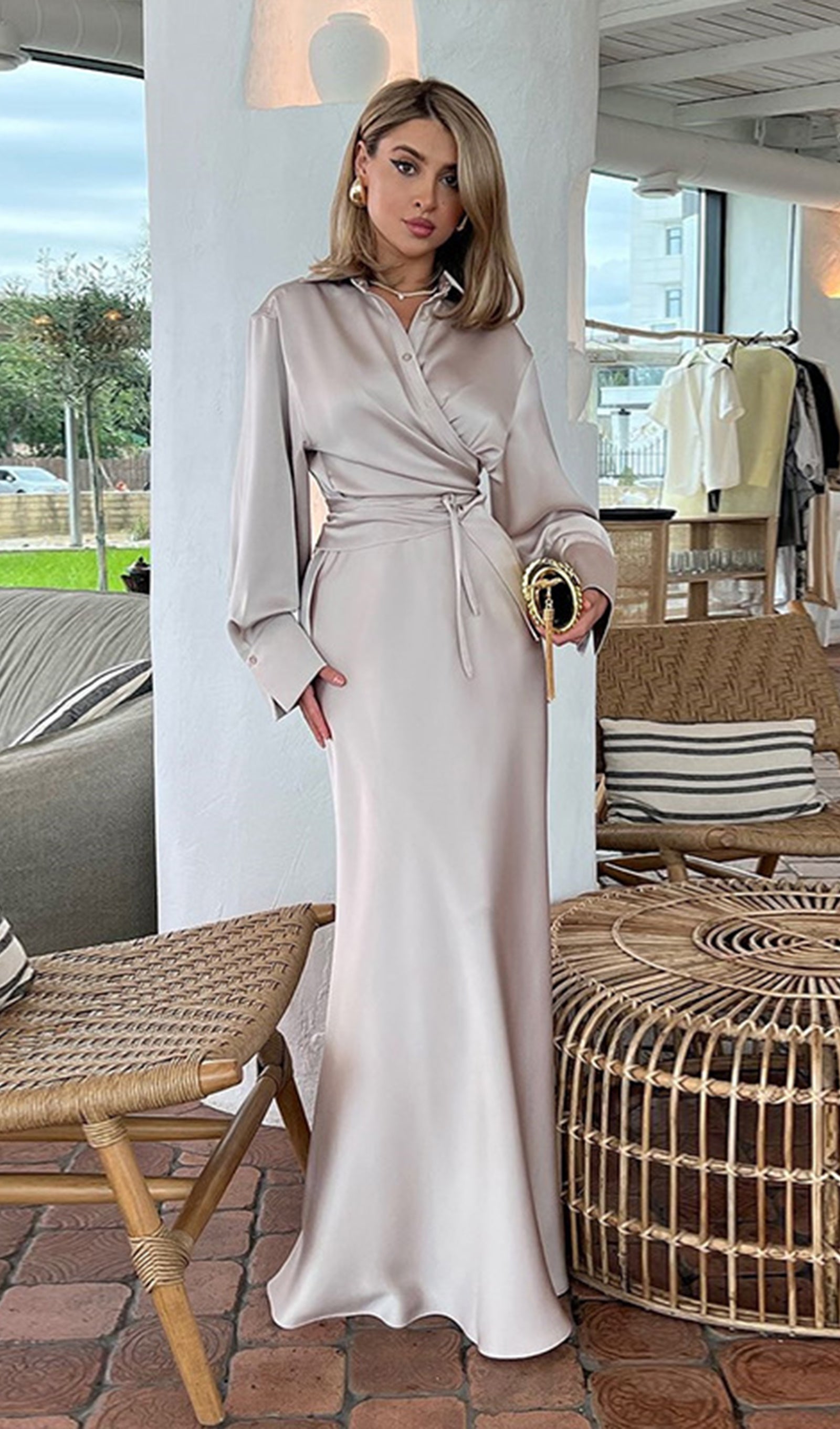 Solid Saten Gömlek Maxi Elbise ile tarzınızı yükseltin. Lüks saten kumaştan üretilen bu elbise, sofistike ve şık bir görünüm sergiler. Düz rengi çok yönlülük katar ve her durum için mükemmeldir. Bu olmazsa olmaz maksi elbise ile maksimum konforu ve stili yaşayın. Gardırobunuzu bugün yükseltin.