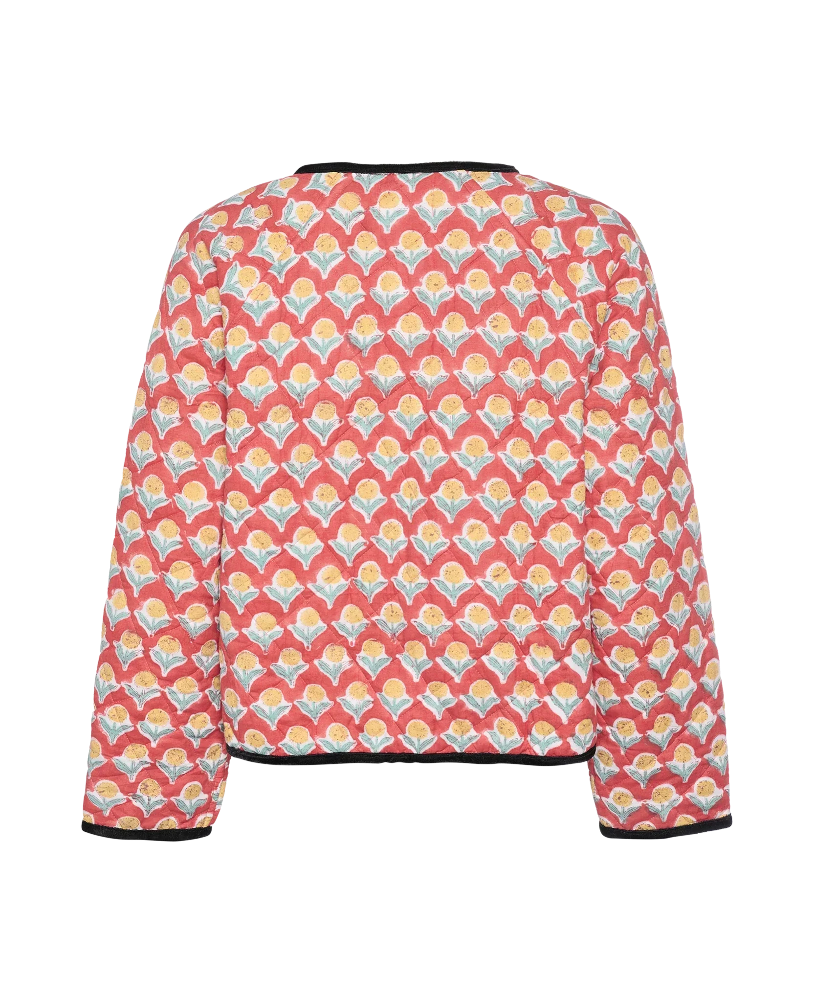 %100 organik pamuktan üretilen ve tüm yüzeyi benzersiz blok baskıyla süslenen Suvanna Ceket, gündelik silueti zanaatkâr işçilikle birleştiriyor. Ceket, daha fazla konfor için reglan kollara ve katmanlama için mükemmel olan hafif dolgulu bir tasarıma sahiptir. Ön pat açıktır ve iki takım zarif jarse kadife papyonla sabitlenebilir. İç kısımdaki çizgili pamuklu şeritler, görünümü bir ayrıntı dokunuşuyla tamamlıyor.