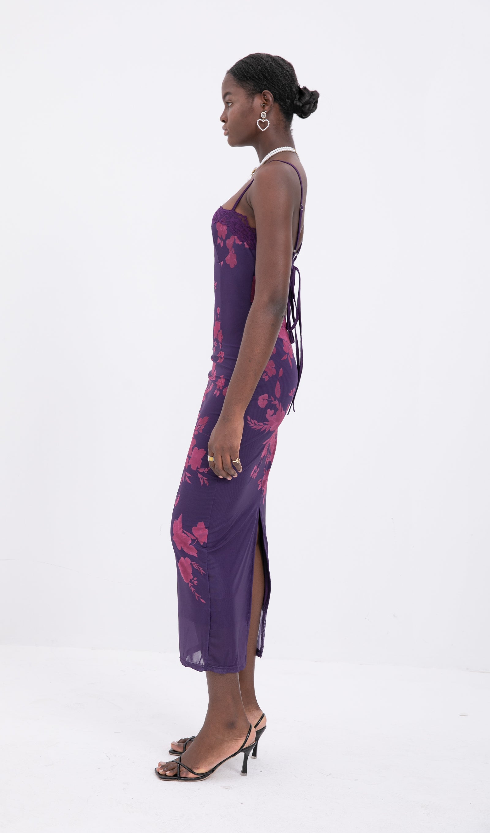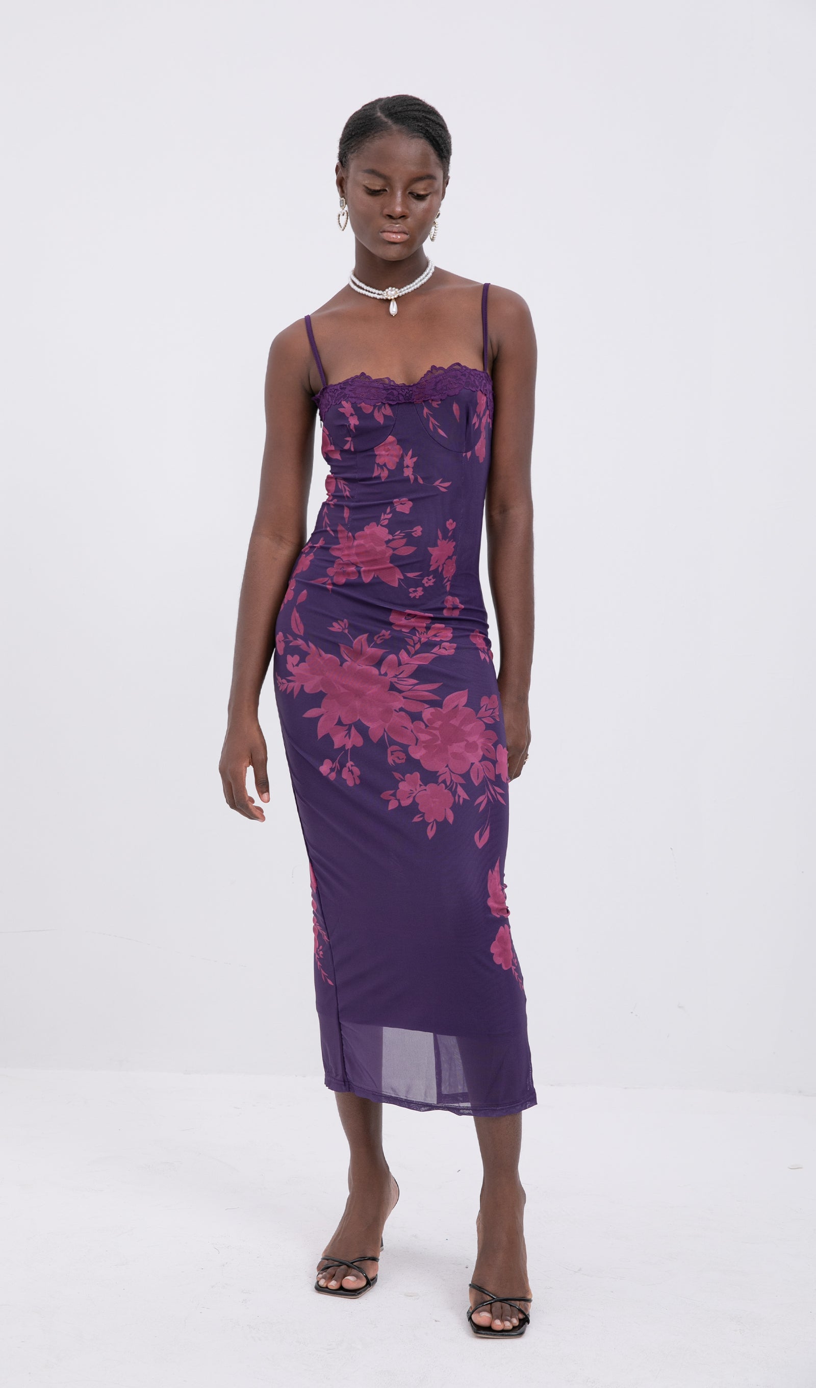Trendy Bağcıklı Dantel Çiçekli Örgü Midi Elbise
