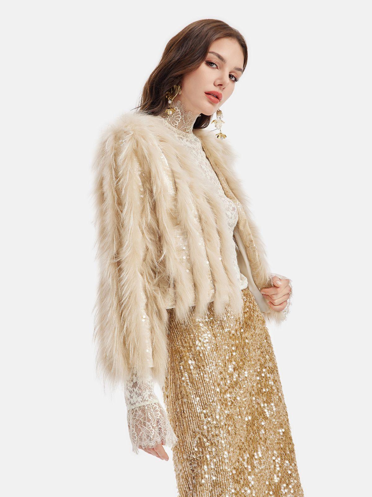 Tüy detaylı ve ışıltılı bu ceket, iddialı ve göz kamaştırıcı bir tarz için mükemmel bir seçimdir. Özel davetlerden akşam yemeklerine kadar birçok ortamda stilinizi ön plana çıkarır. Yumuşak dokusu ve şık tasarımıyla, gardırobunuzun vazgeçilmez parçalarından biri olacak.