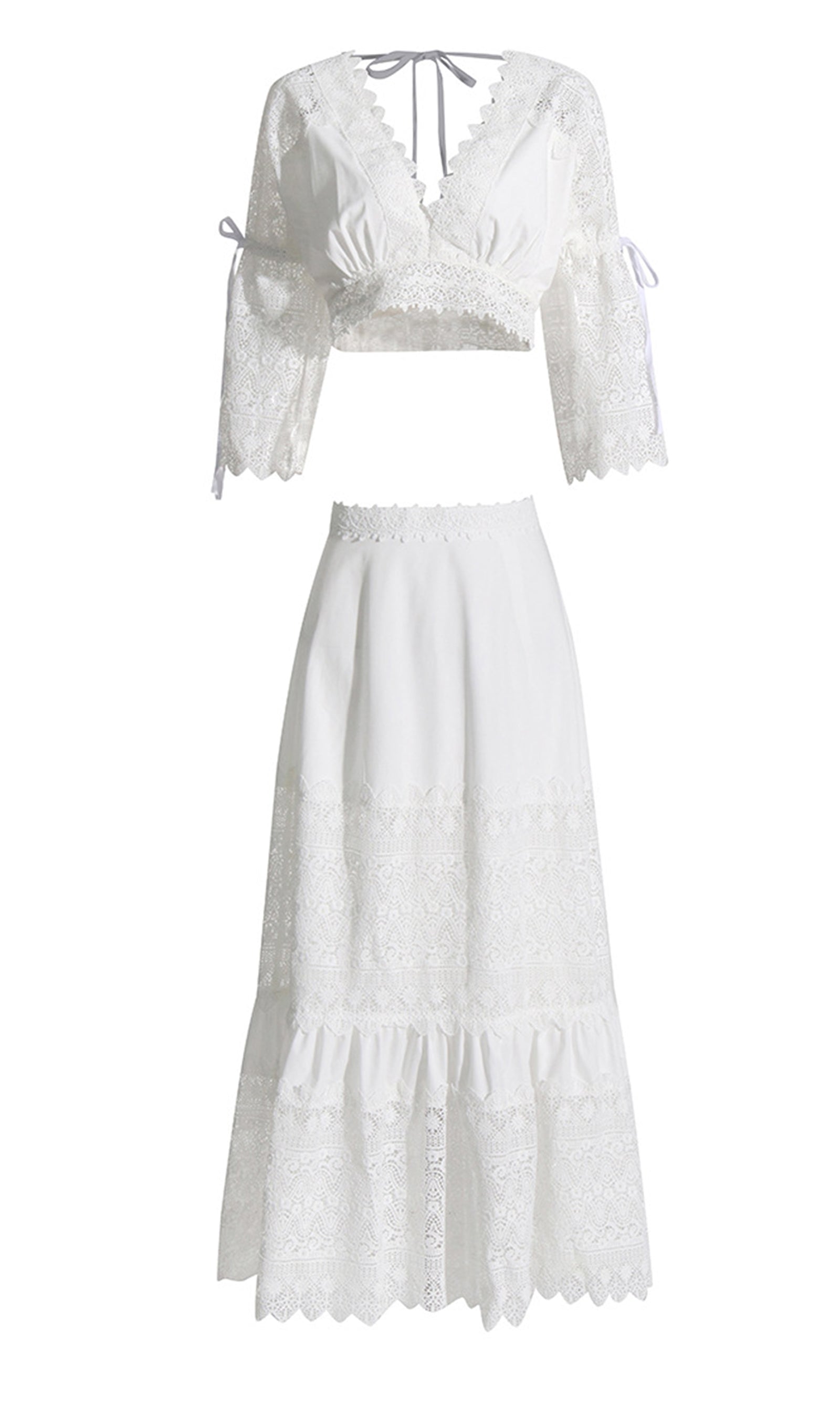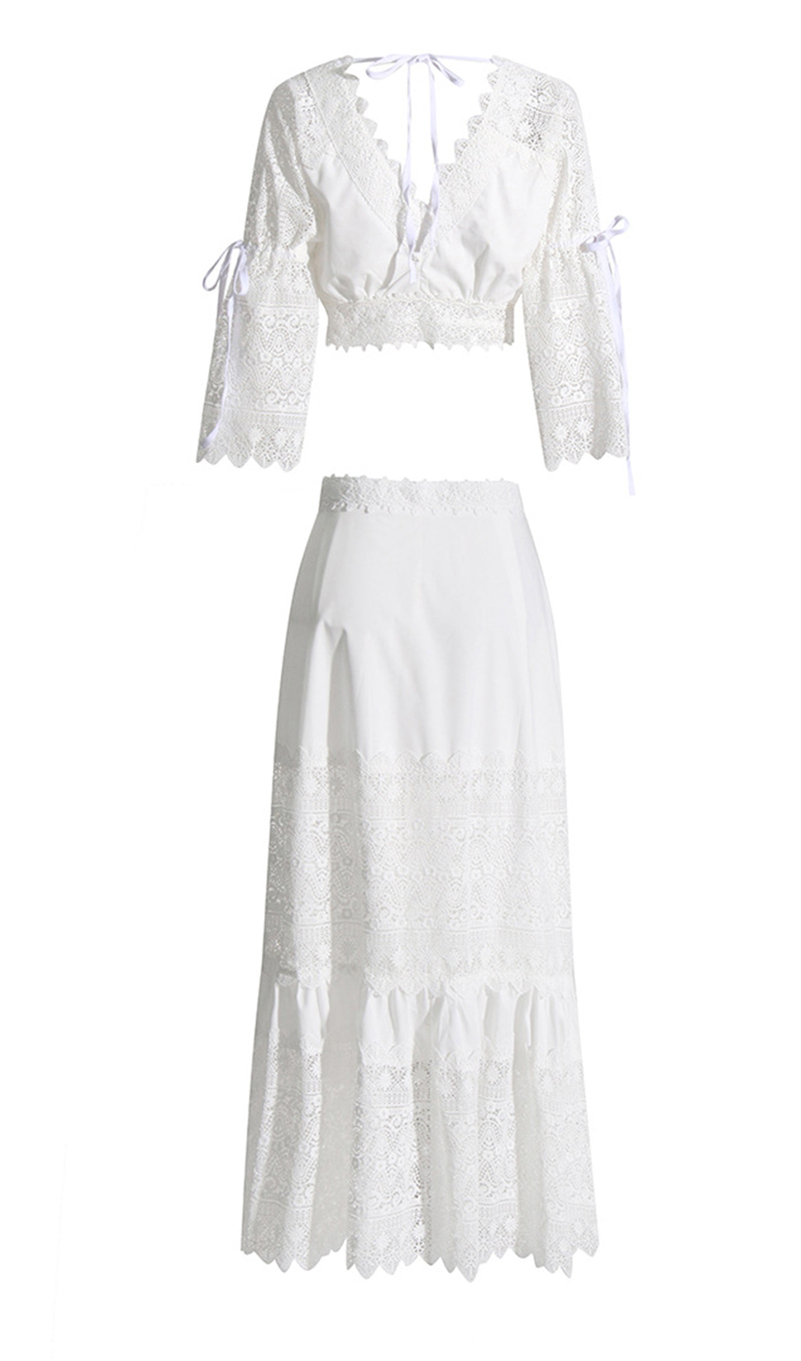 İki Parça Kroşe Maxi Etek ve Üst Takım Beyaz