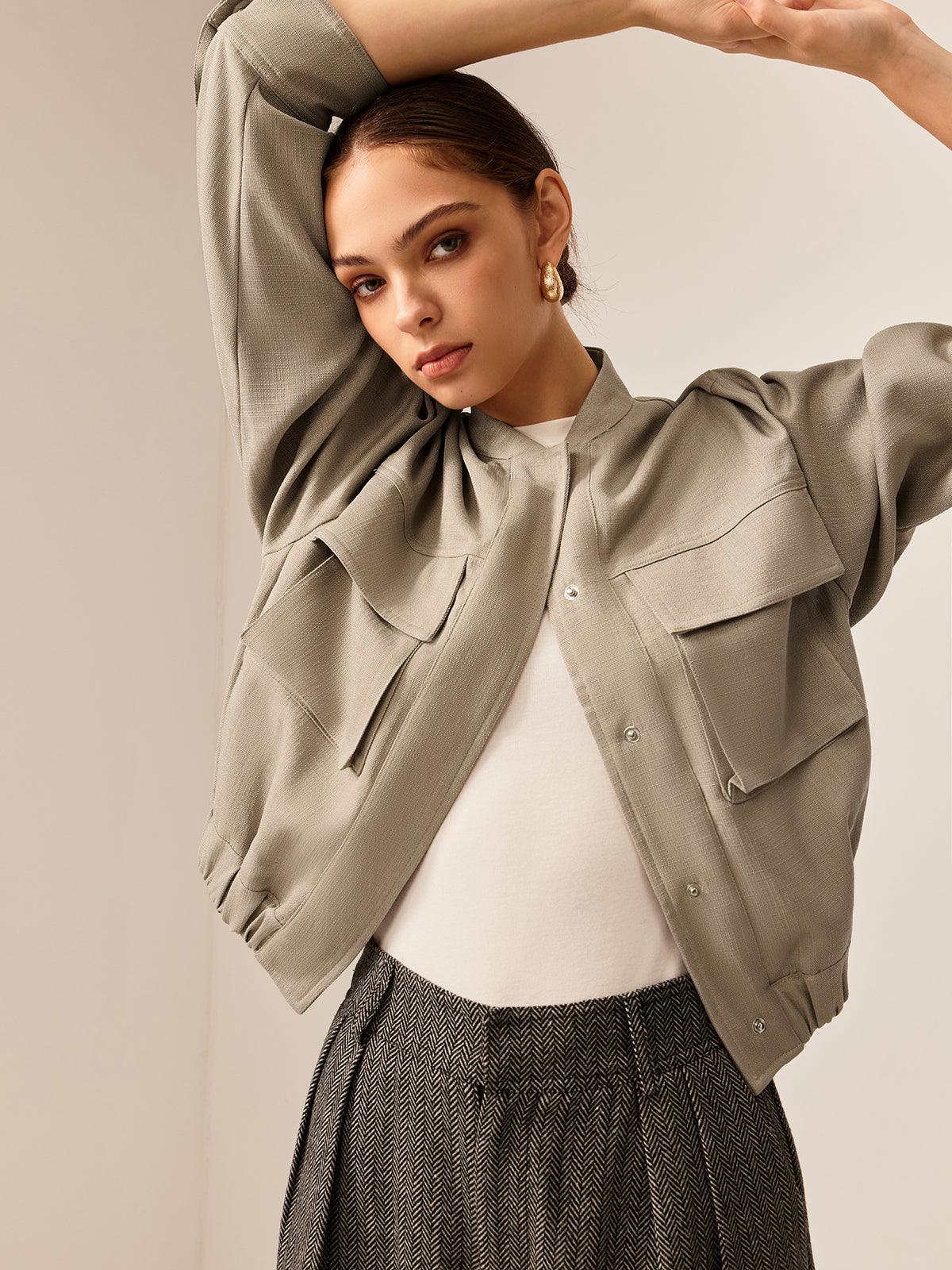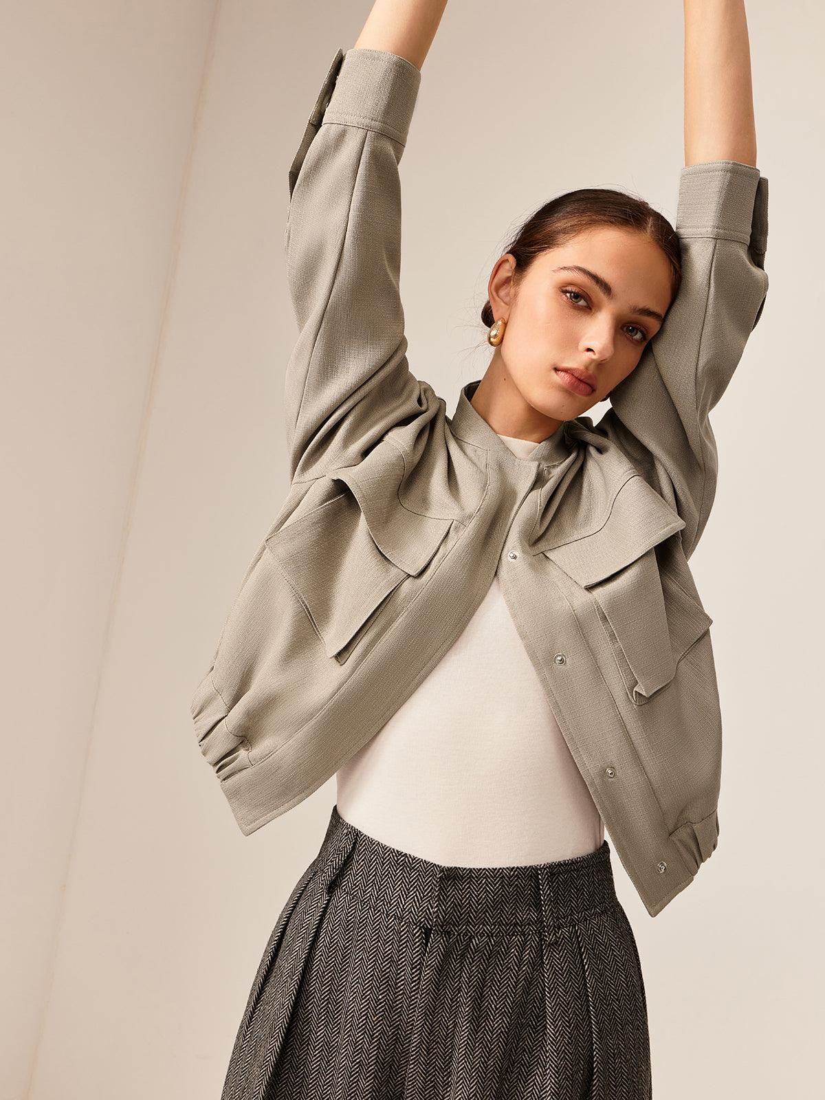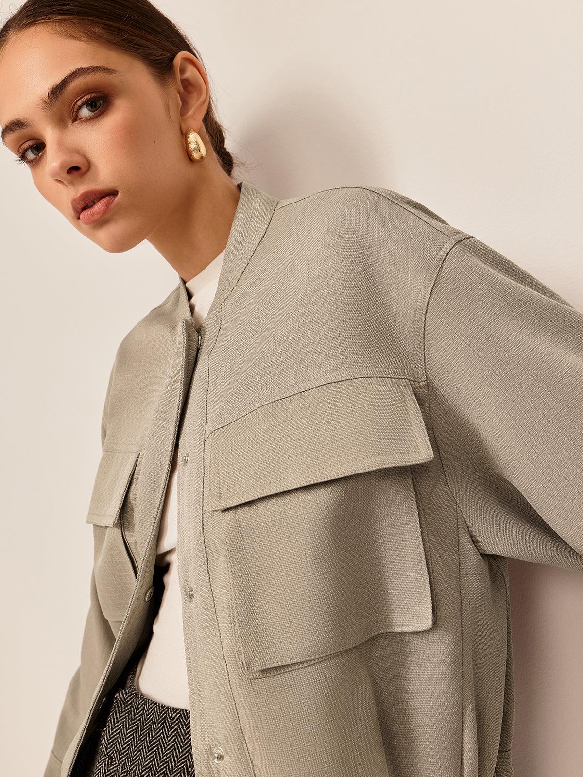 Urban Utility Ceket’i klasik kesim gri pantolon ve beyaz bir bluz ile kombinleyerek zarif ve modern bir görünüm oluşturabilirsiniz. Siyah topuklu ayakkabılar ve sade bir çantayla tamamlayarak sofistike bir dokunuş ekleyebilir, günlük kullanım için beyaz sneakerlarla rahat bir şıklık yaratabilirsiniz.