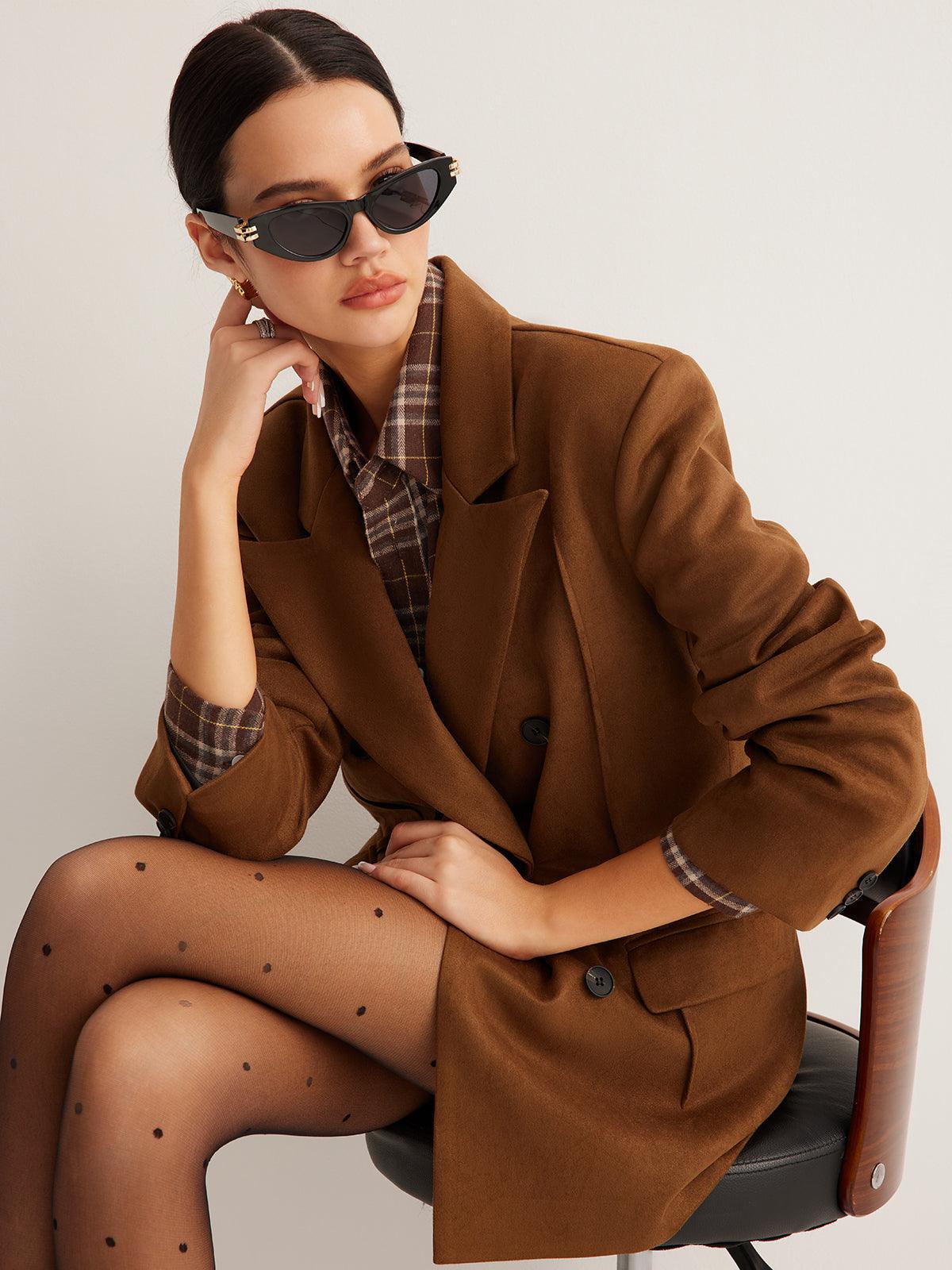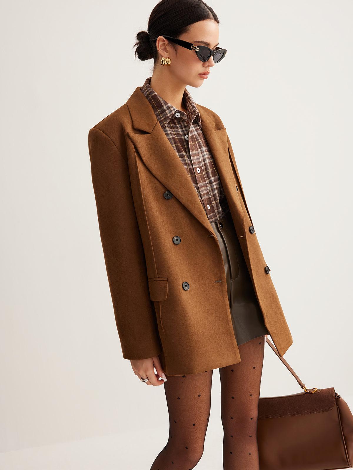 Vintage Caramel Double-Breasted Ceket