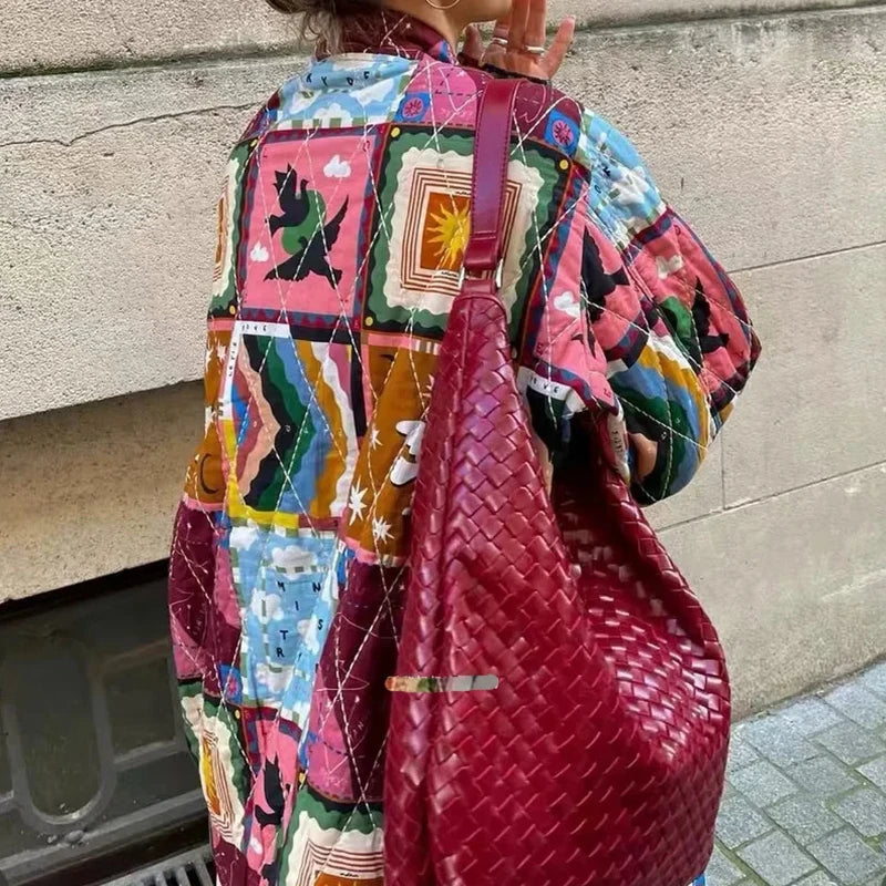 Vintage Baskılı Kapitone Ceket
