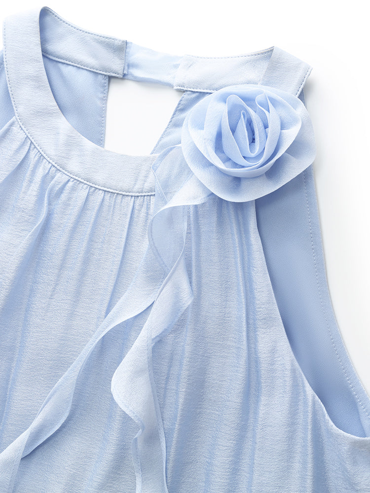 Çıkarılabilir Çiçekli Kadın Halter Midi Mavi Elbise