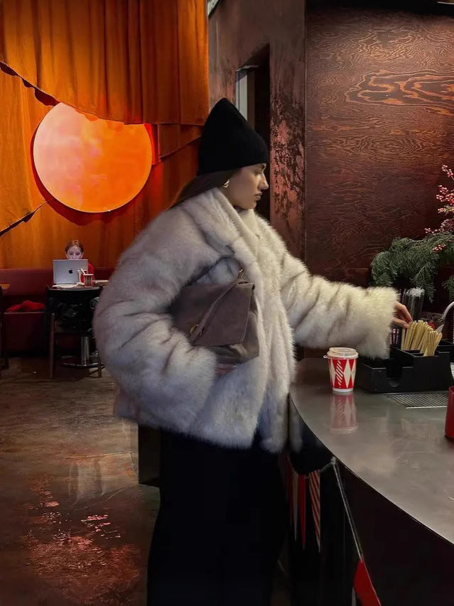 Sofistike ve modern bir yorum sunan bu bej kürk mont, kış şıklığını zirveye taşıyor. Oversize kalıbı sayesinde rahat bir görünüm sağlarken, yoğun dokusu ve hacimli formu ile dikkat çekiyor. Soğuk günlerde hem sıcak tutan hem de stilinizi ön plana çıkaran bu özel parça, şehrin sokaklarında iddialı bir duruş sergilemek isteyenler için ideal.